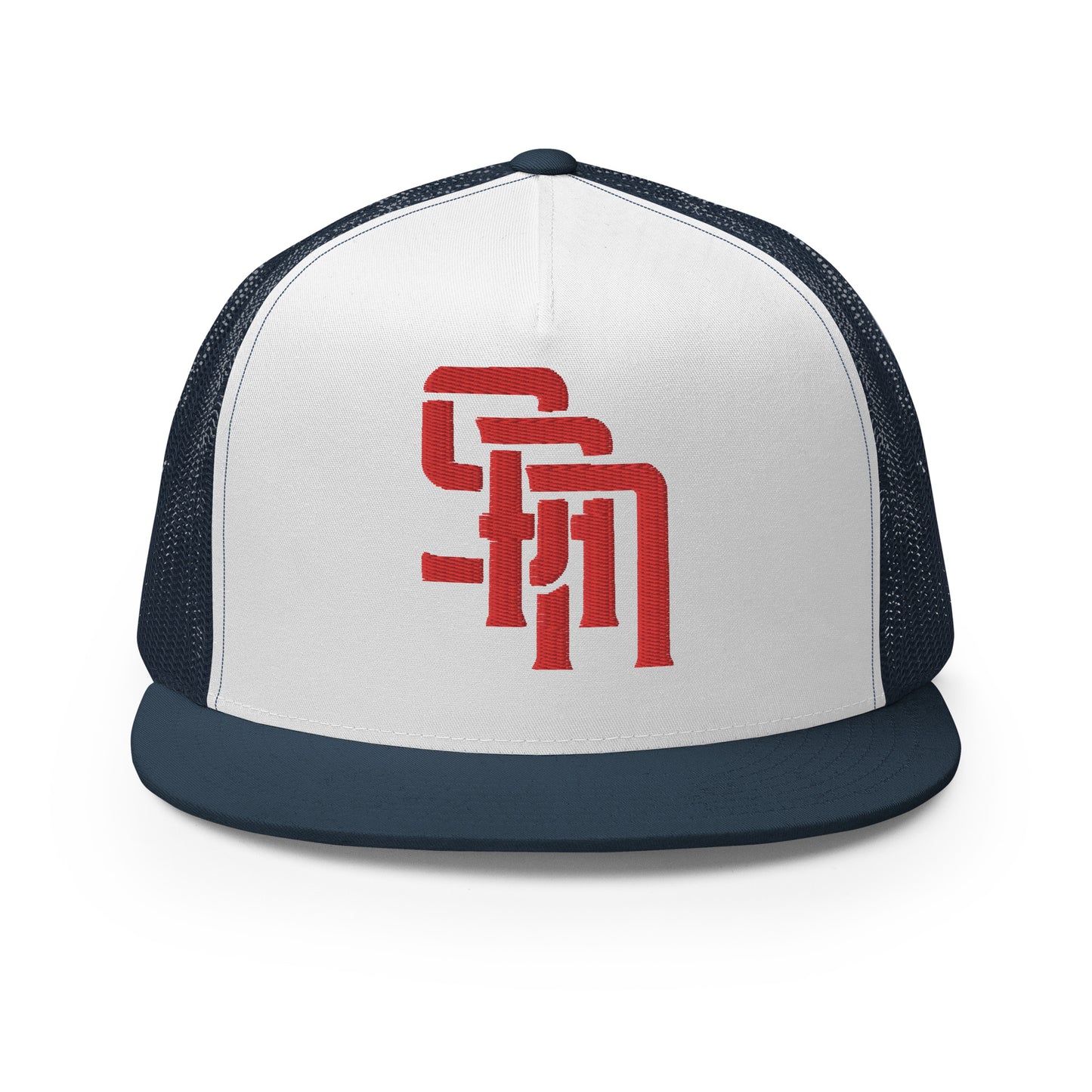 "SAN" Five Panel Trucker Cap | Yupoong 6006 | E Luna Brand CLASSIC Solocrest 1 Red Thread Front Logo [3D Puff Edition]