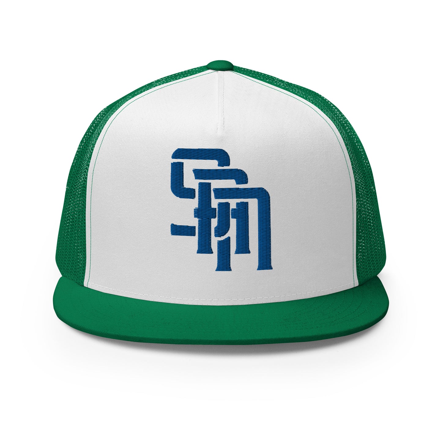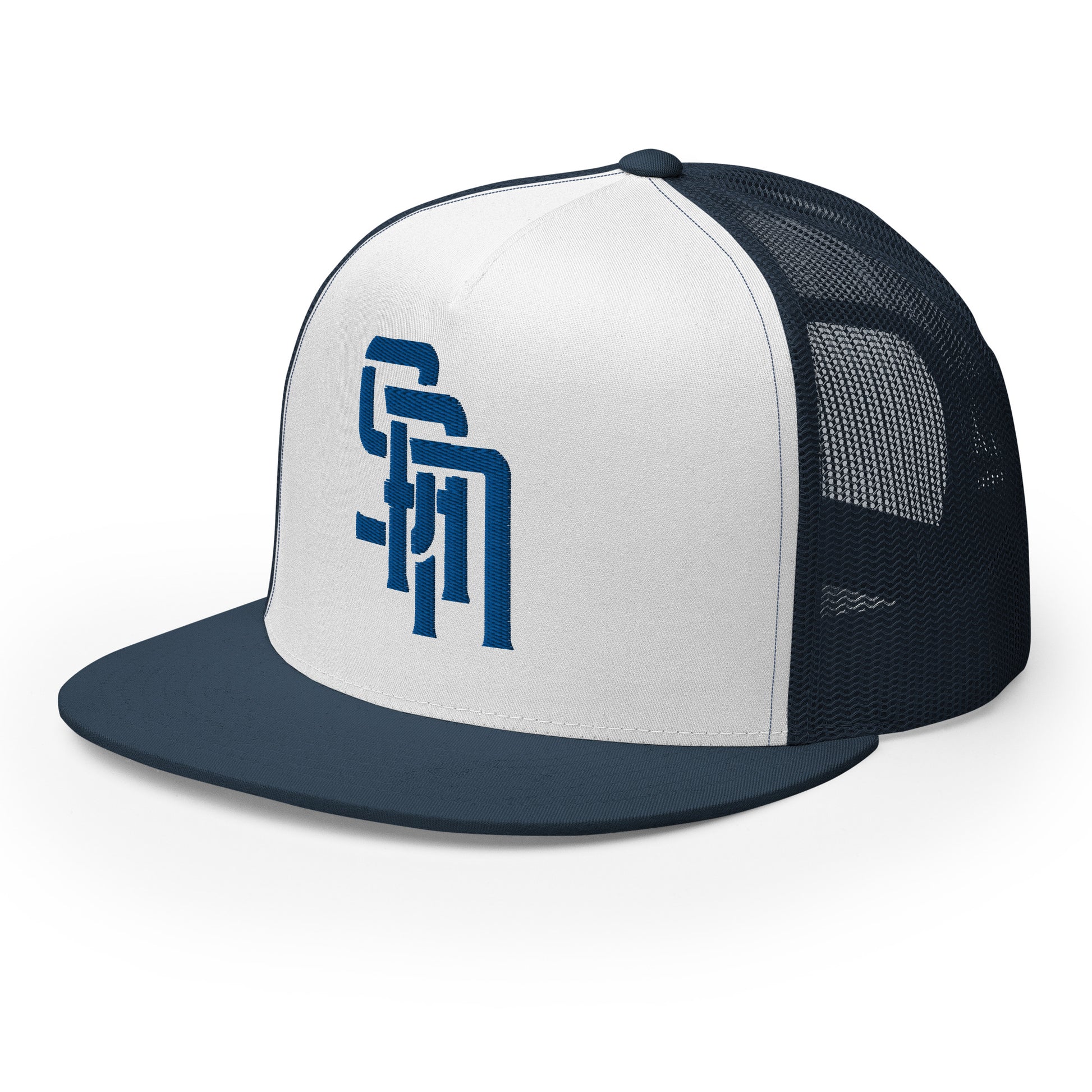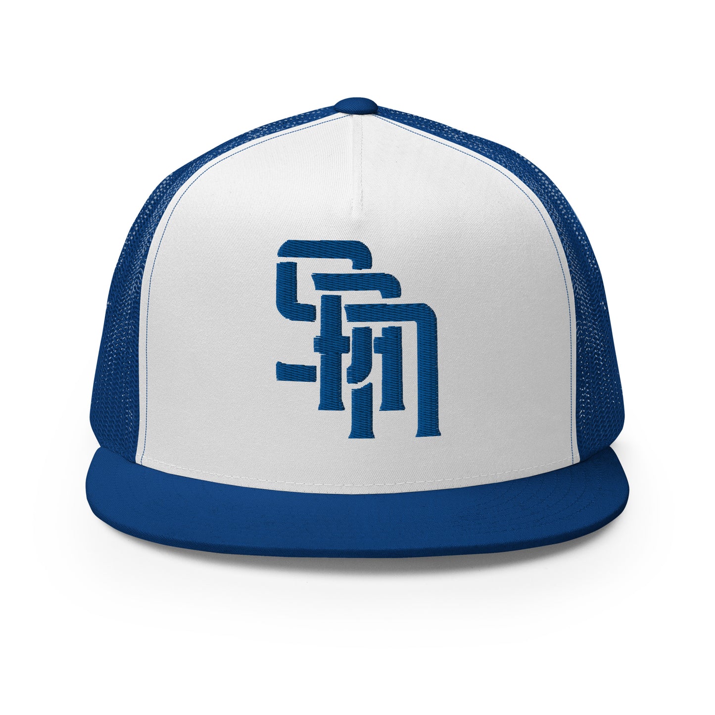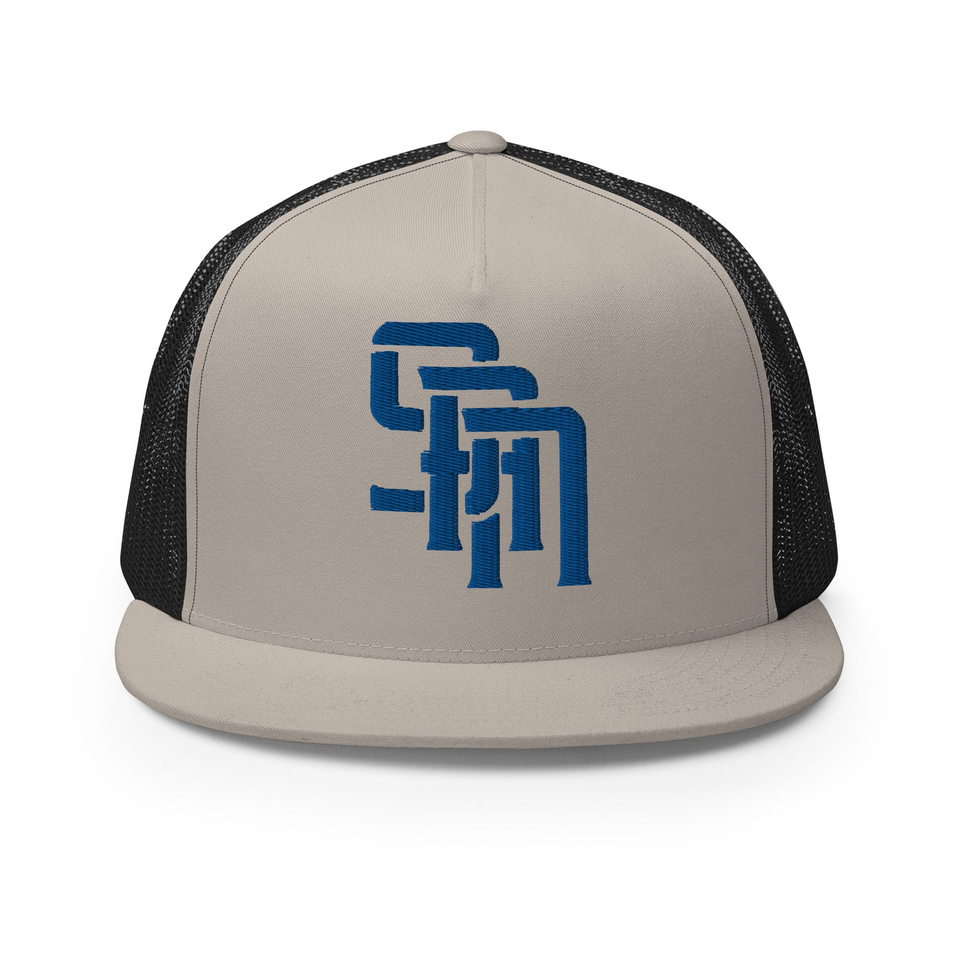 "SAN" Five Panel Trucker Cap | Yupoong 6006 | E Luna Brand CLASSIC Solocrest 1 Royal Thread Front Logo [3D Puff Edition]