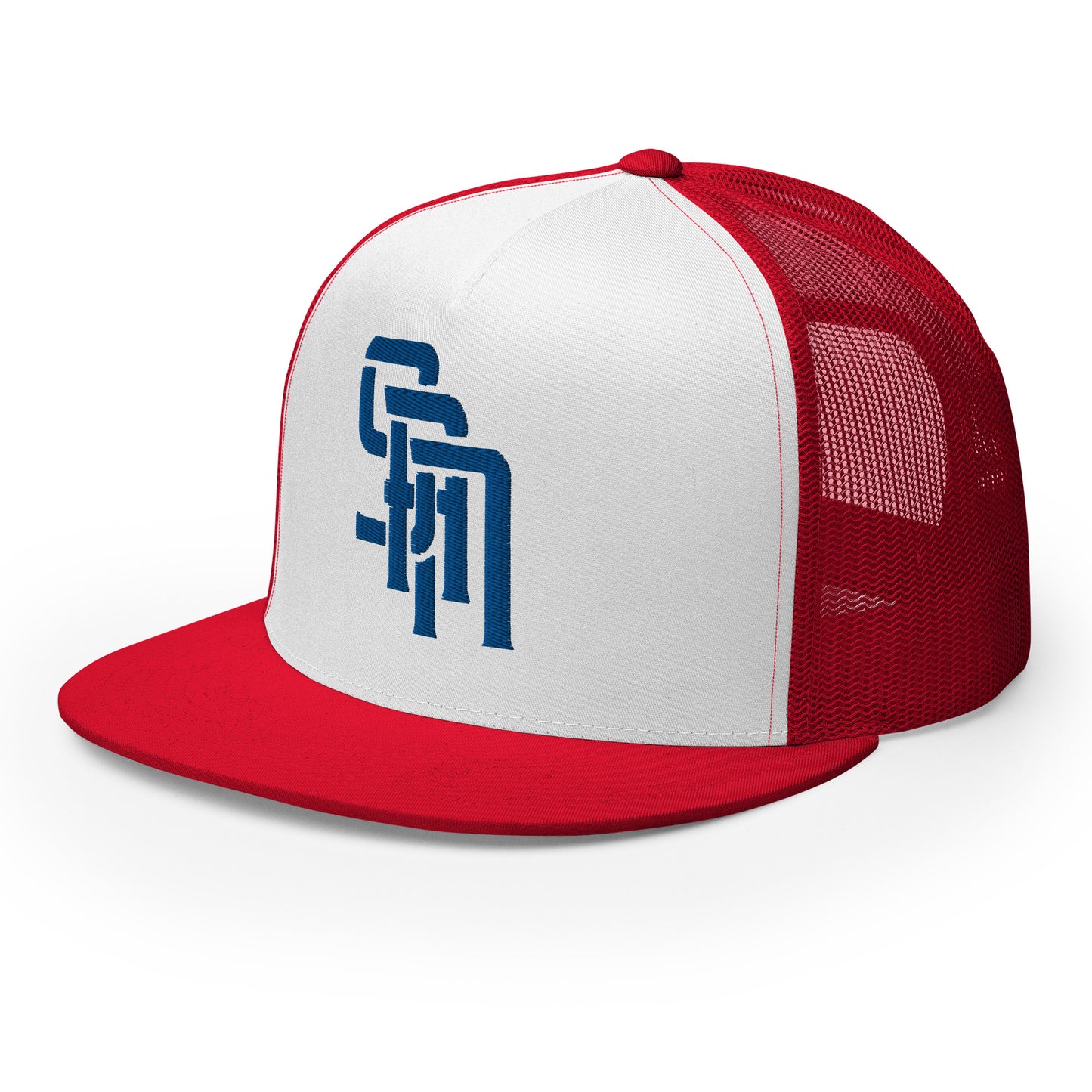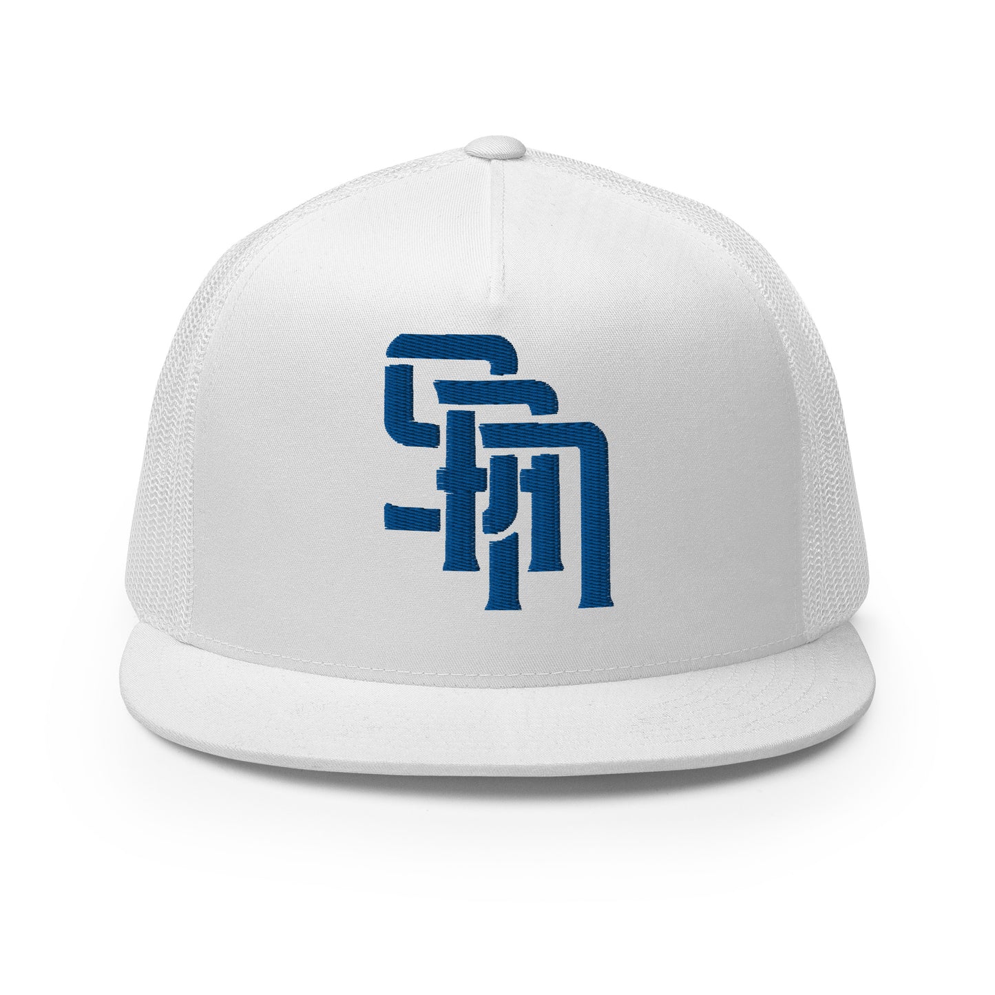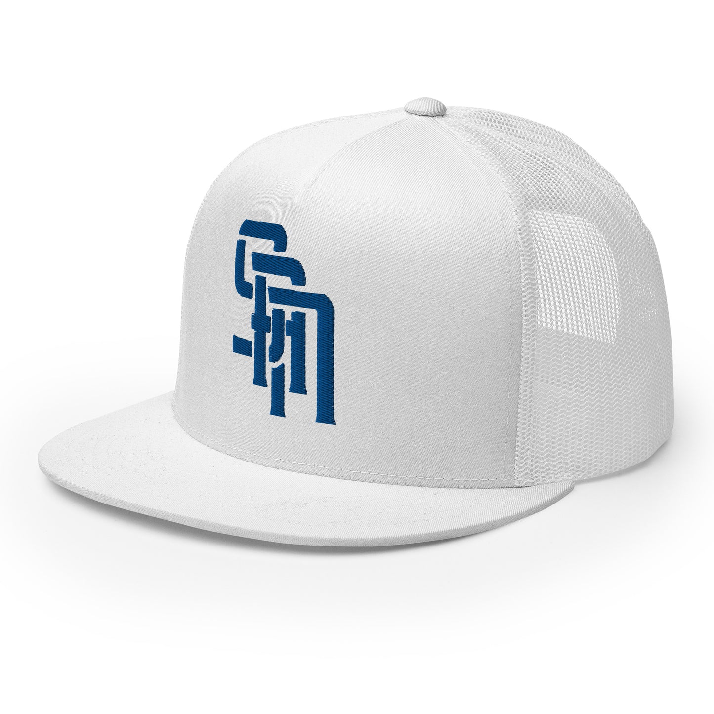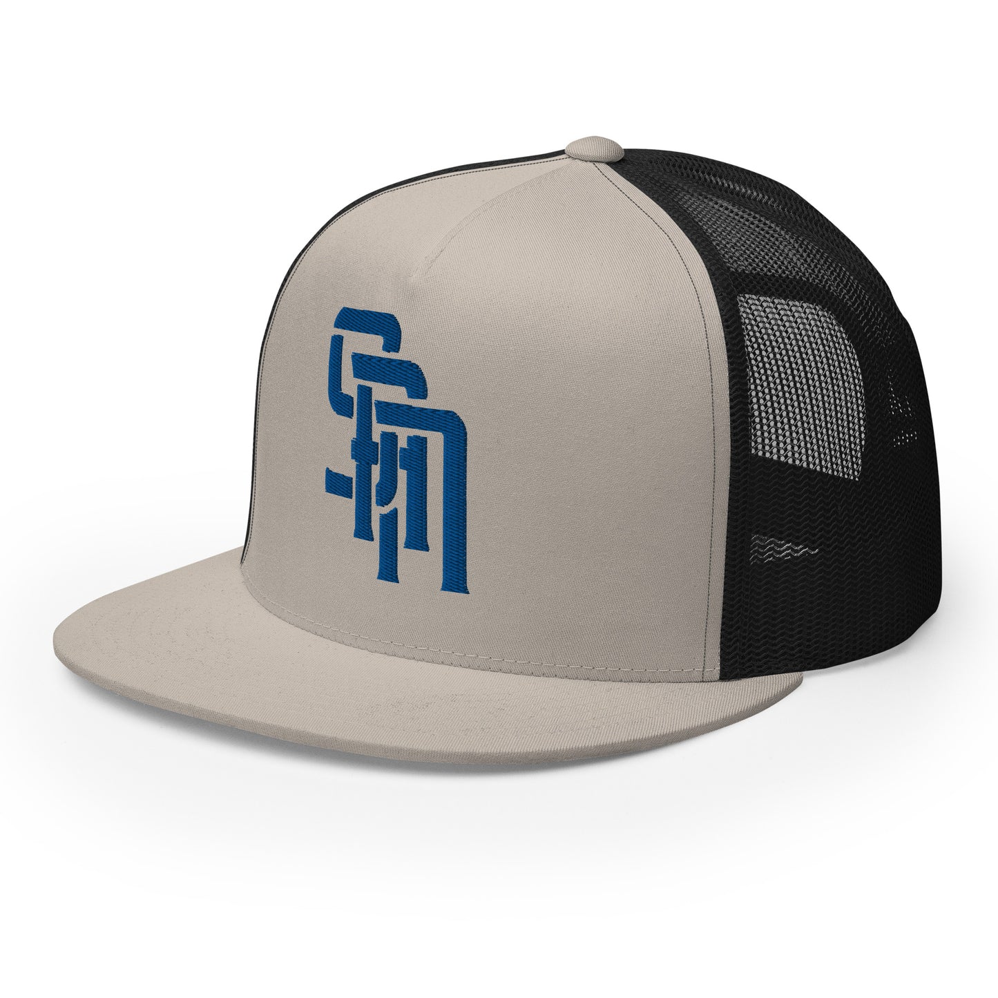 "SAN" Five Panel Trucker Cap | Yupoong 6006 | E Luna Brand CLASSIC Solocrest 1 Royal Thread Front Logo [3D Puff Edition]
