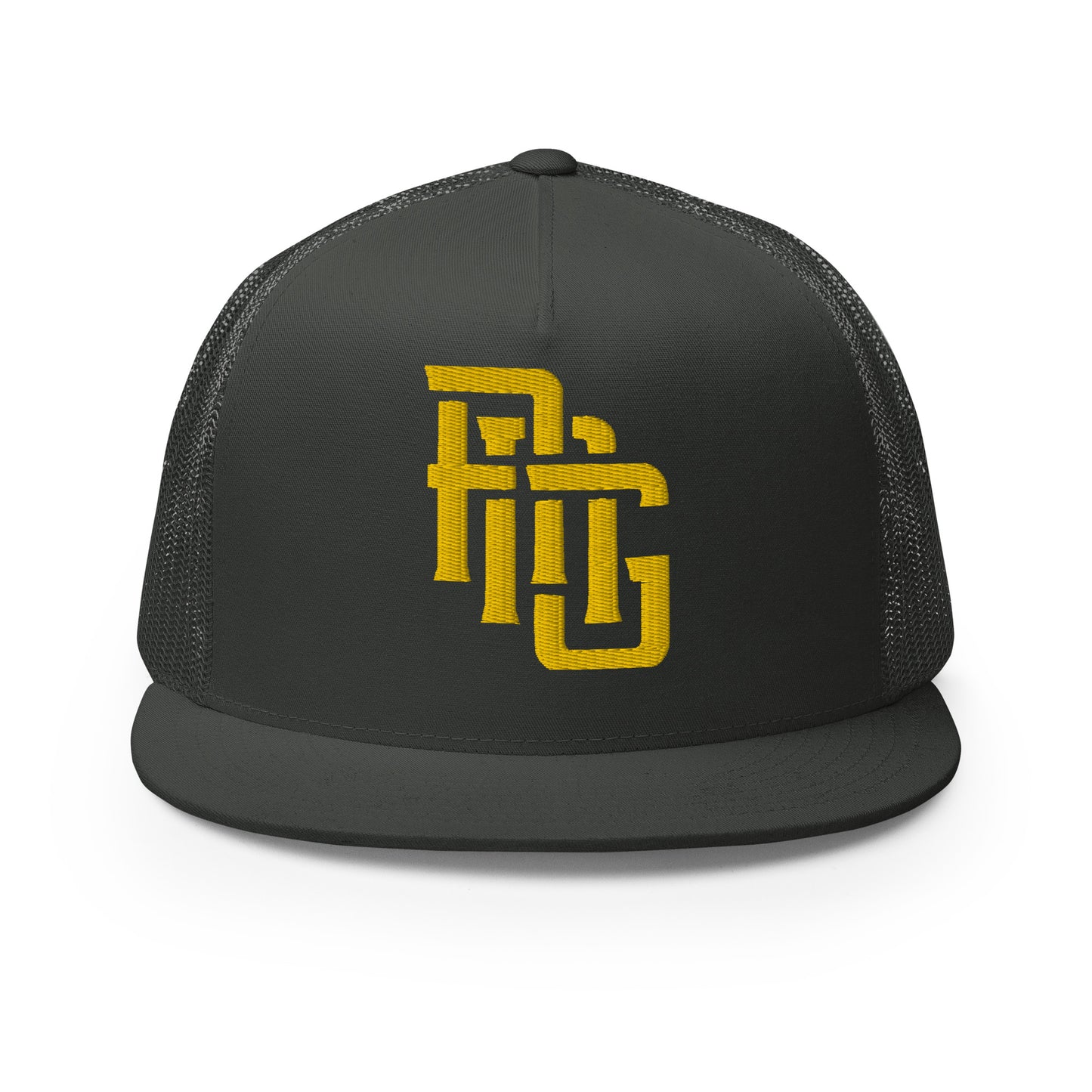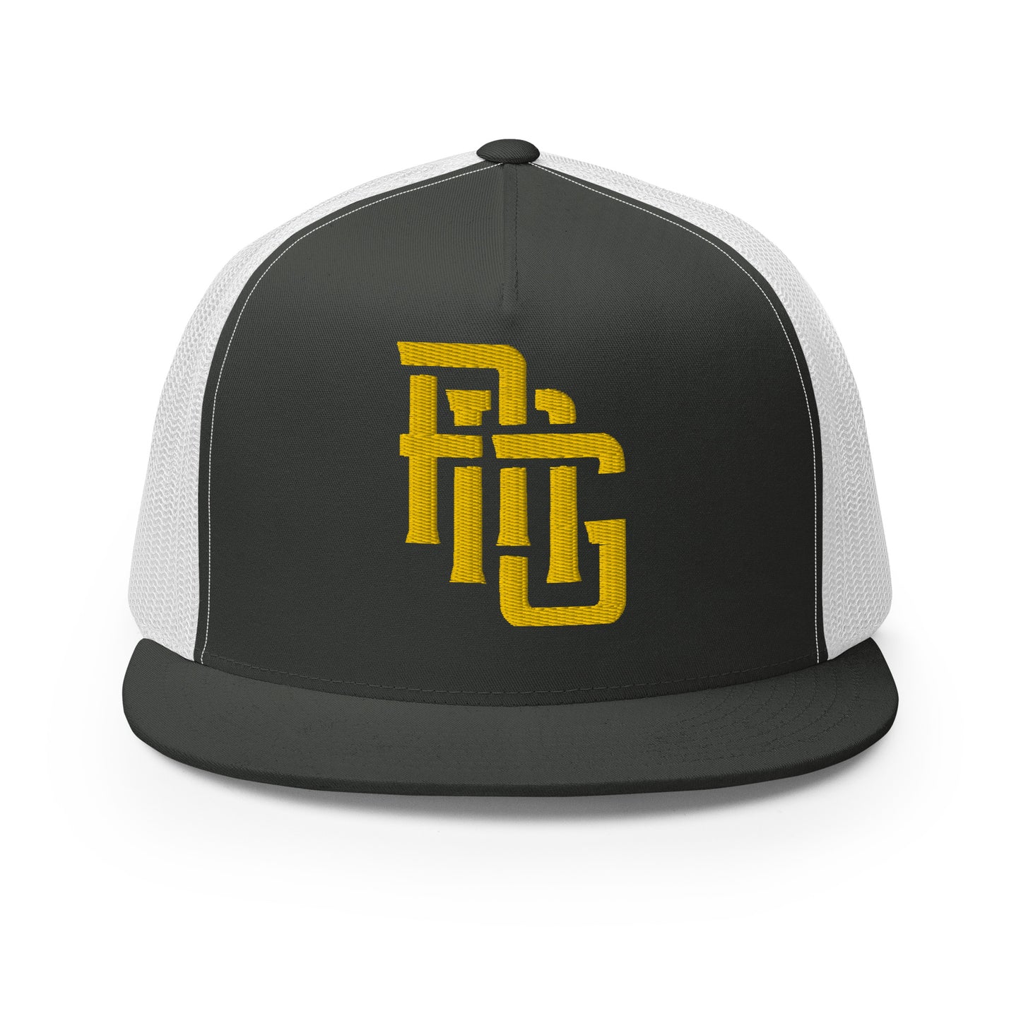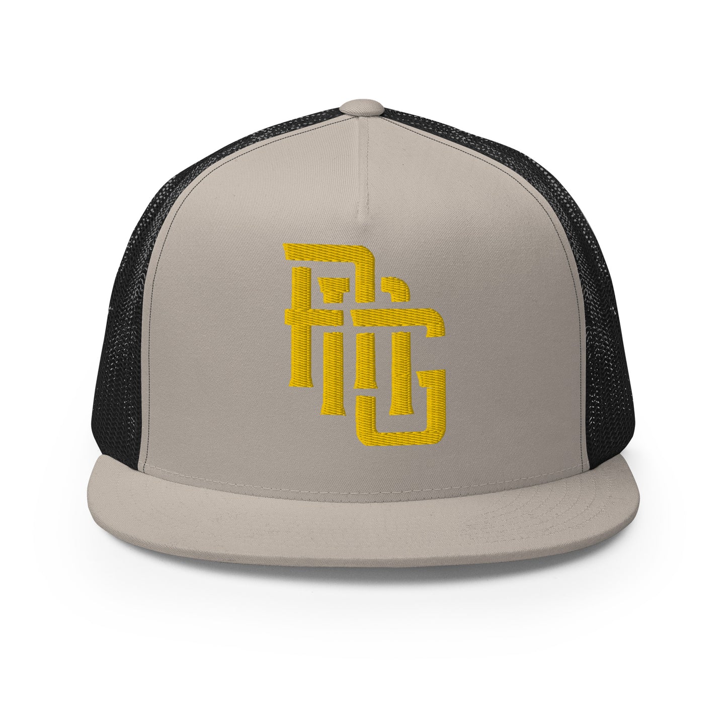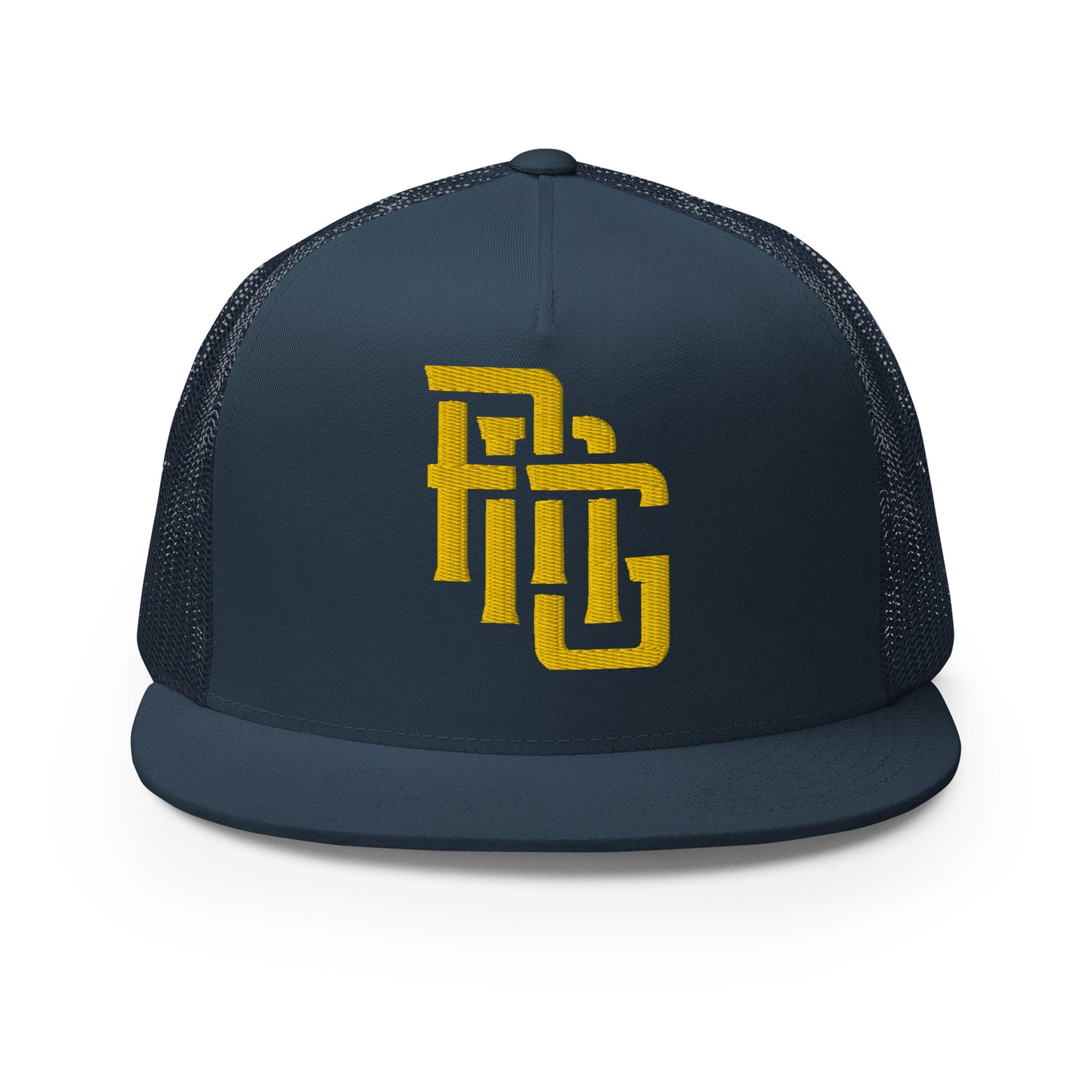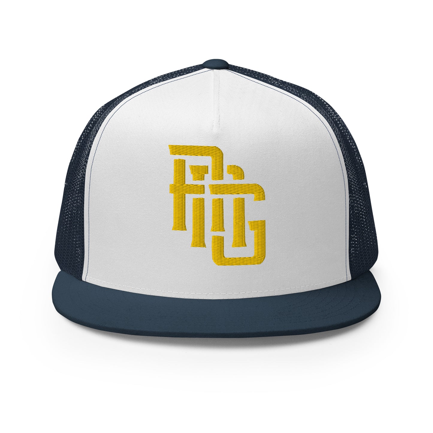 "ANG" Five Panel Trucker Cap | Yupoong 6006 | E Luna CLASSIC Solocrest 1 Gold Thread Front Logo