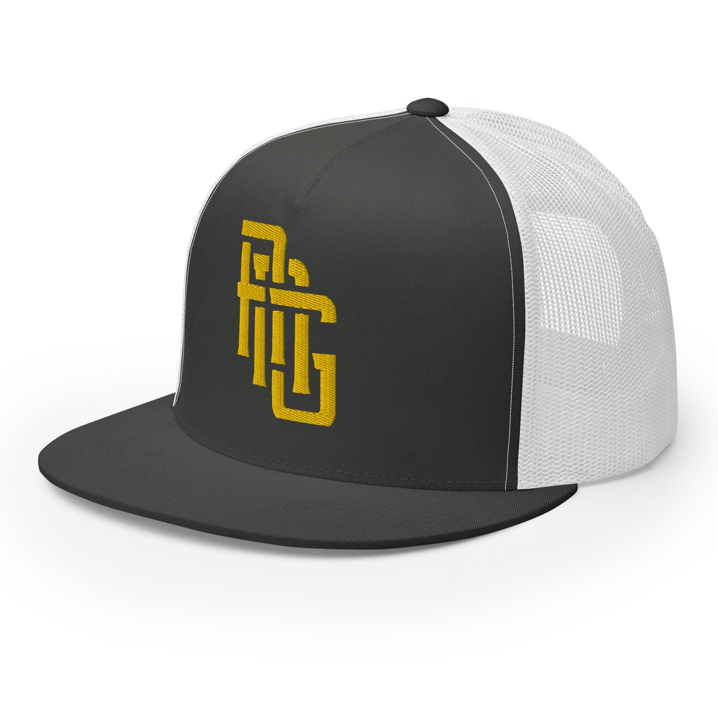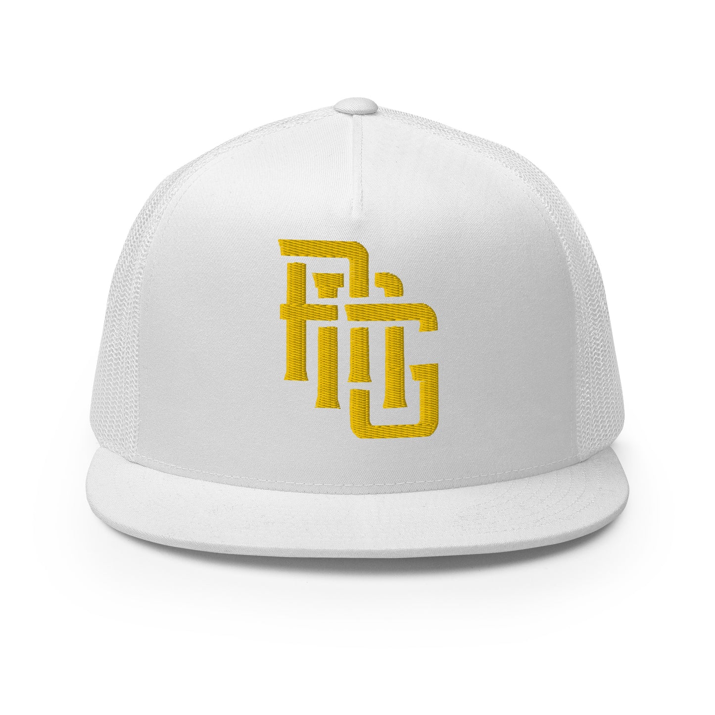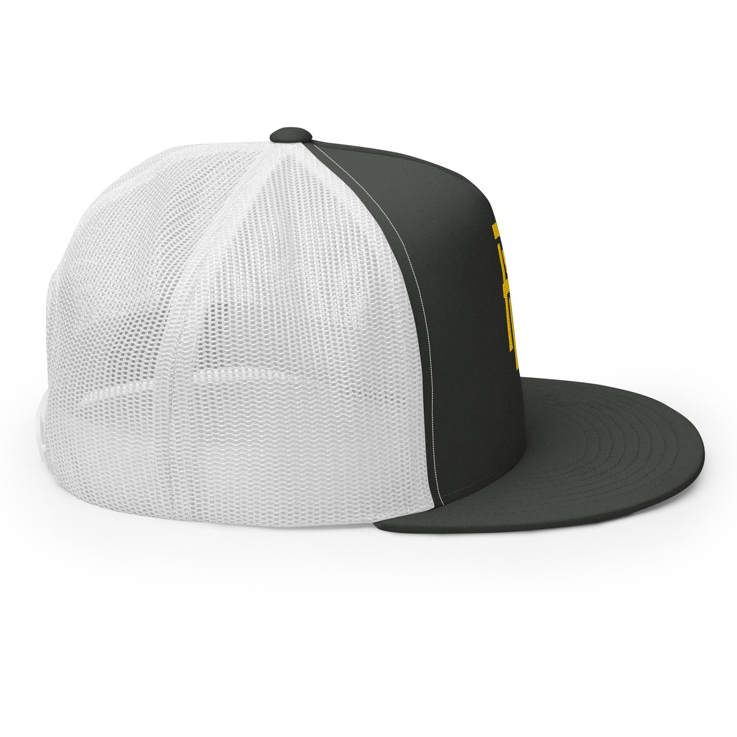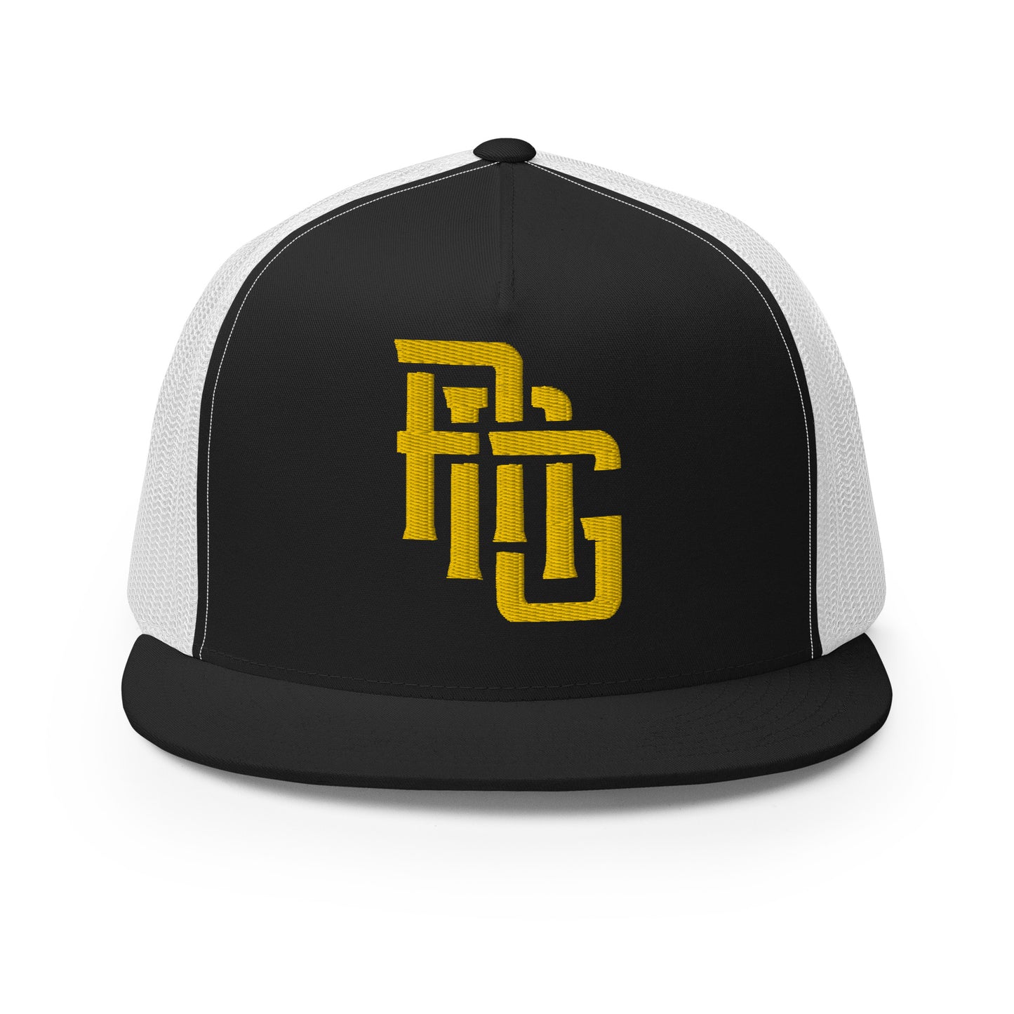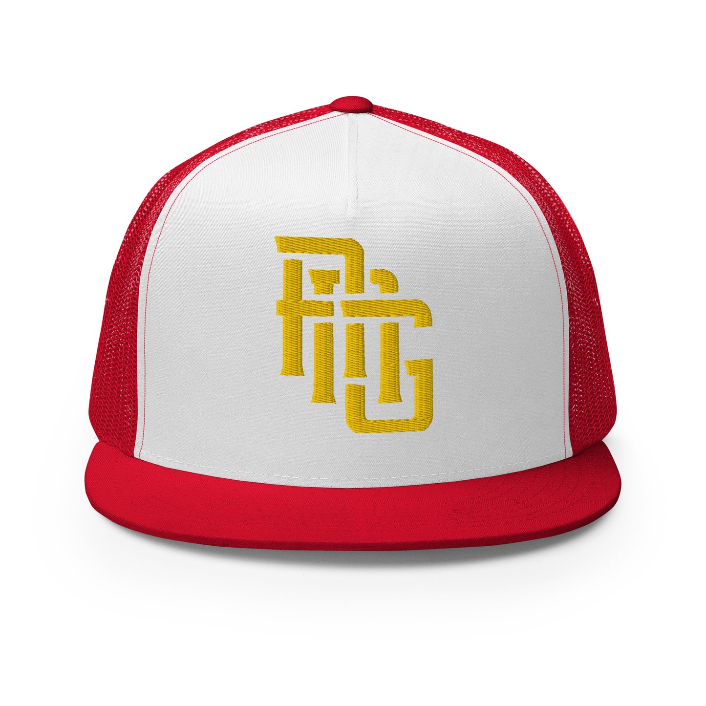 "ANG" Five Panel Trucker Cap | Yupoong 6006 | E Luna CLASSIC Solocrest 1 Gold Thread Front Logo