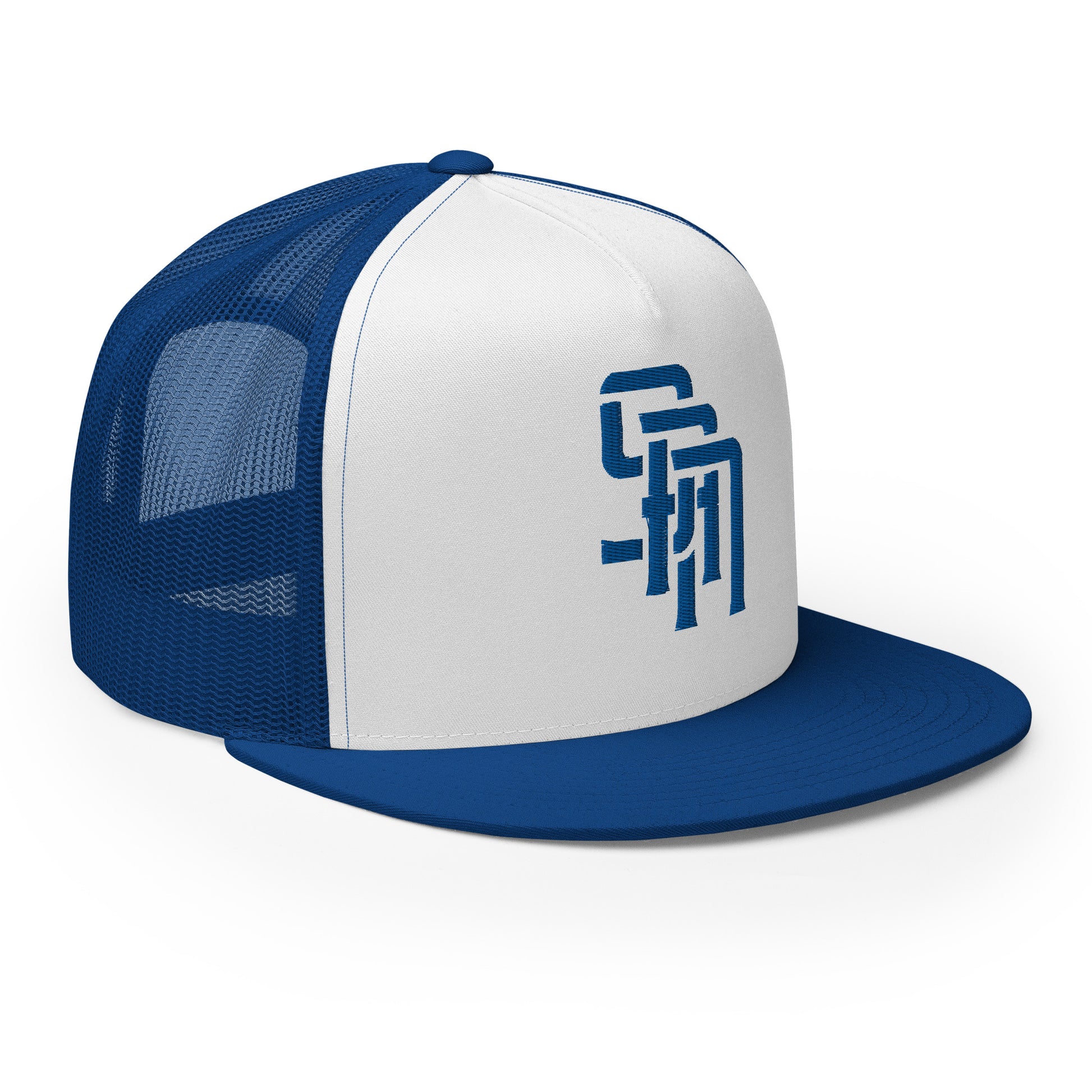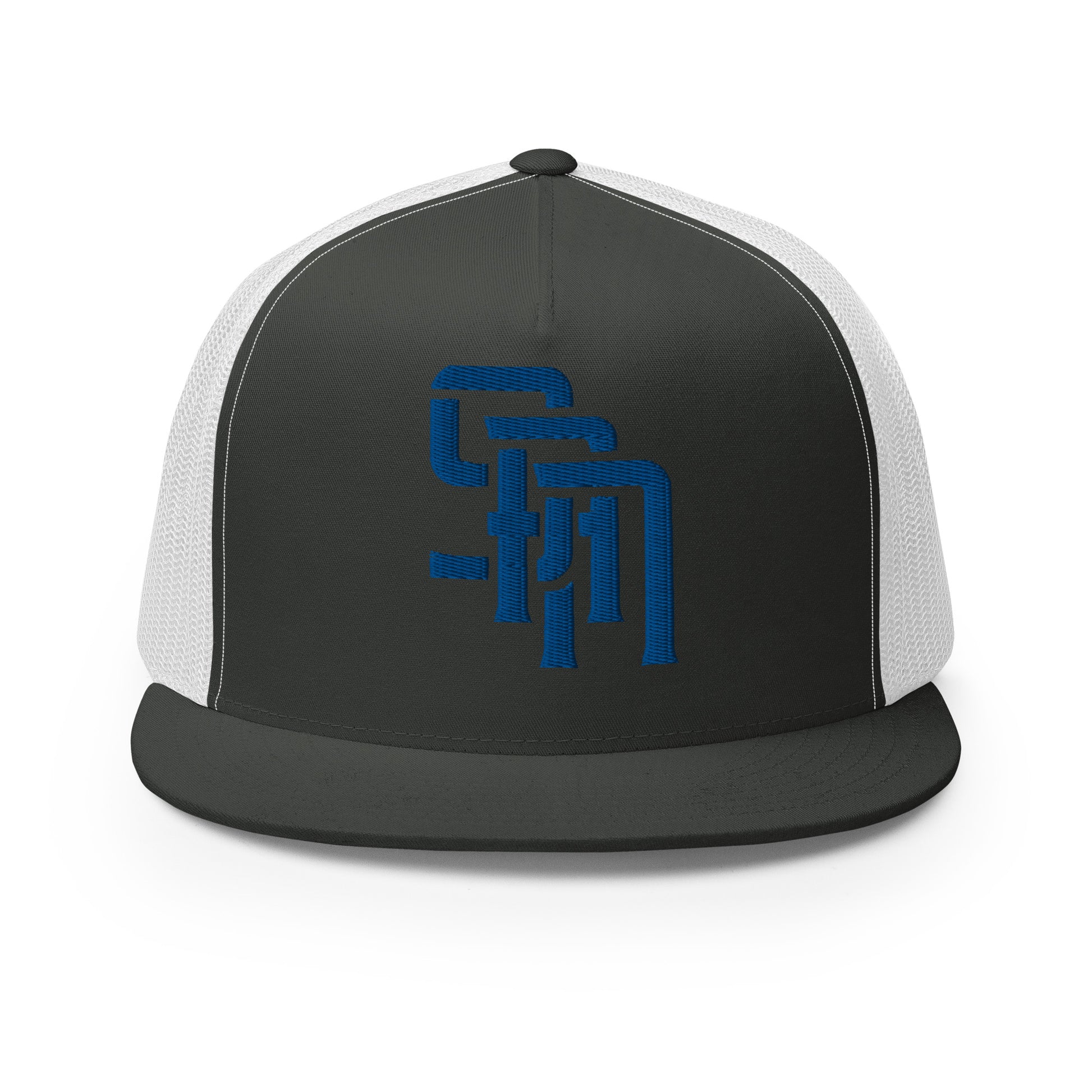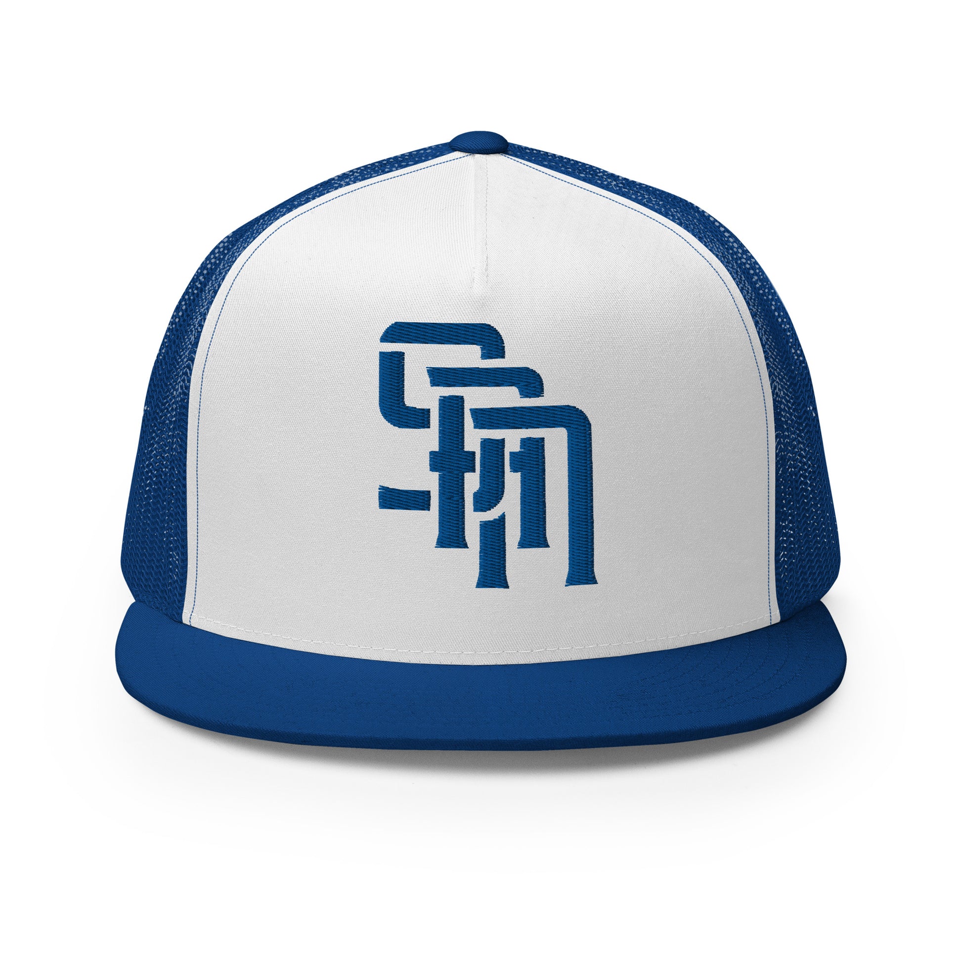 "SAN" Five Panel Trucker Cap | Yupoong 6006 | E Luna Brand CLASSIC Solocrest 1 Royal Thread Front Logo