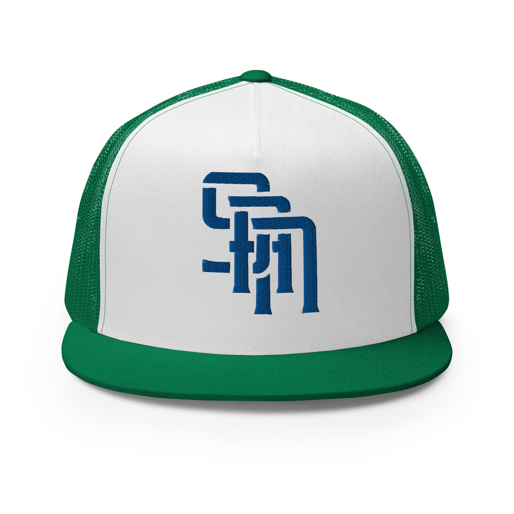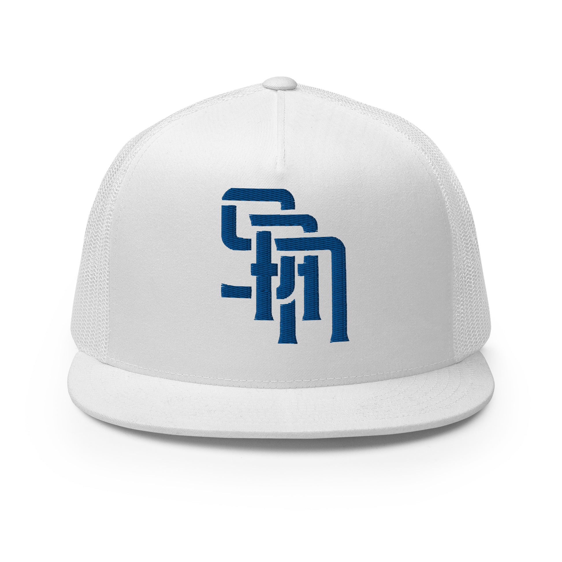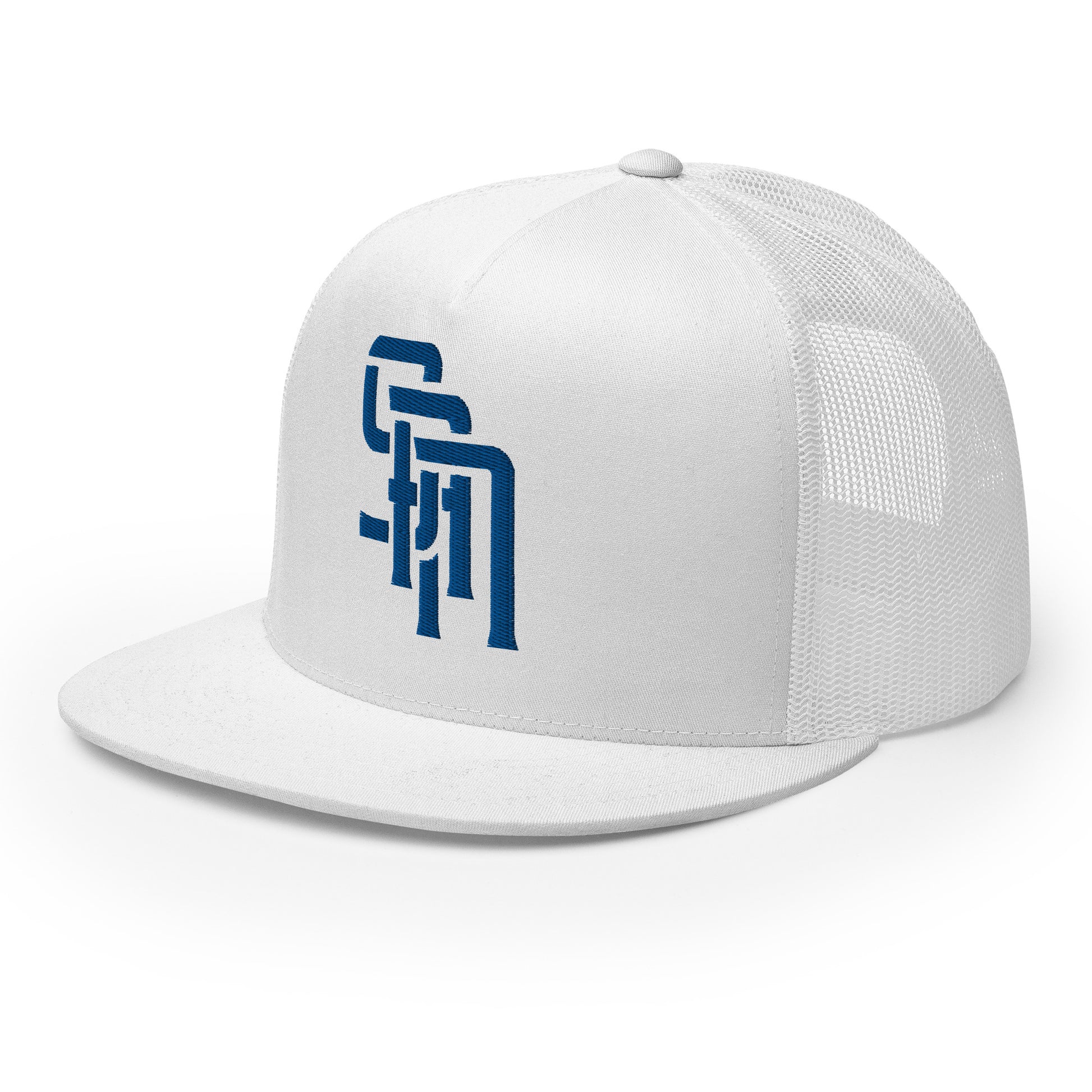 "SAN" Five Panel Trucker Cap | Yupoong 6006 | E Luna Brand CLASSIC Solocrest 1 Royal Thread Front Logo