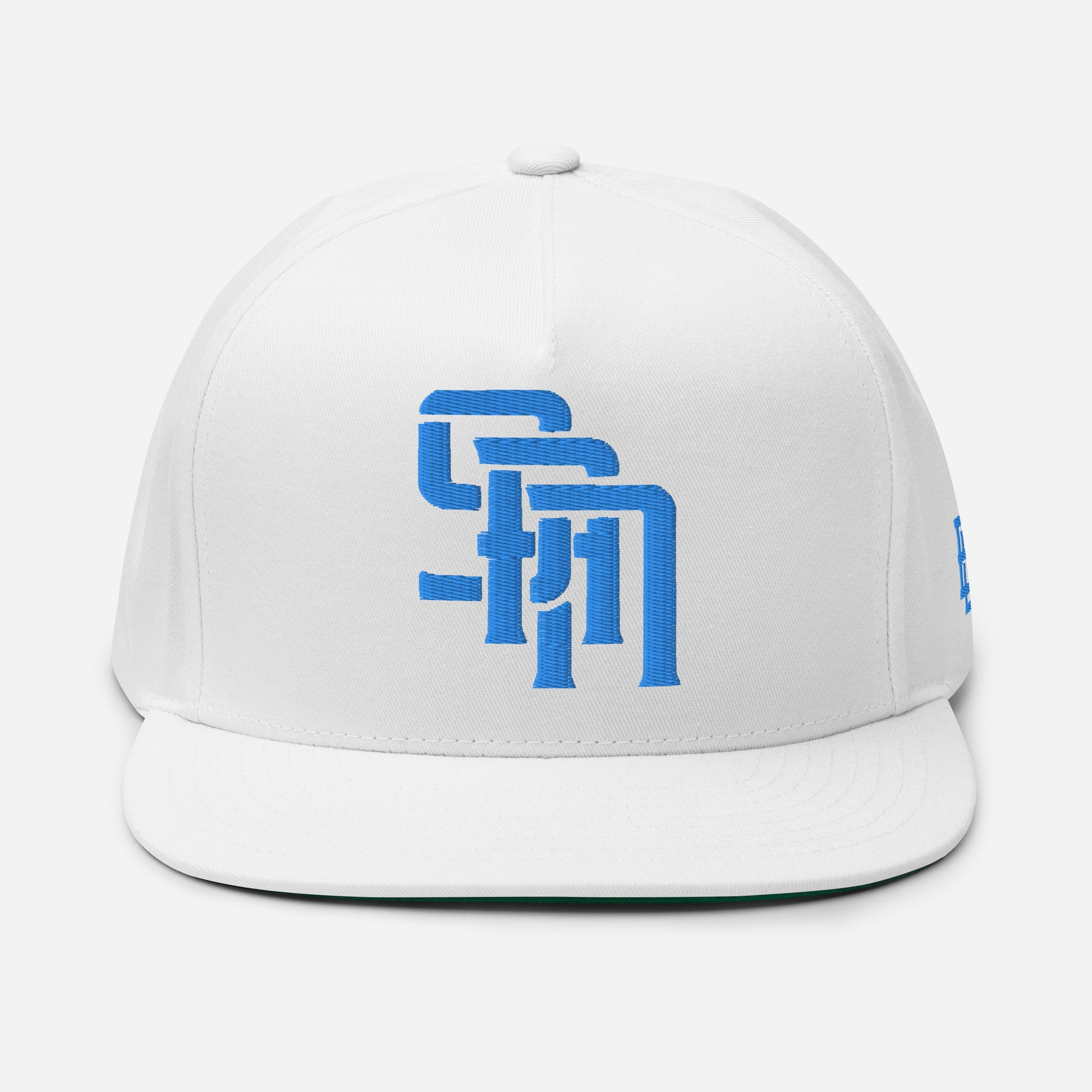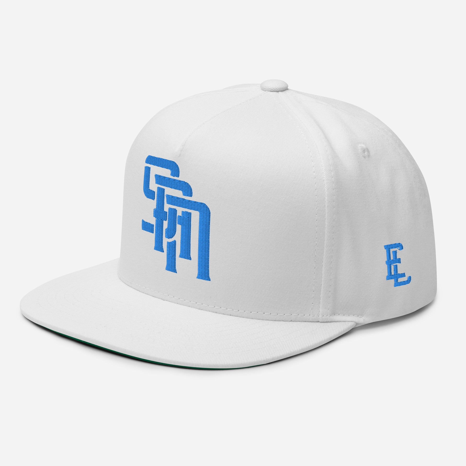 "SAN" Flat Bill Cap | Yupoong 6007 | E Luna Brand SELECT Tricrest 3 Aqua/Teal Thread Logos: Front, Left & Back [3D Puff Edition]