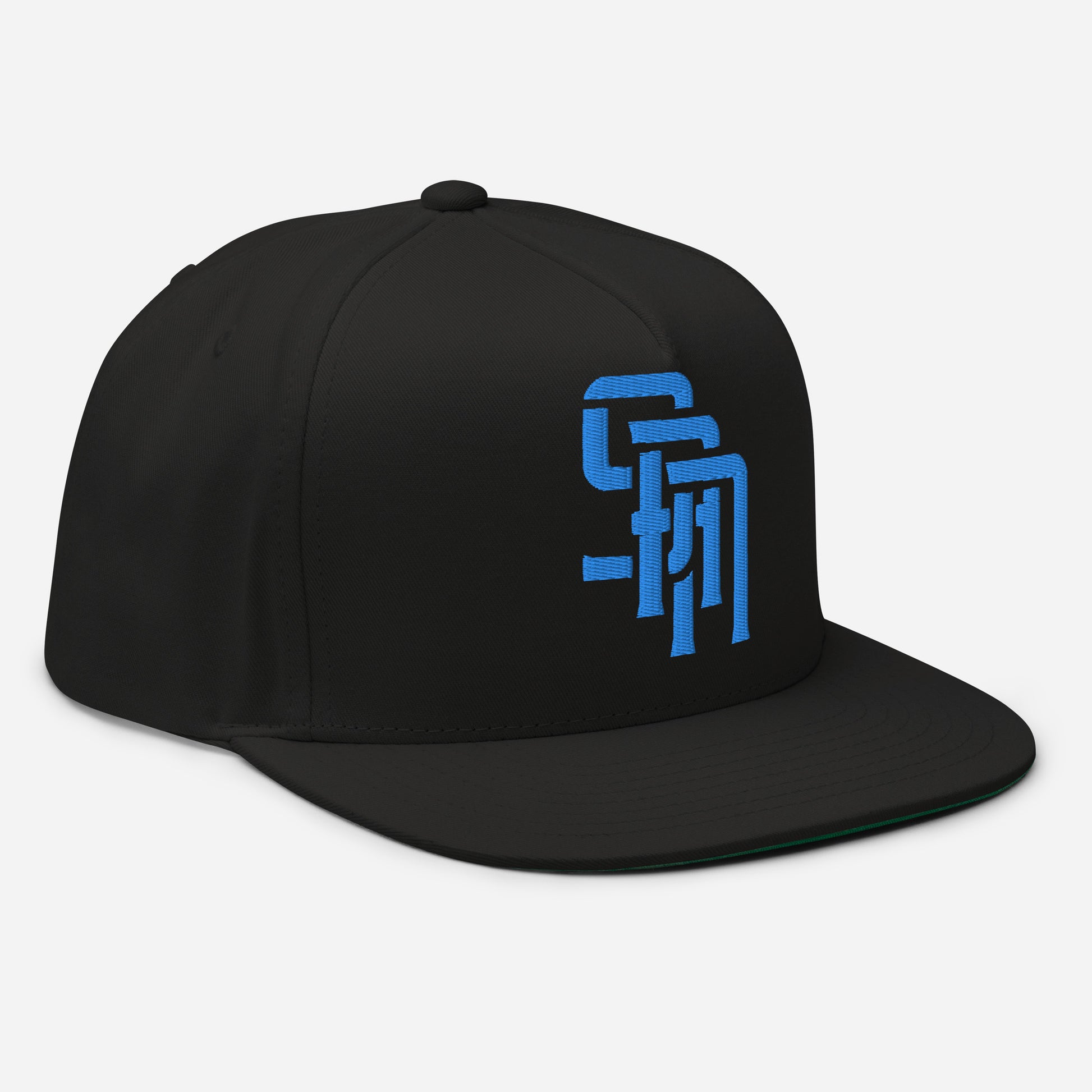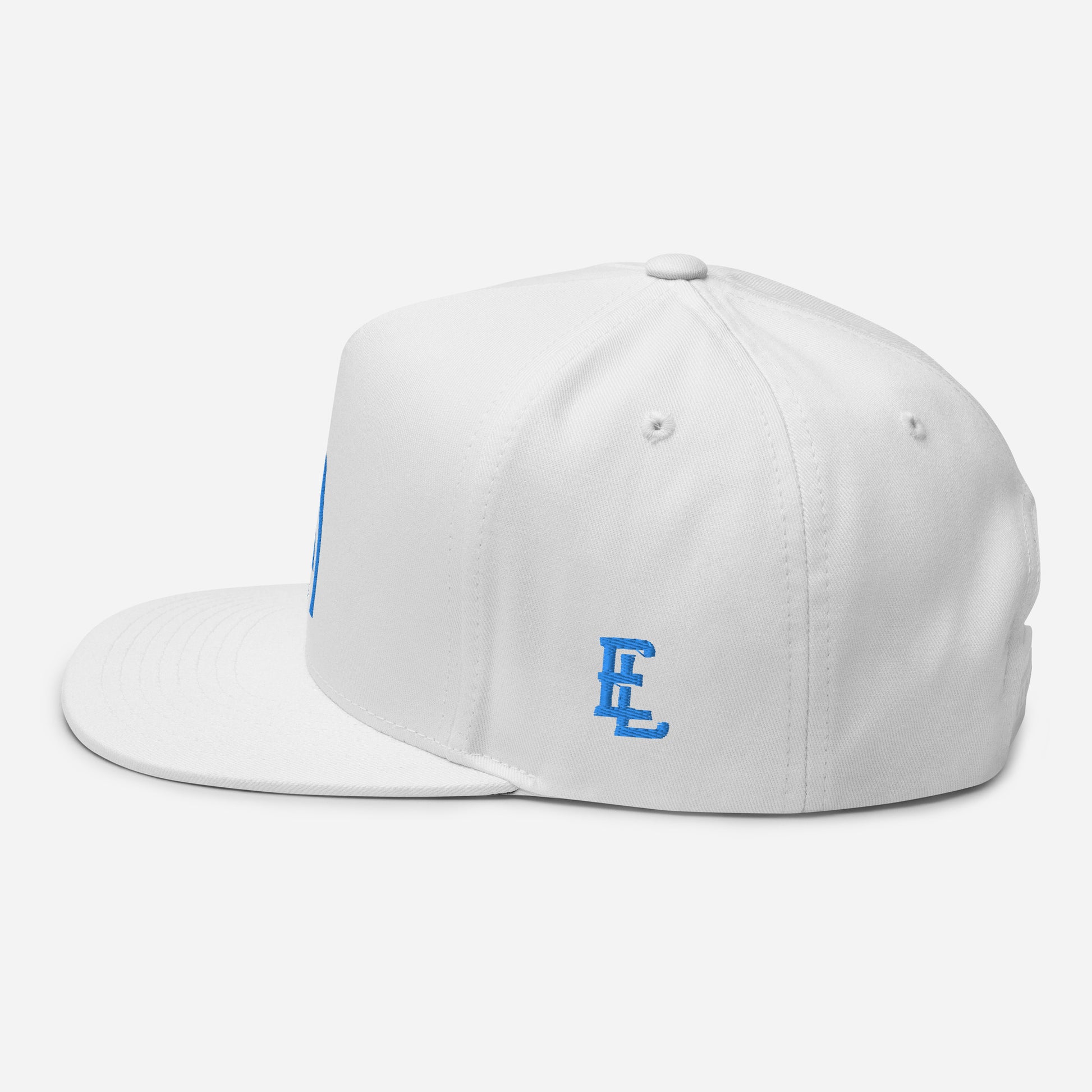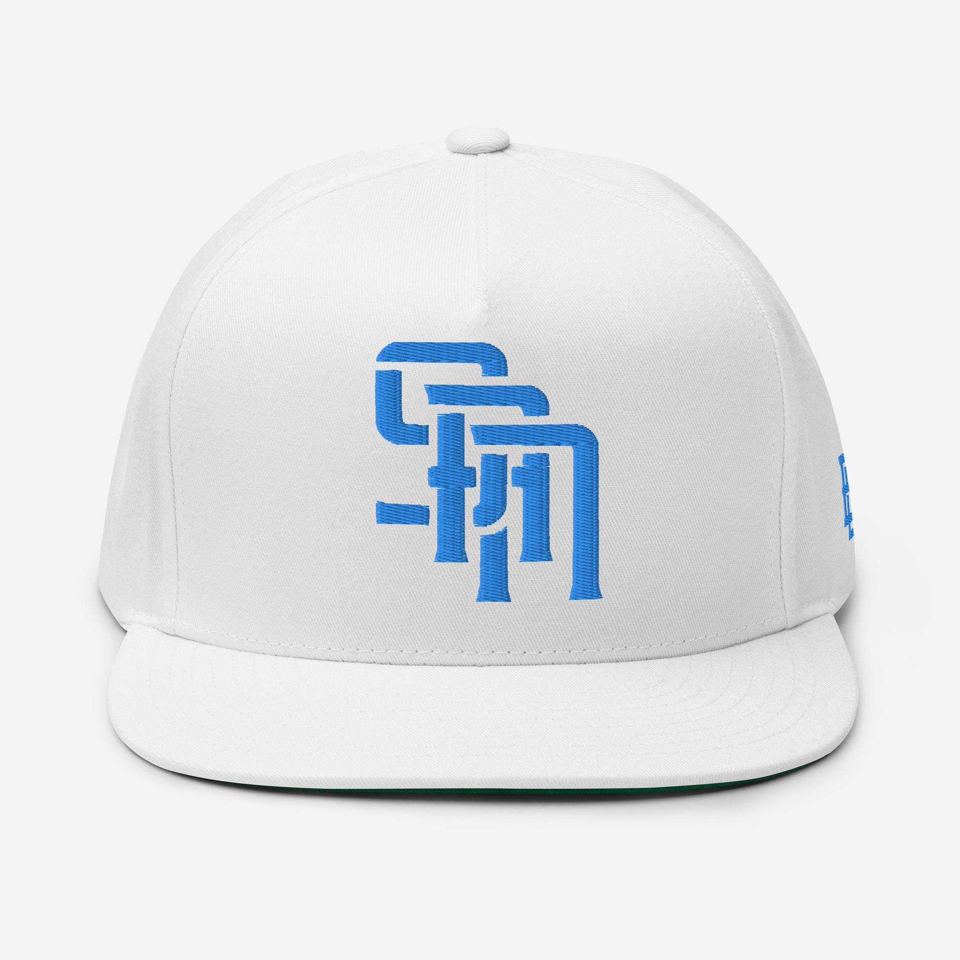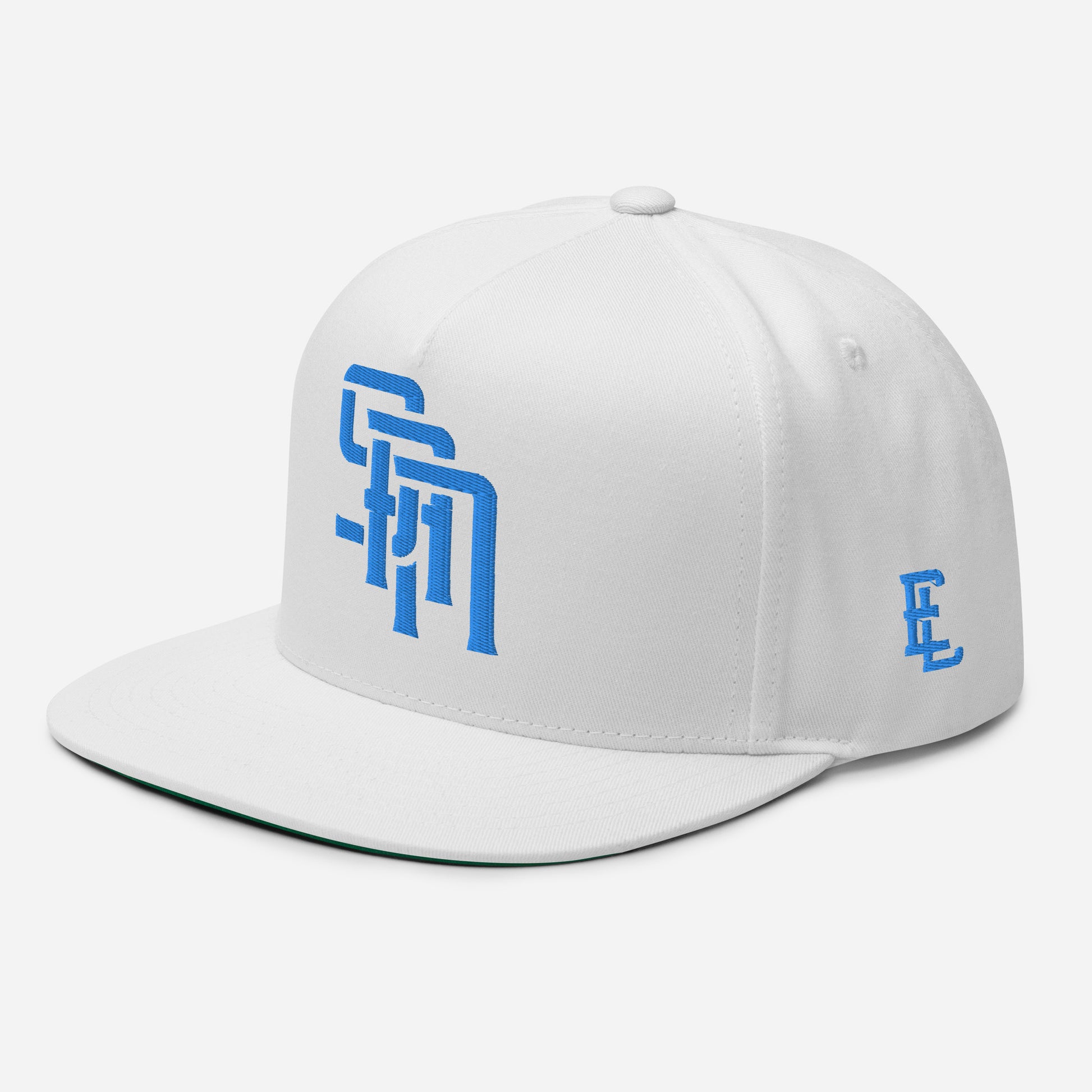 "SAN" Flat Bill Cap | Yupoong 6007 | E Luna Brand ESSENTIAL Duocrest 2 Aqua/Teal Thread Logos: Front & Left