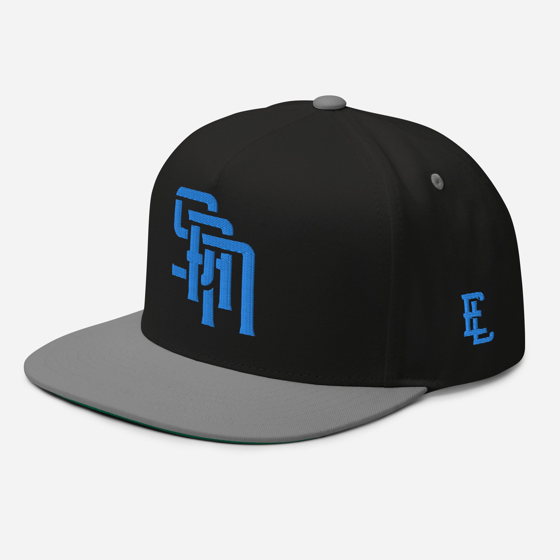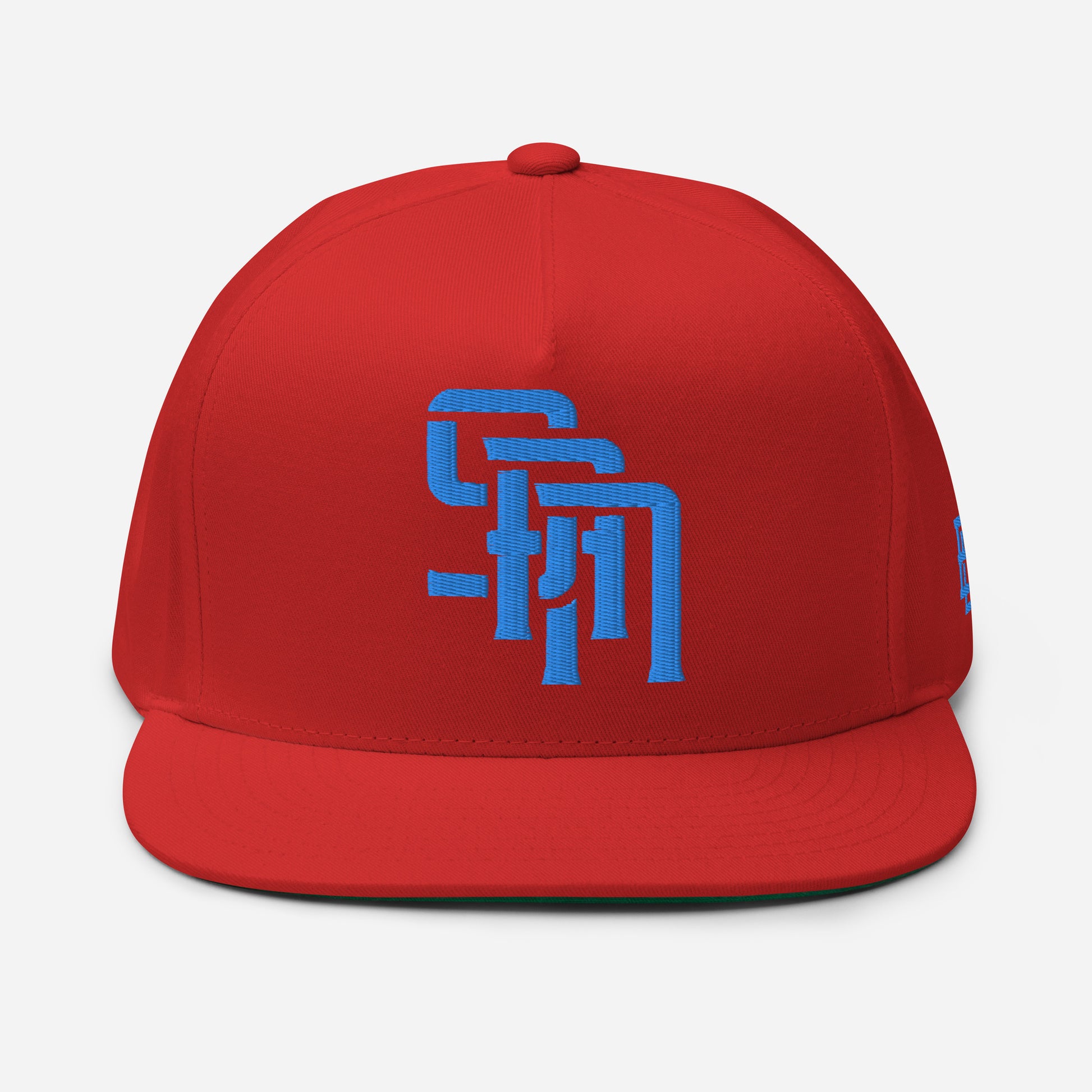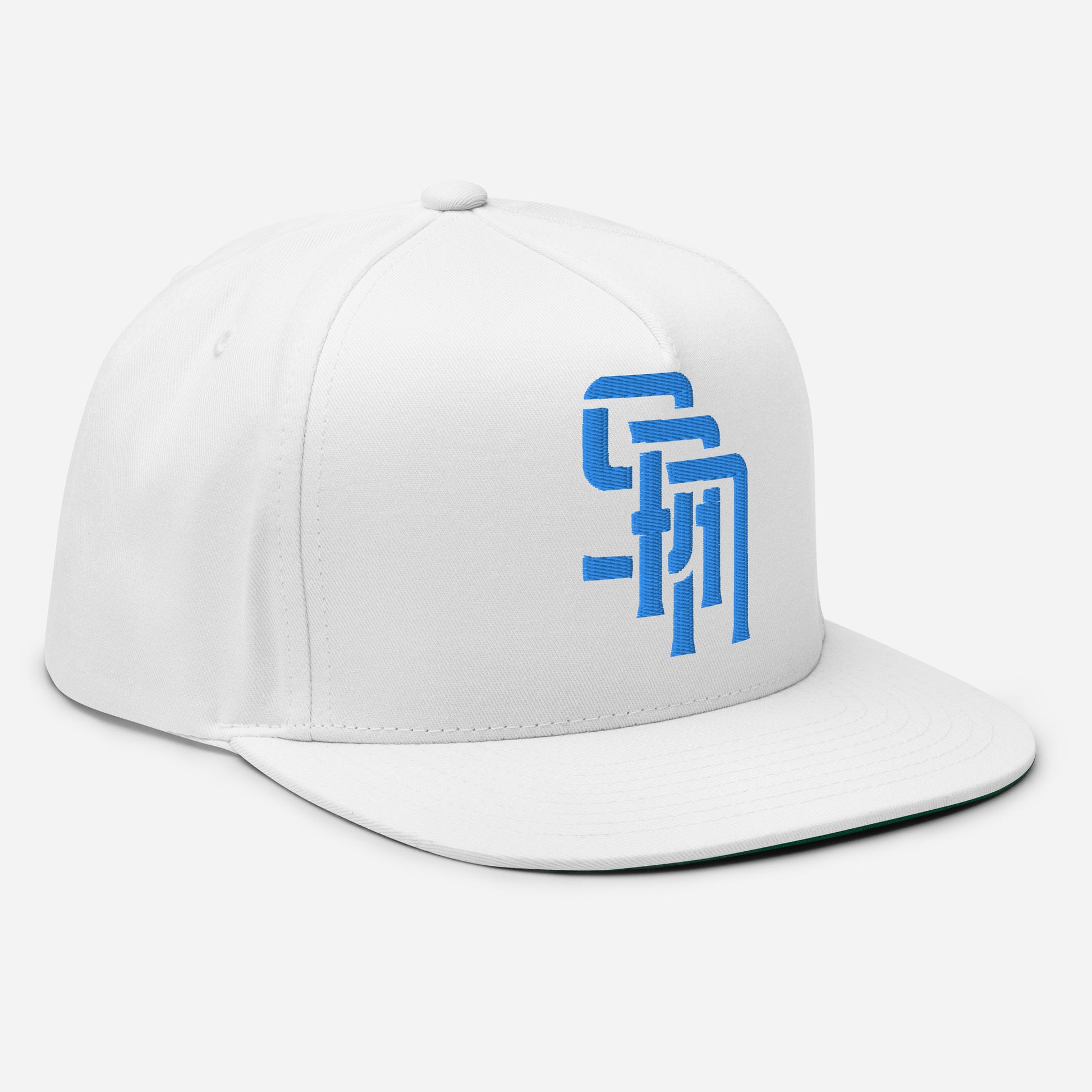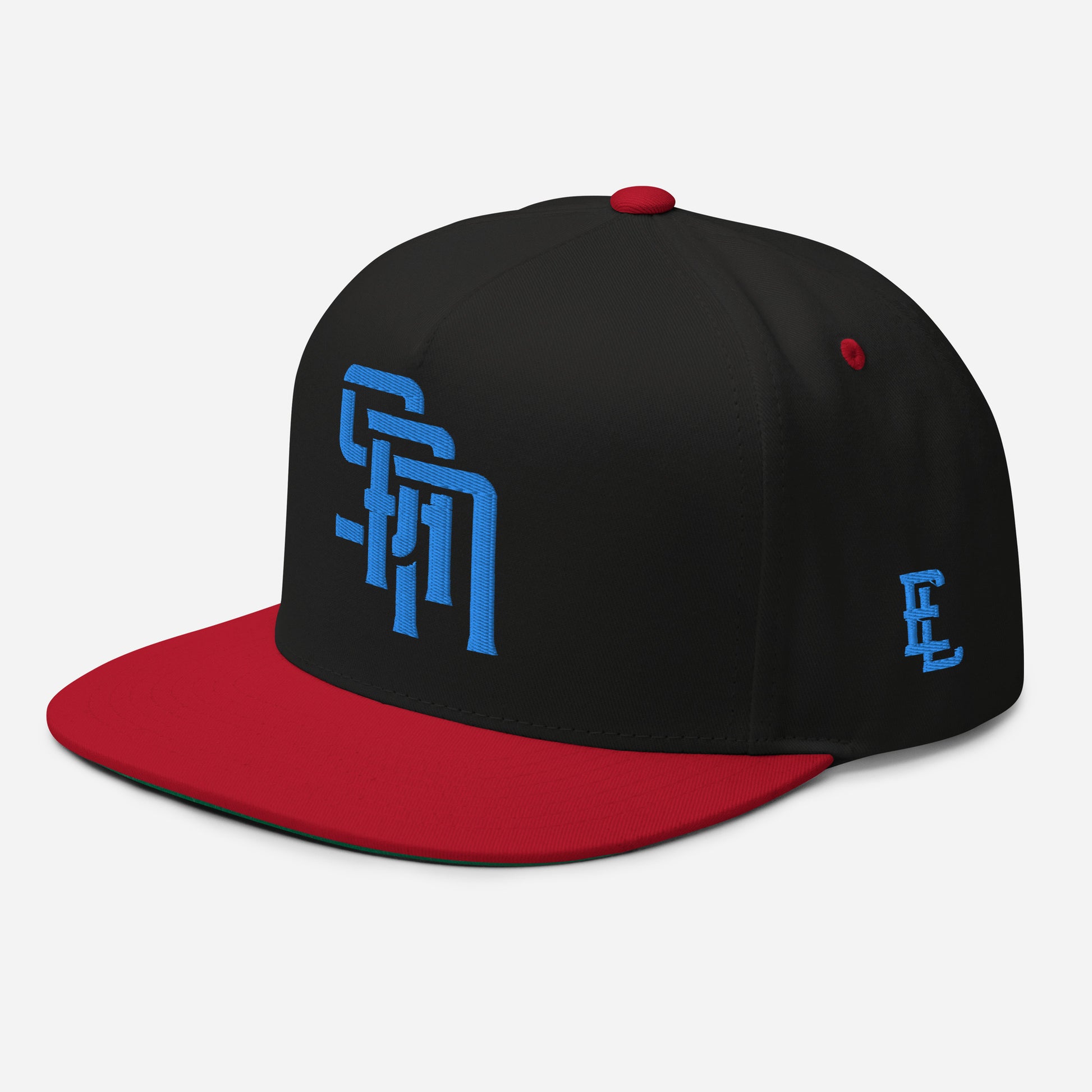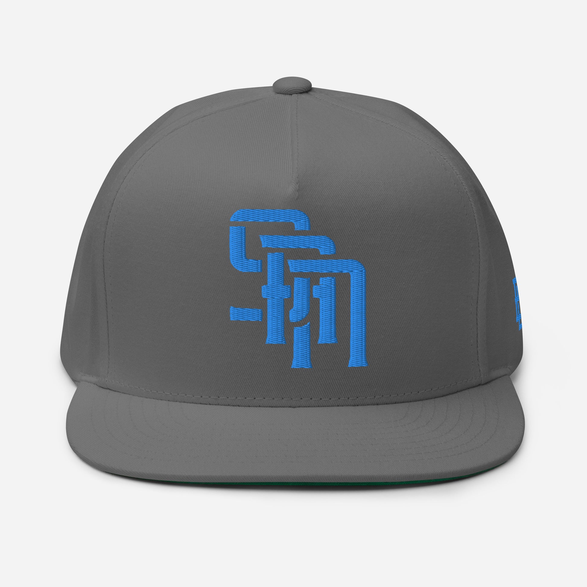 "SAN" Flat Bill Cap | Yupoong 6007 | E Luna Brand ESSENTIAL Duocrest 2 Aqua/Teal Thread Logos: Front & Left