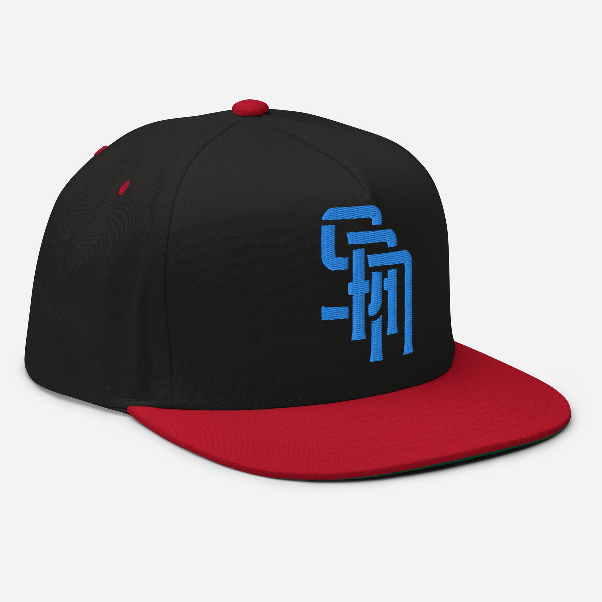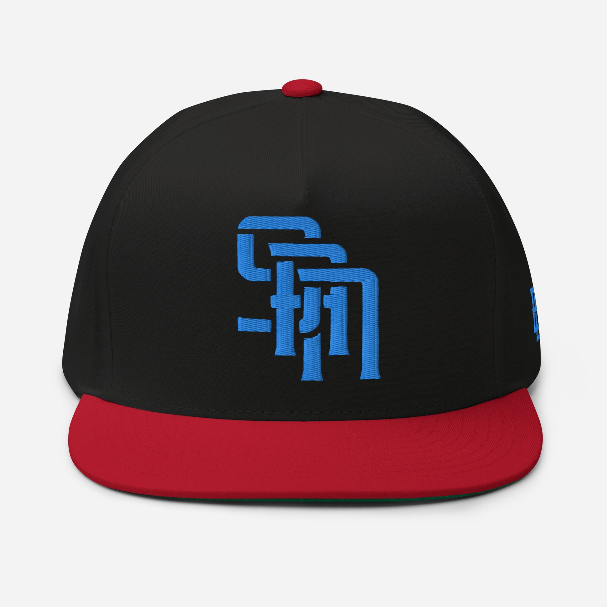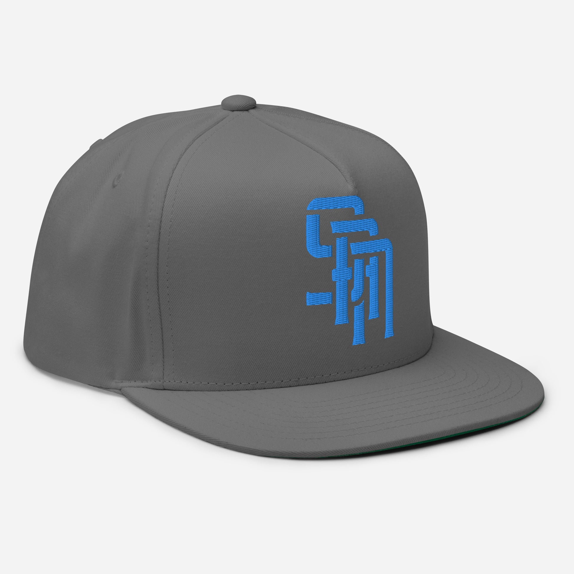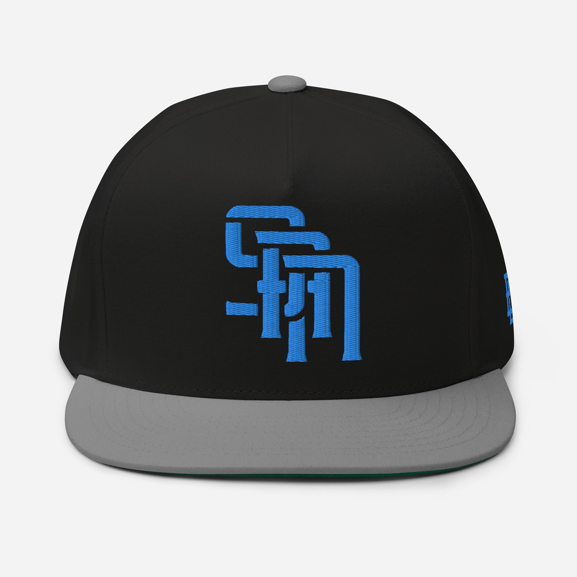 "SAN" Flat Bill Cap | Yupoong 6007 | E Luna Brand ESSENTIAL Duocrest 2 Aqua/Teal Thread Logos: Front & Left