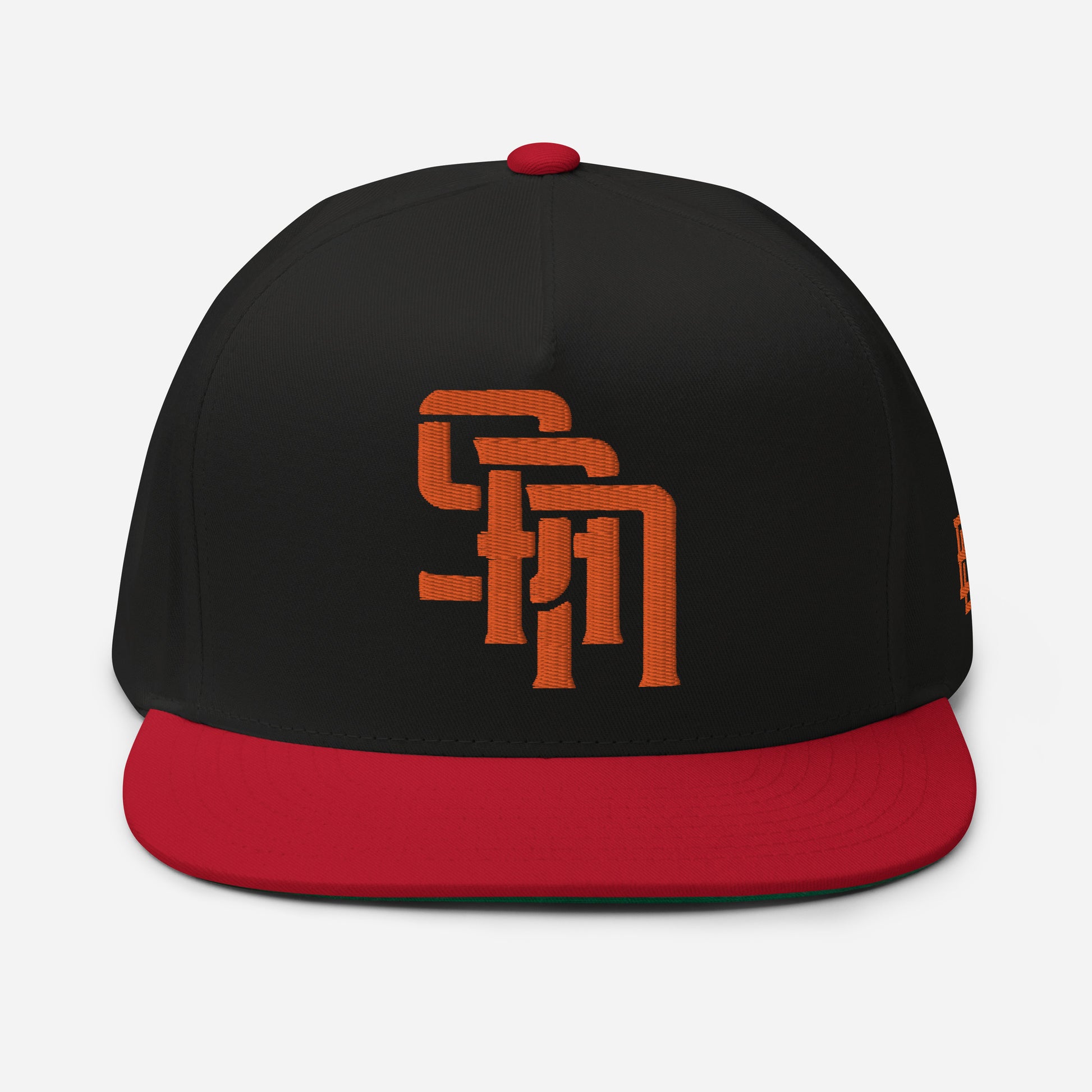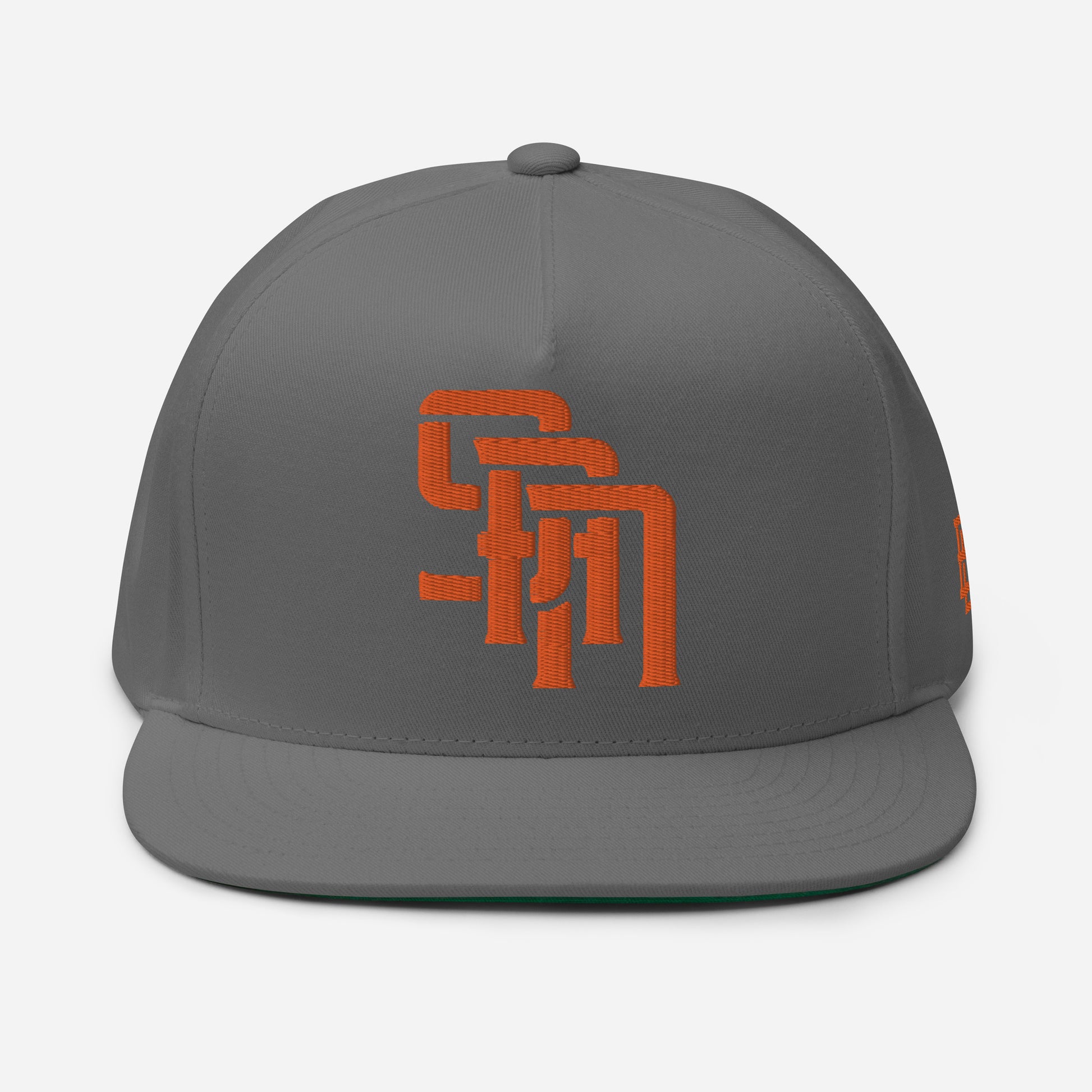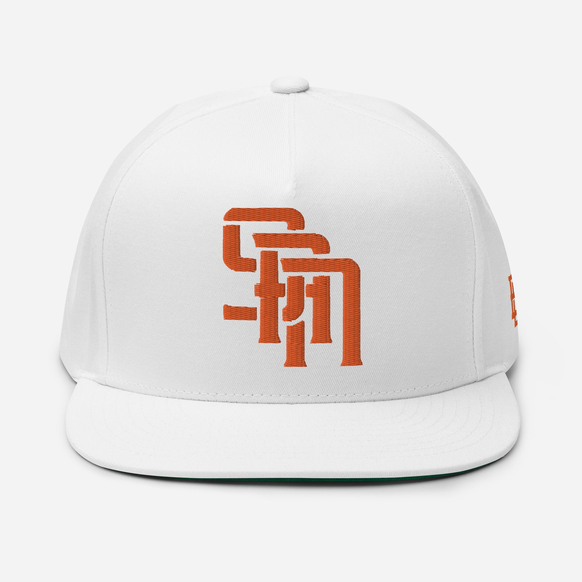 "SAN" Flat Bill Cap | Yupoong 6007 | E Luna Brand SELECT Tricrest 3 Orange Thread Logos: Front, Left & Back [3D Puff Edition]