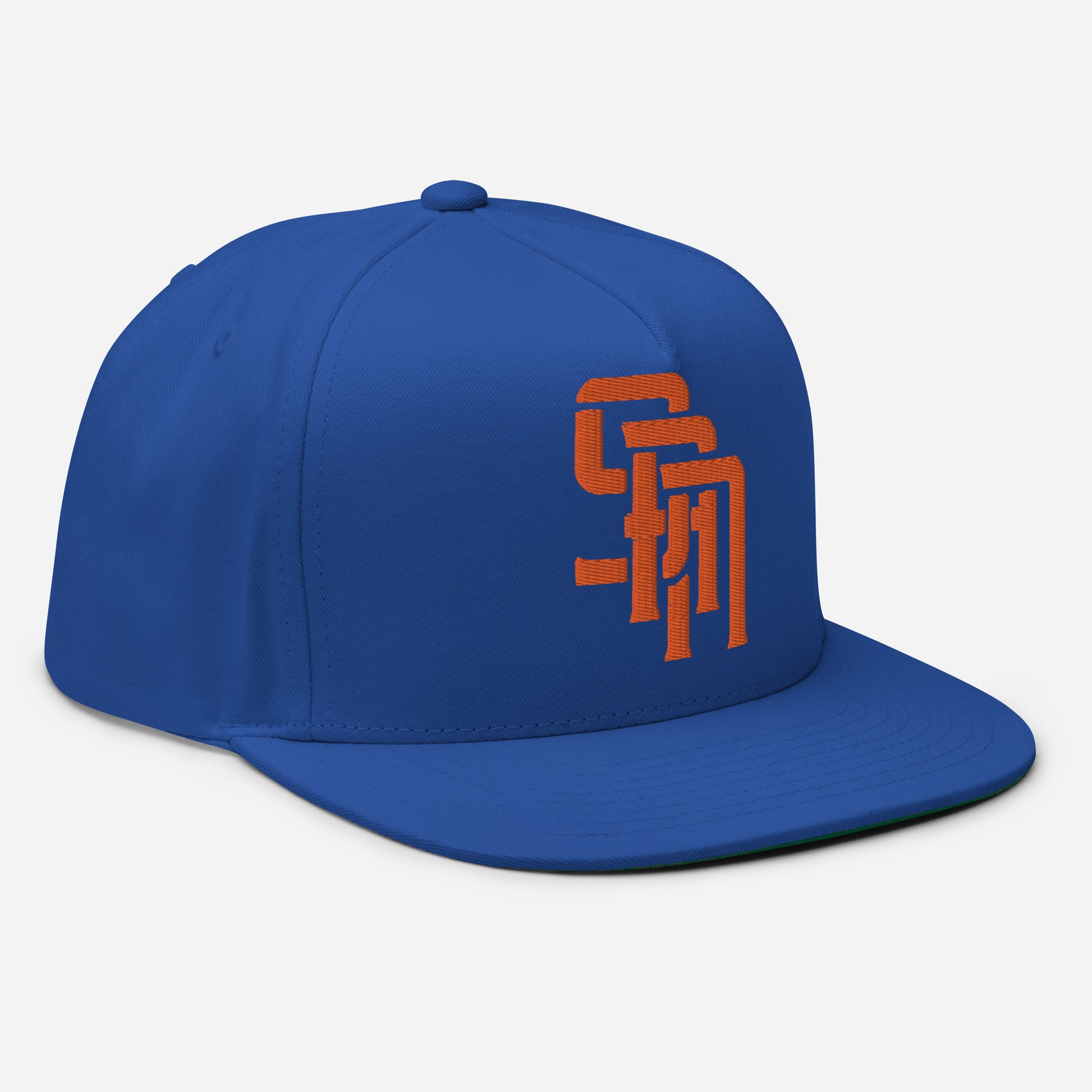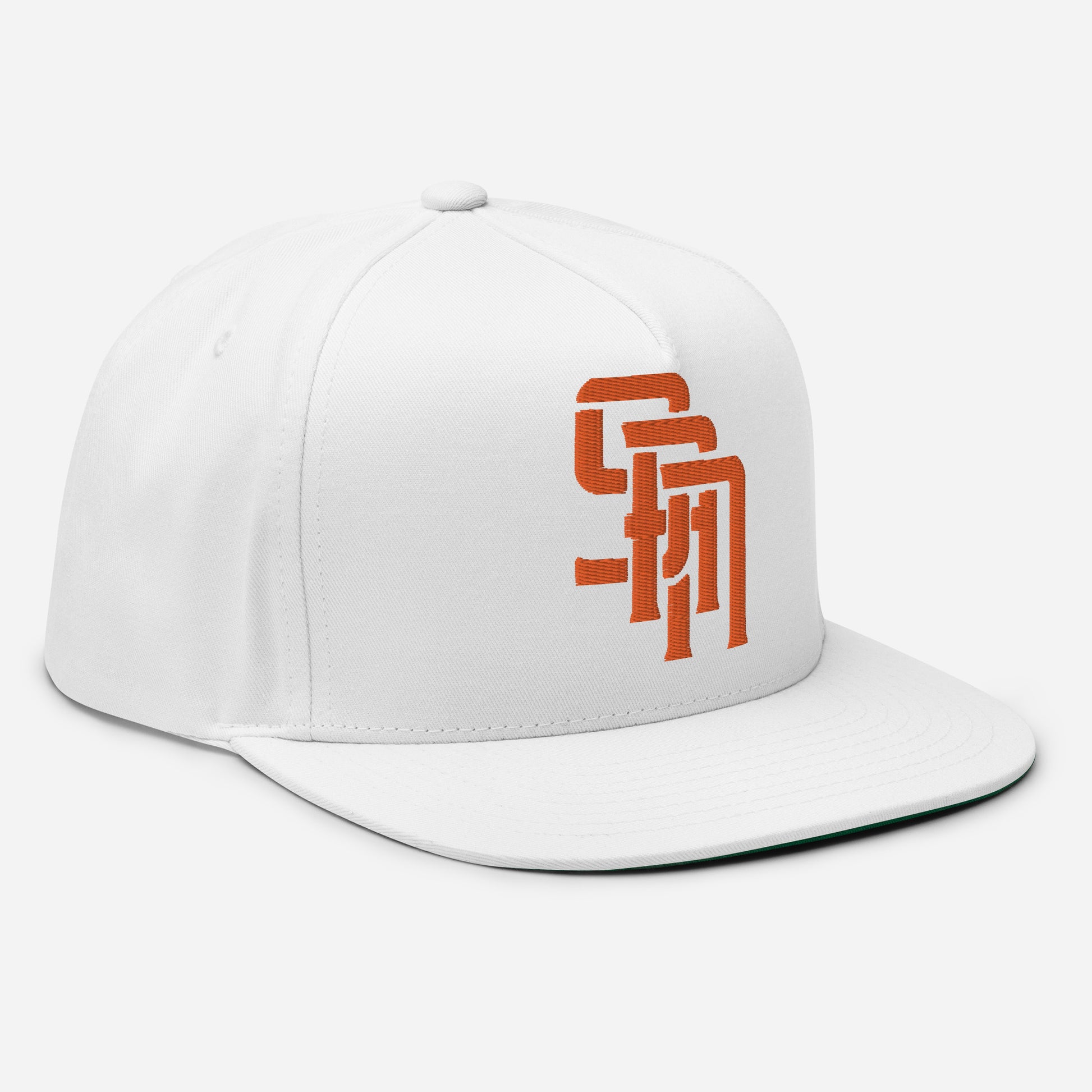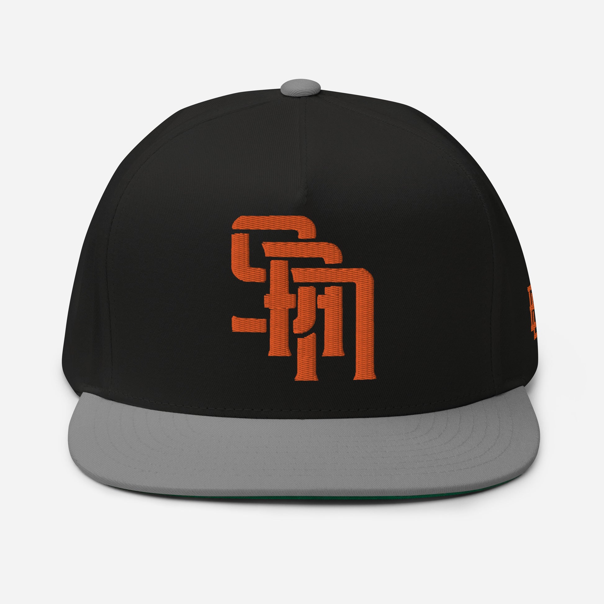 "SAN" Flat Bill Cap | Yupoong 6007 | E Luna Brand SELECT Tricrest 3 Orange Thread Logos: Front, Left & Back [3D Puff Edition]