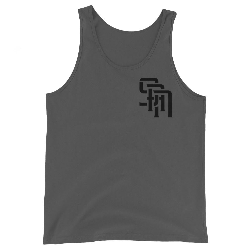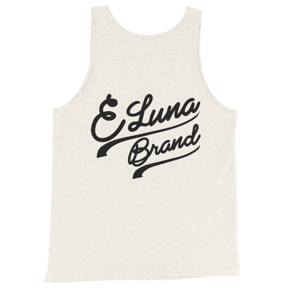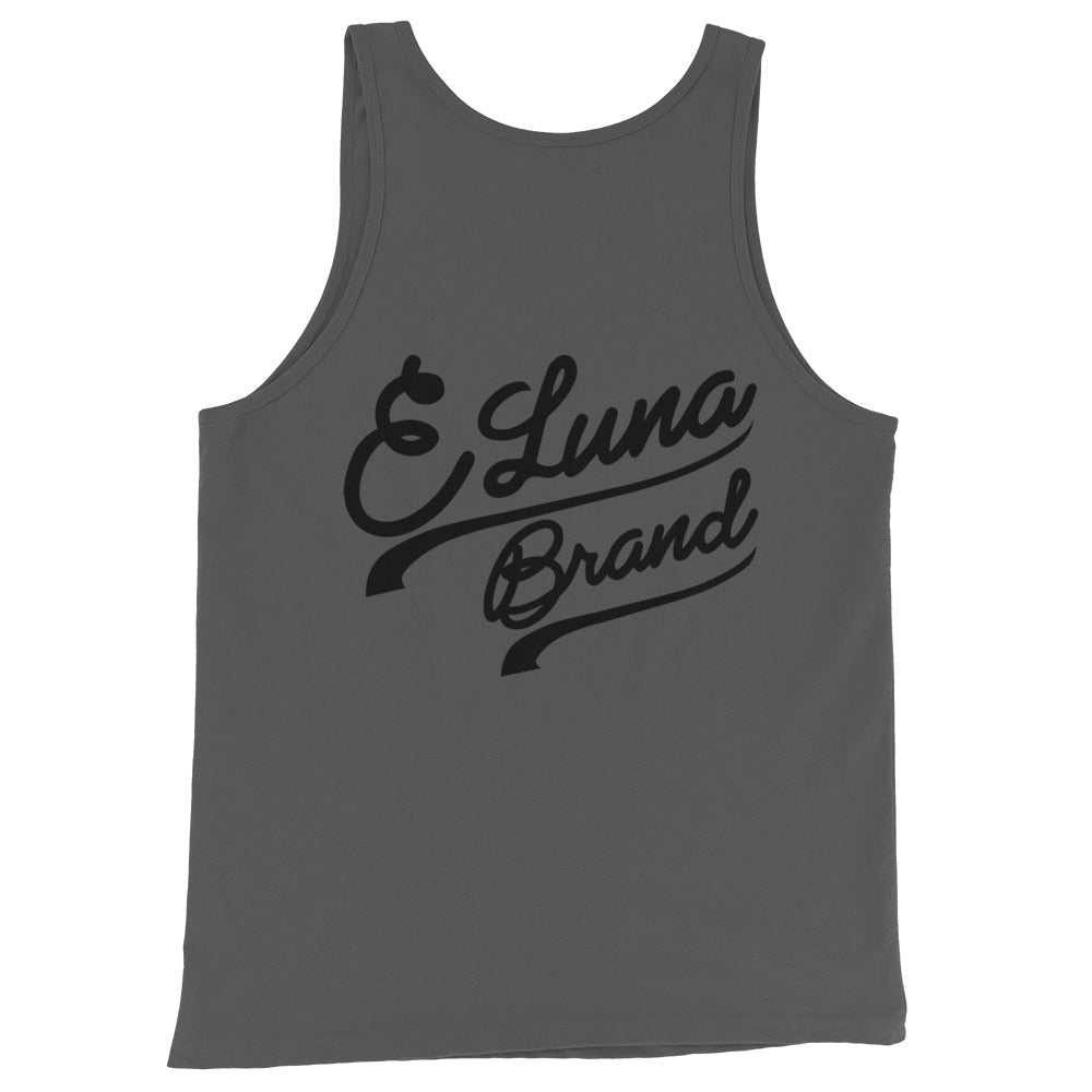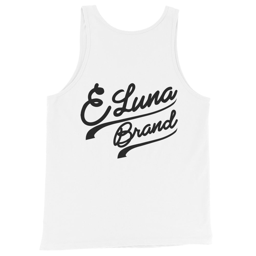 "SAN" Men’s Staple Tank Top | E Luna Brand CHOICE | 2 Black Logos: Front Left & Back Signature