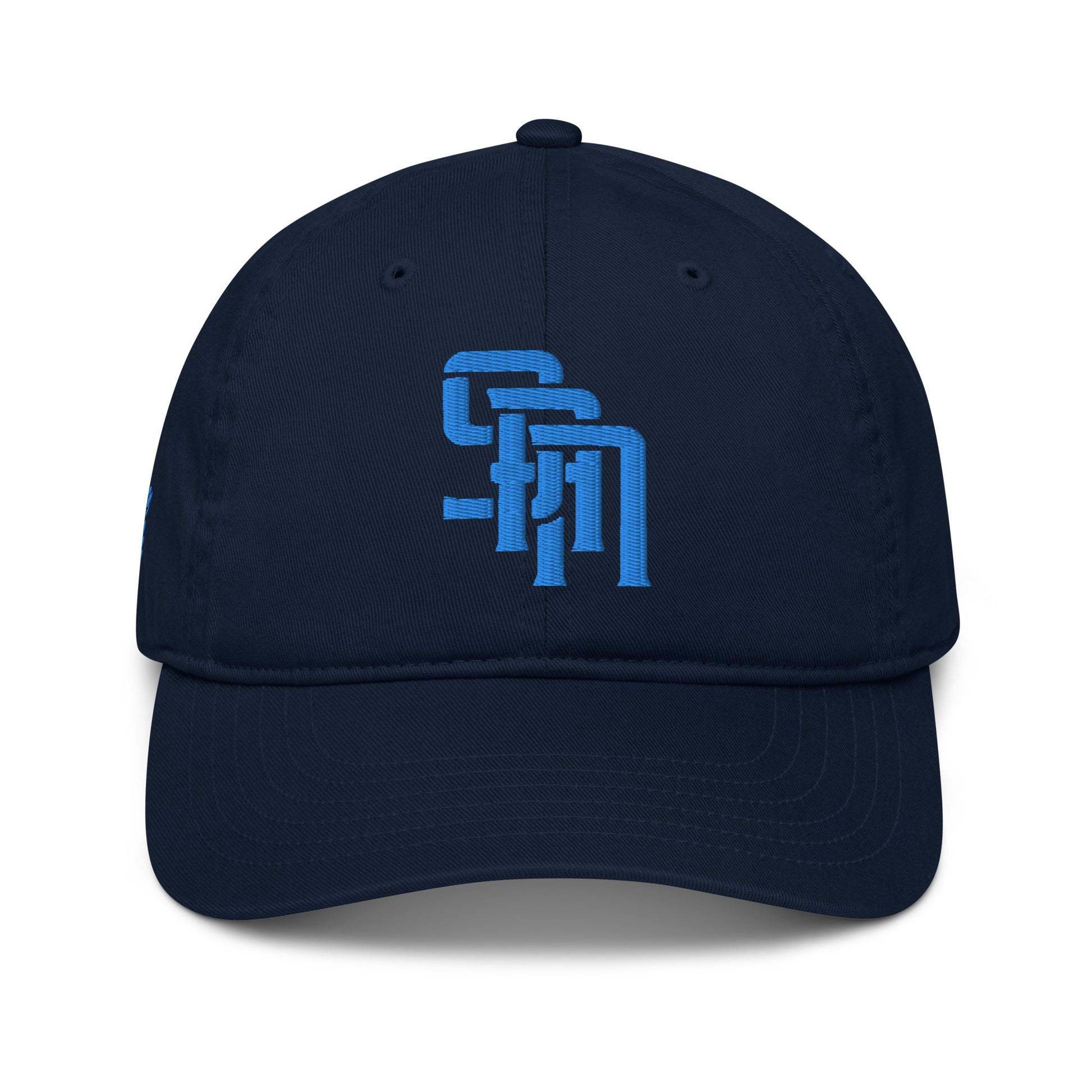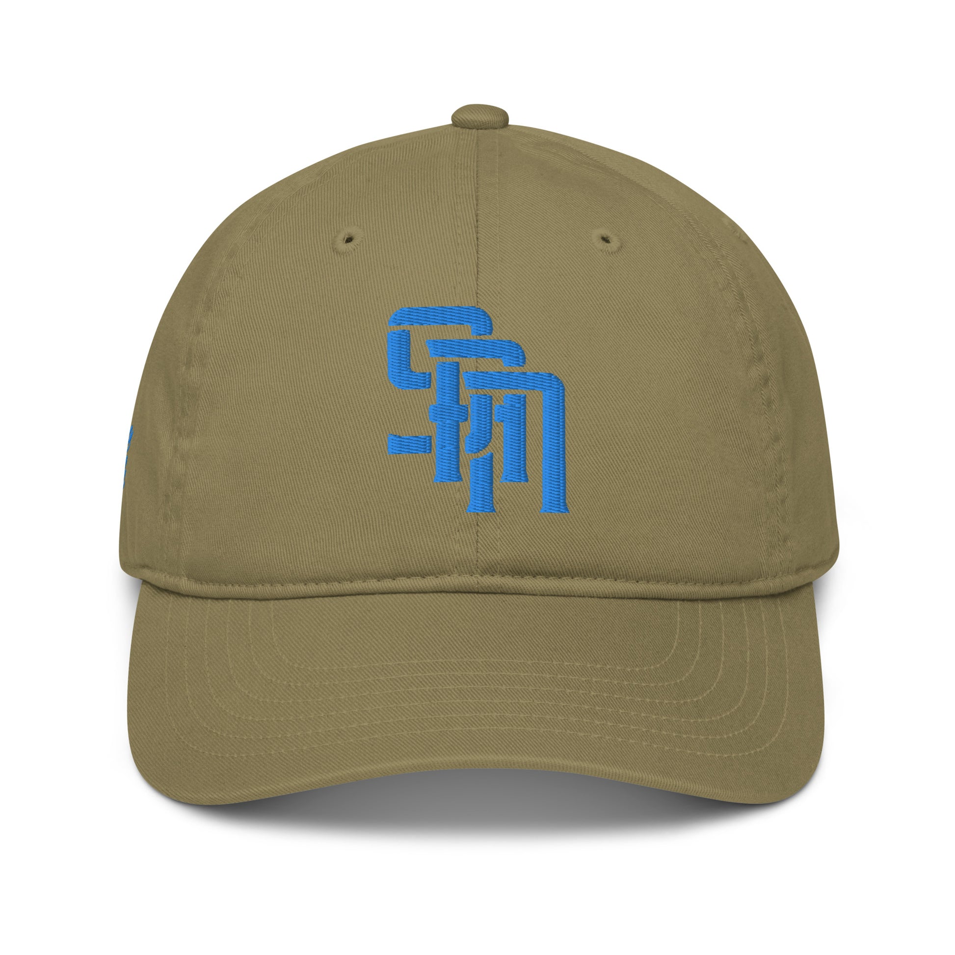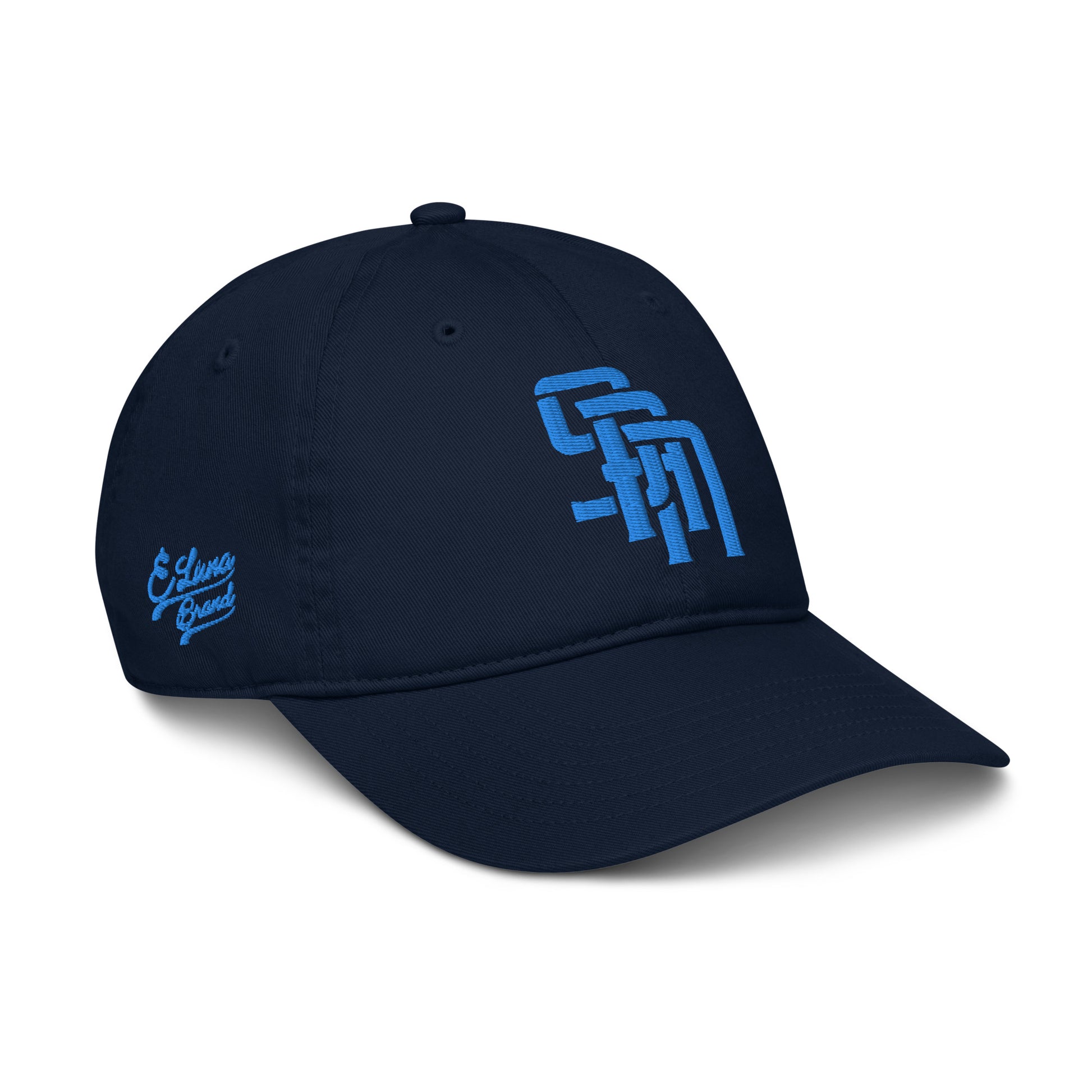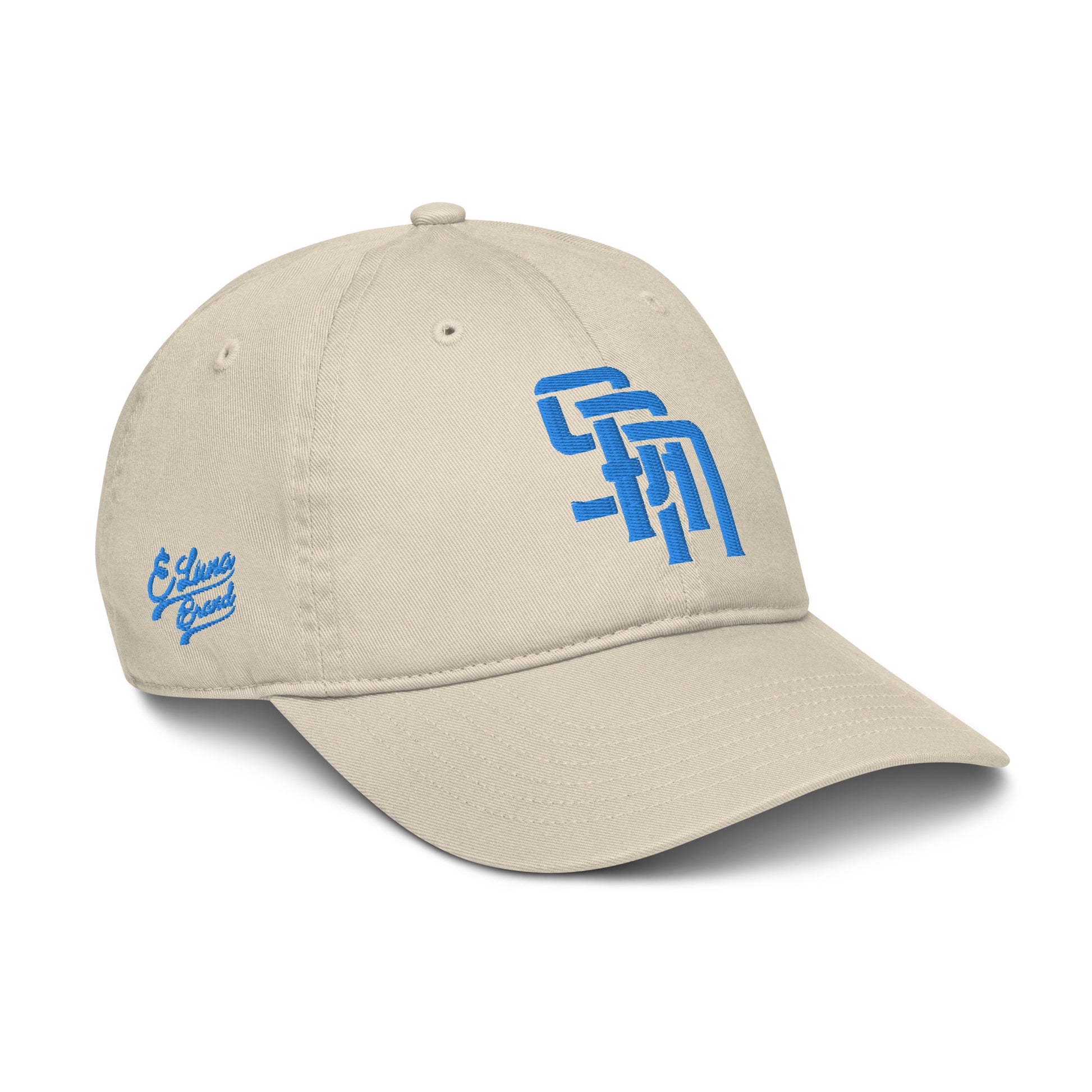 "SAN" Organic Baseball Cap | Econscious EC7000 | E Luna Brand PREMIUM Quadcrest 4 Aqua/Teal Thread Logos: Front, Left, Right Signature & Back [3D Puff Edition]