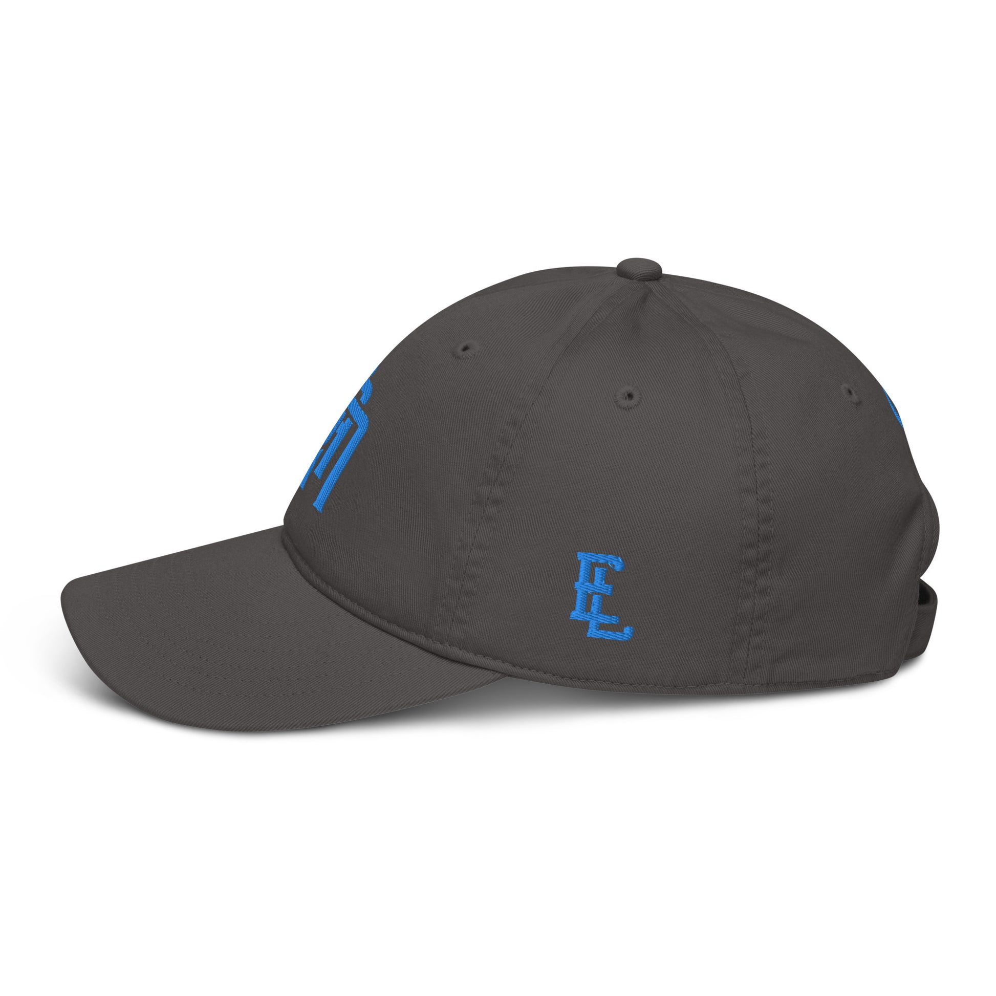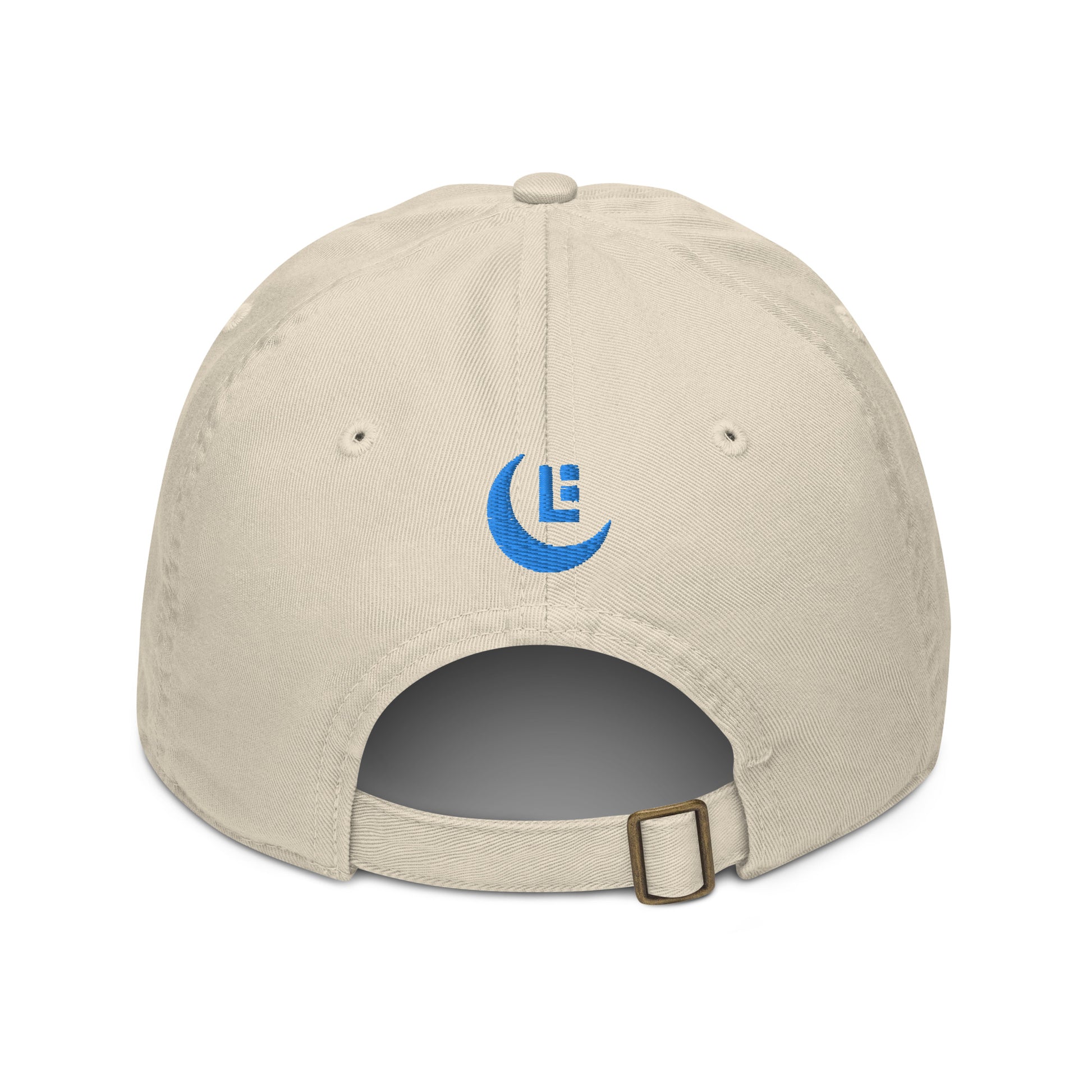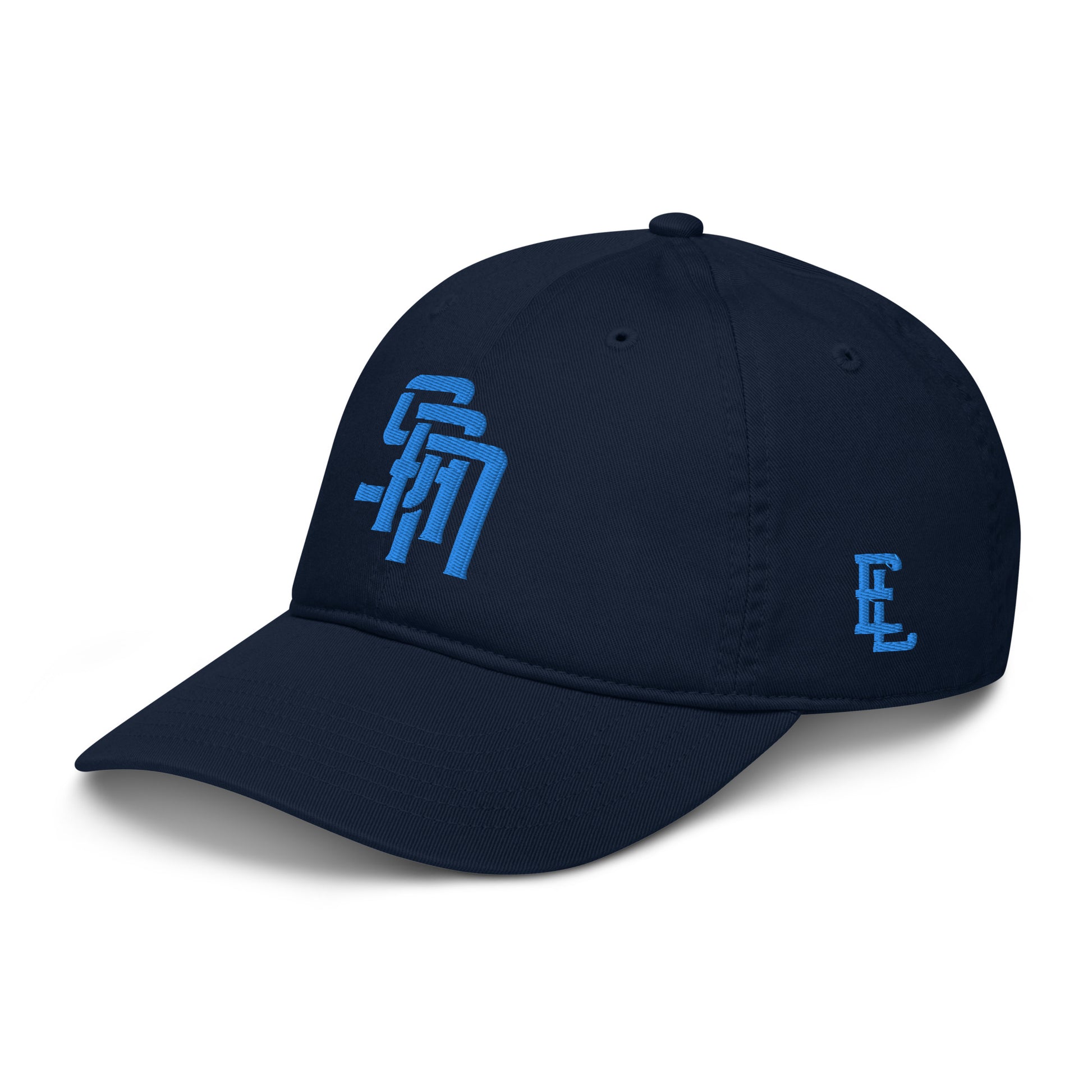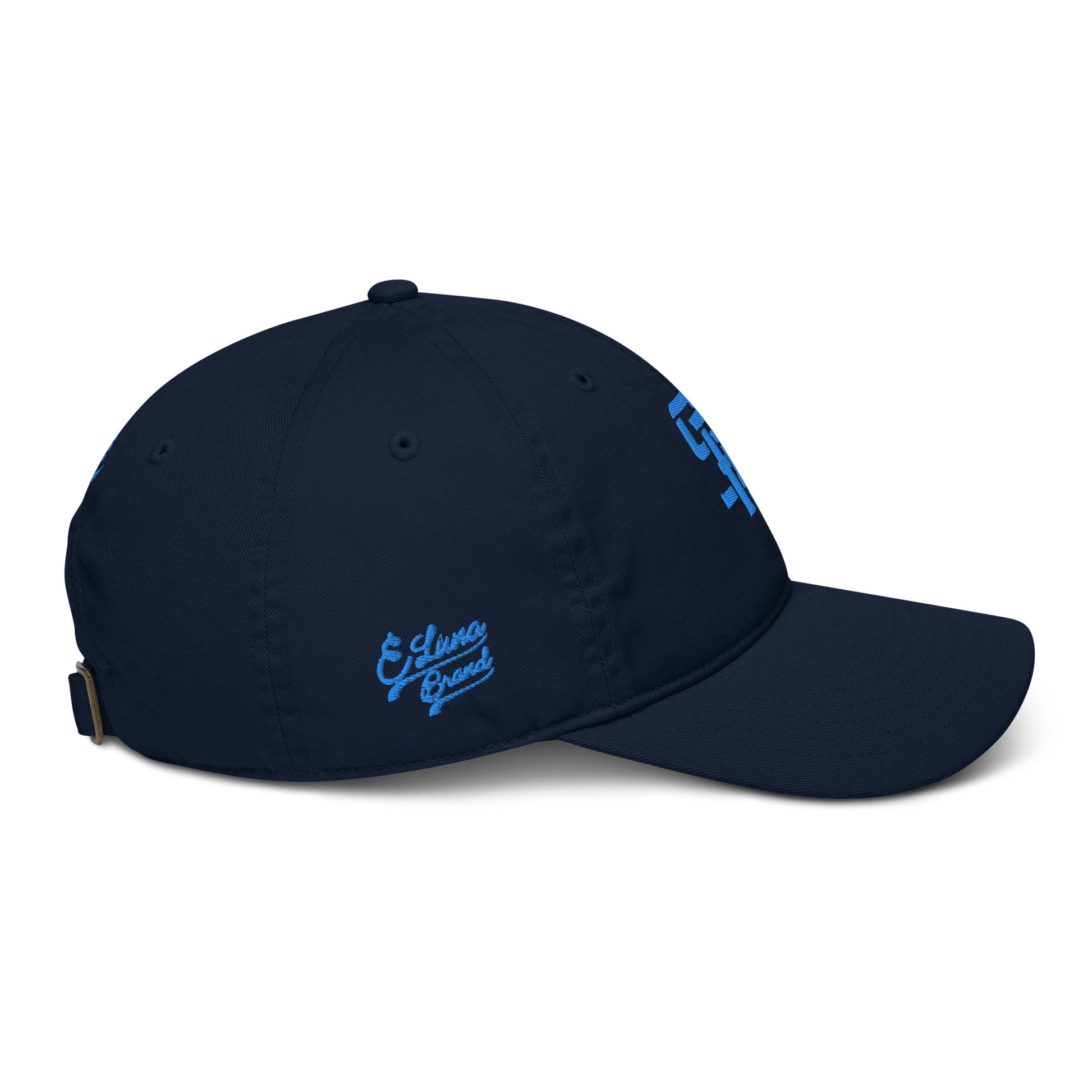 "SAN" Organic Baseball Cap | Econscious EC7000 | E Luna Brand PREMIUM Quadcrest 4 Aqua/Teal Thread Logos: Front, Left, Right Signature & Back [3D Puff Edition]