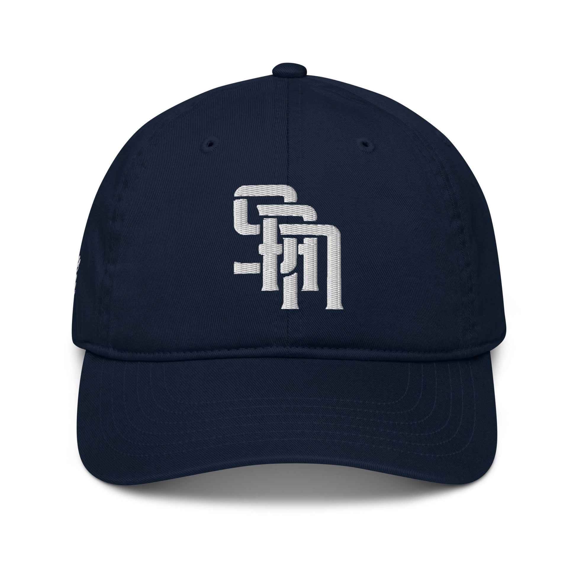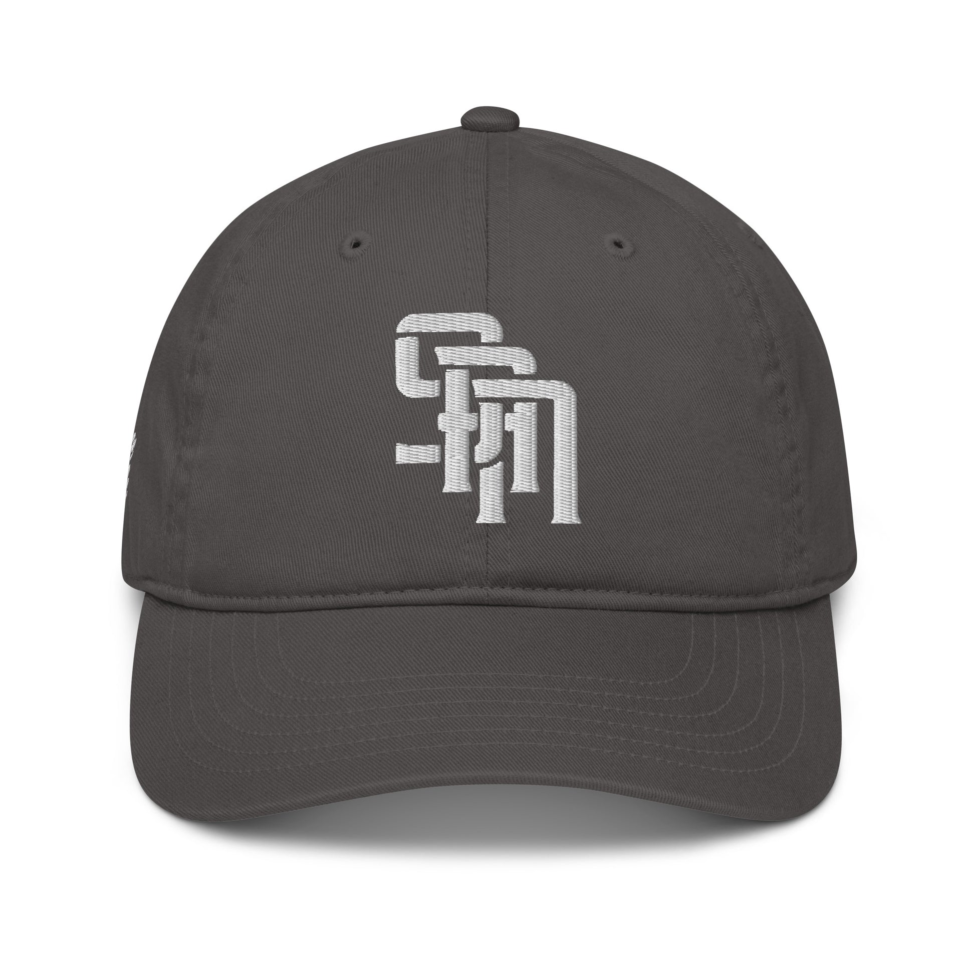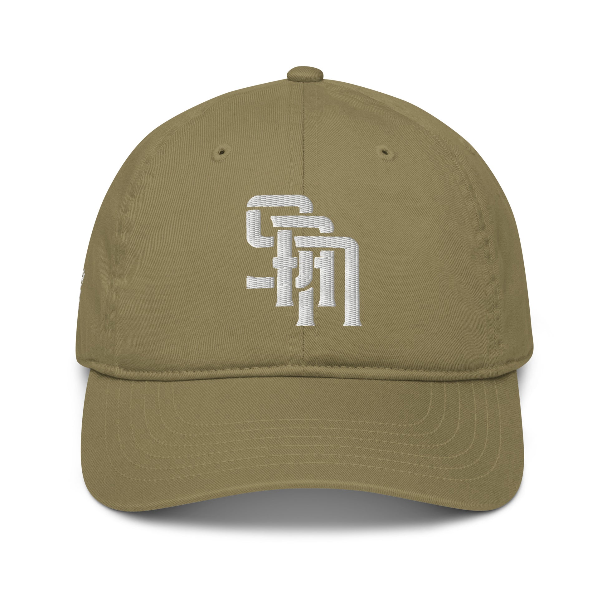 "SAN" Organic Baseball Cap | Econscious EC7000 | E Luna Brand PREMIUM Quadcrest 4 White Thread Logos: Front, Left, Right Signature & Back [3D Puff Edition]