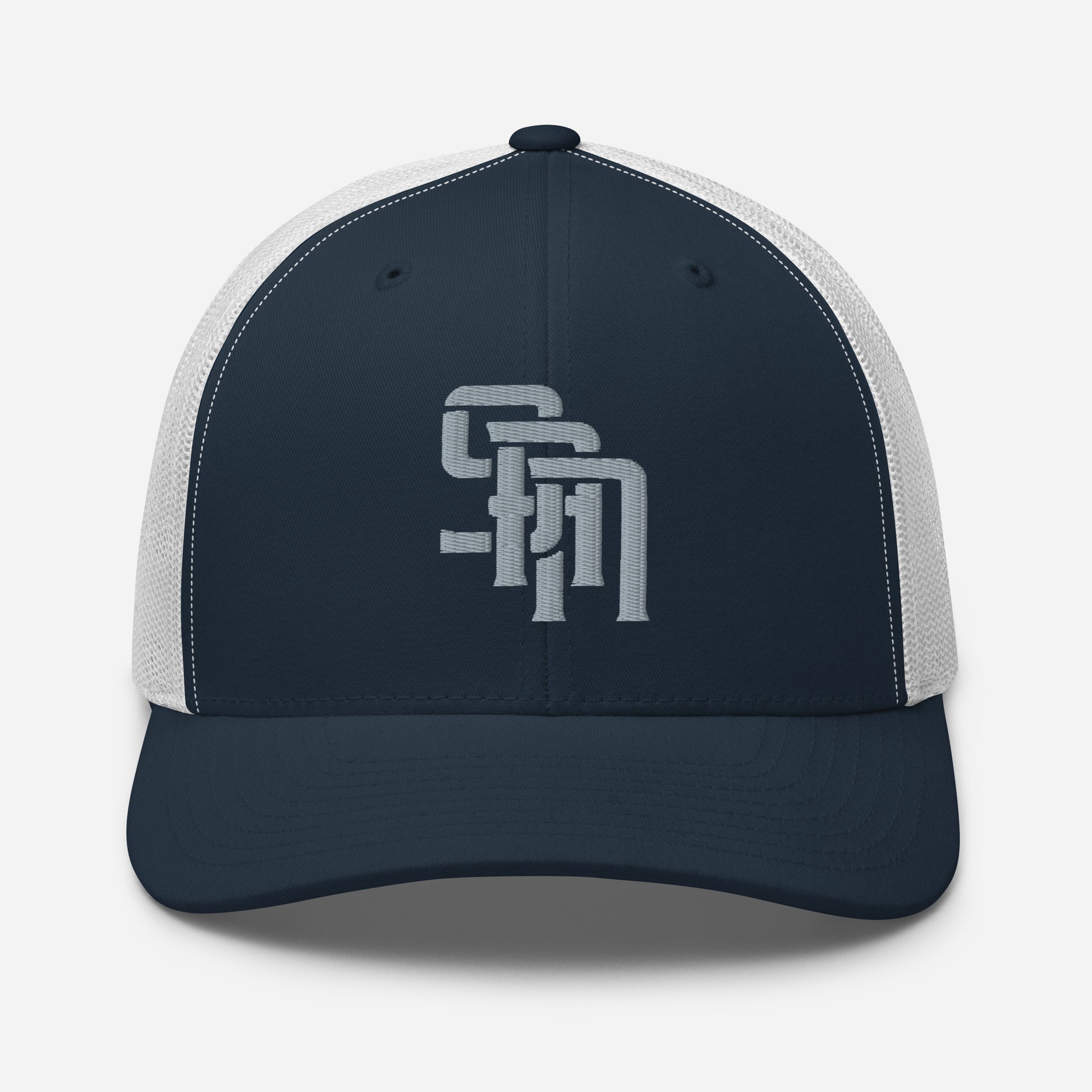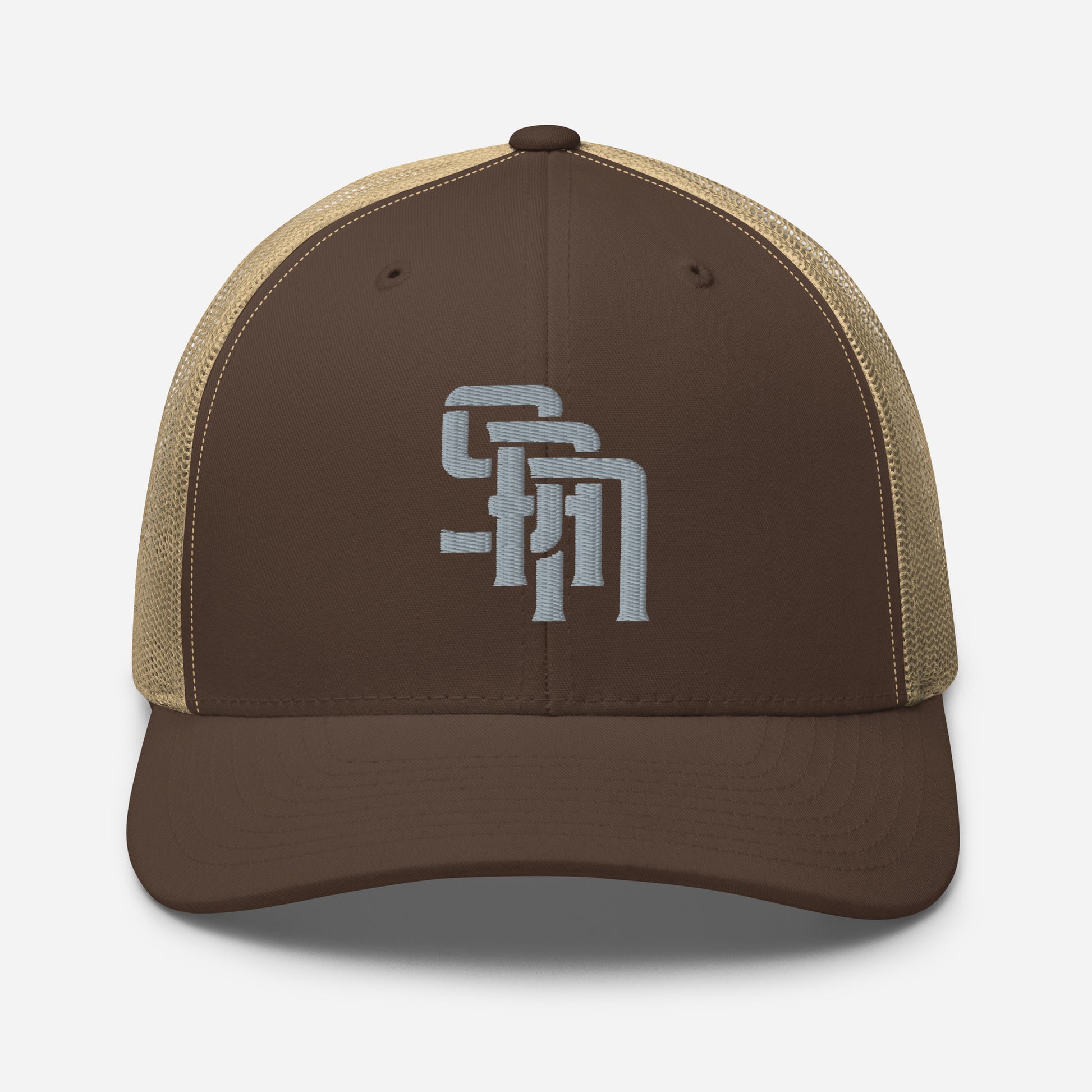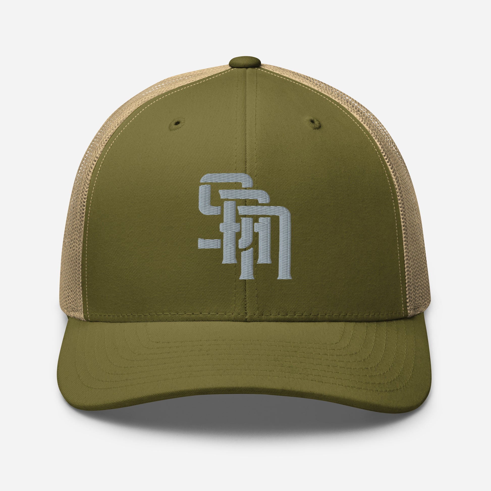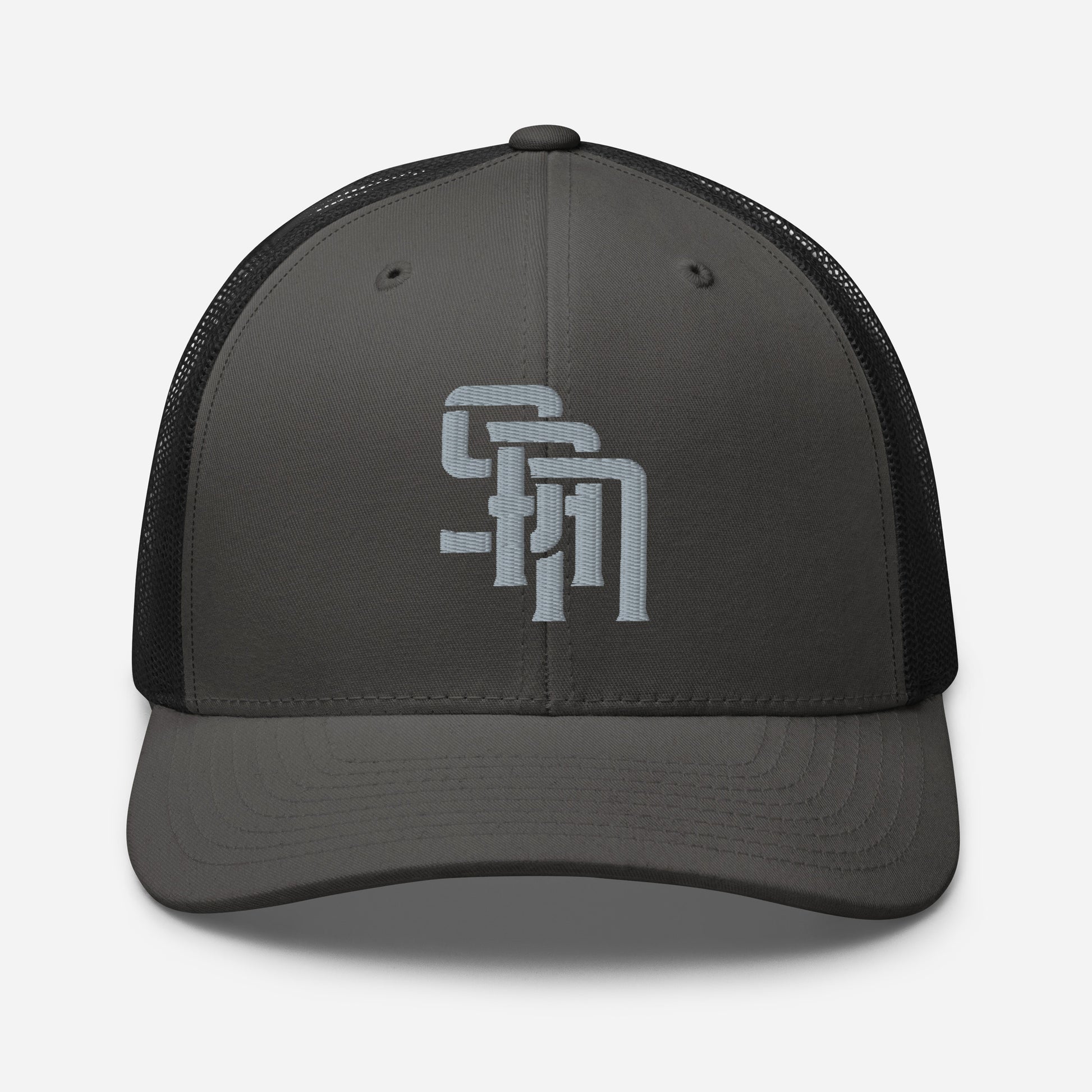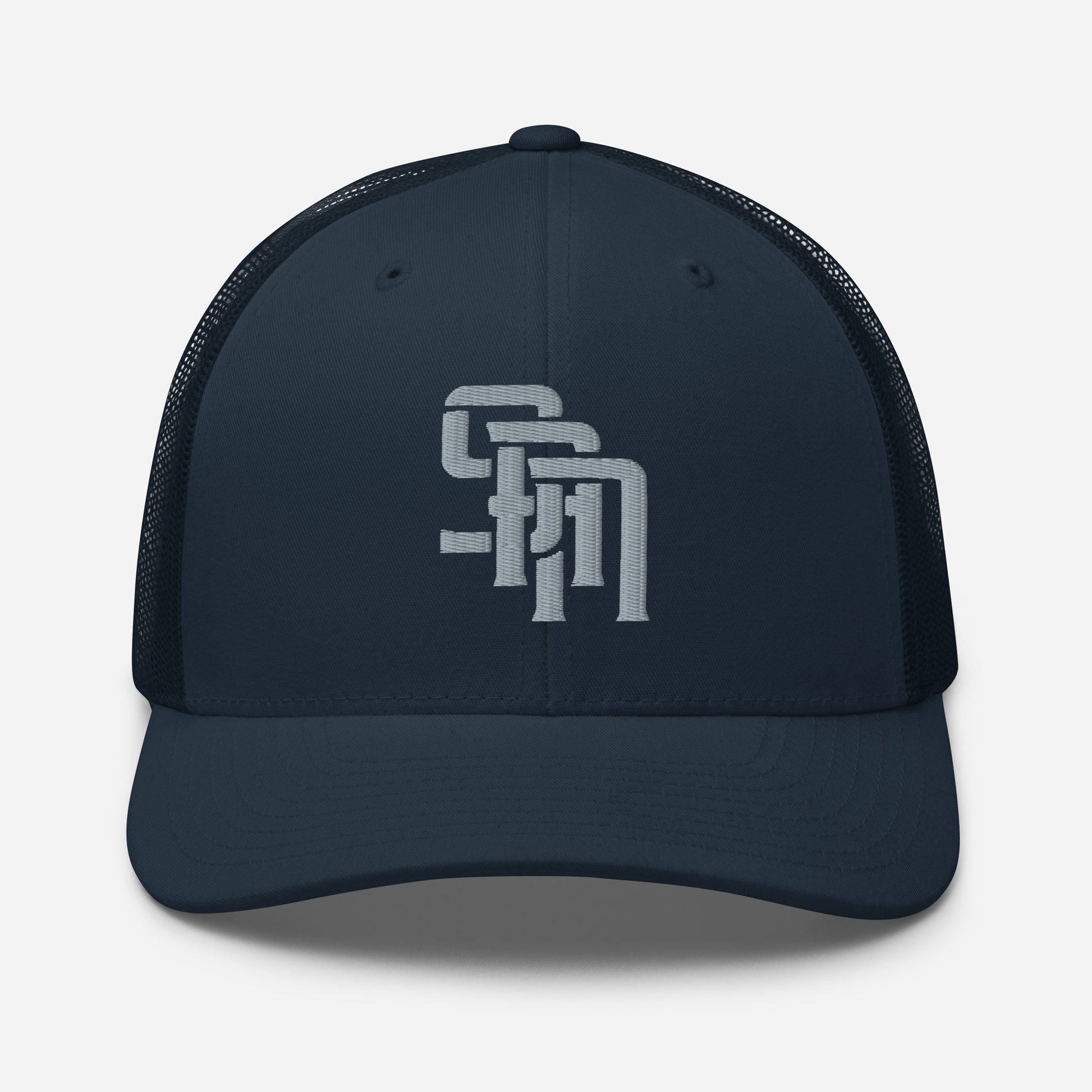 "SAN" Retro Trucker Hat | Yupoong 6606 | E Luna Brand CLASSIC Solocrest 1 Grey Thread Front Logo [3D Puff Edition]