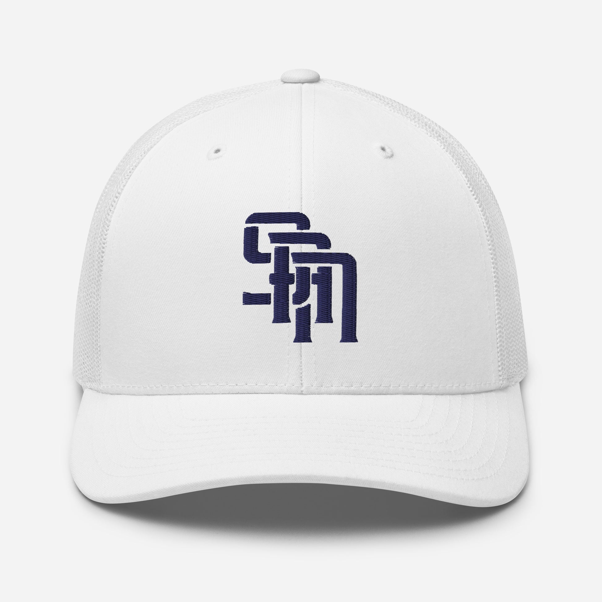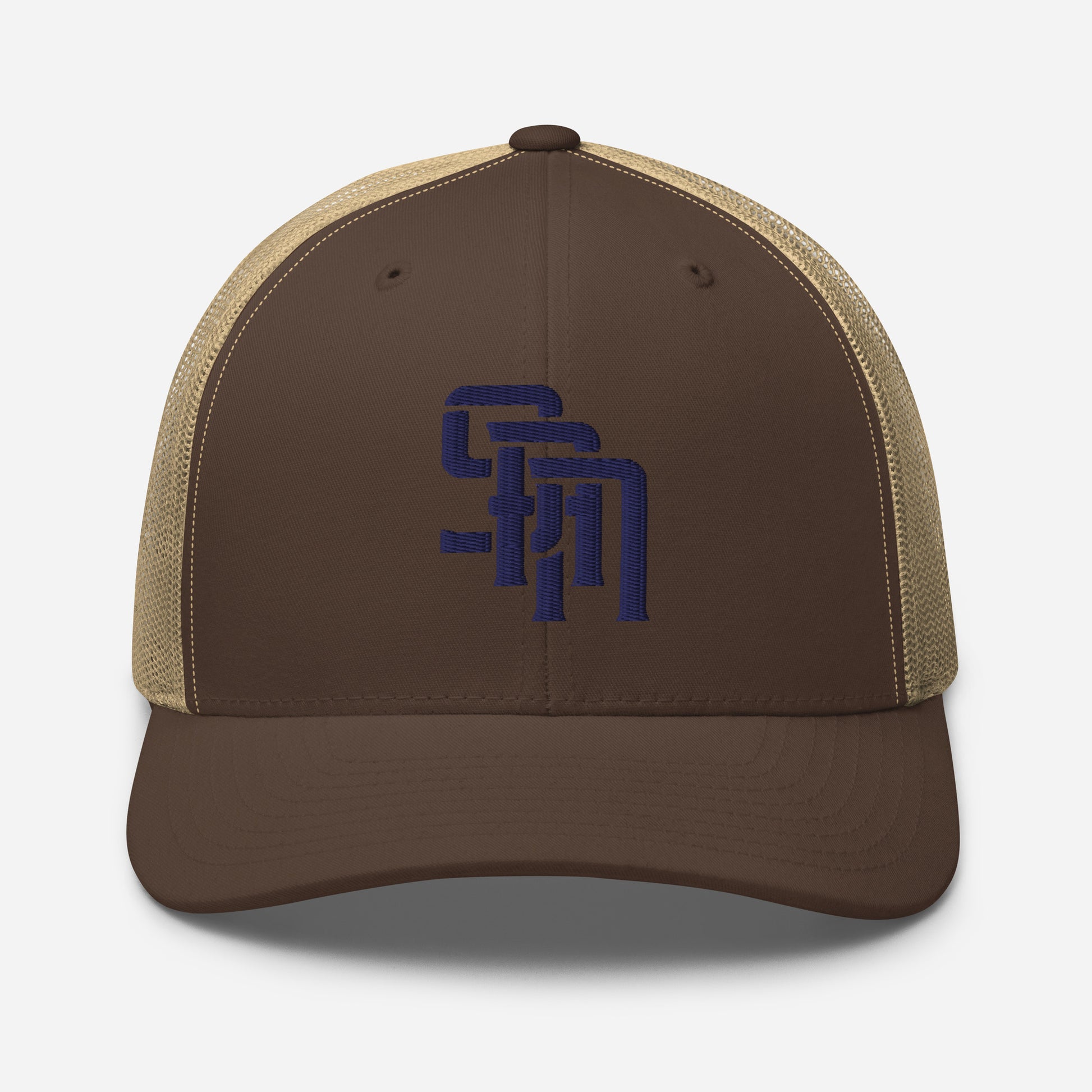 "SAN" Retro Trucker Hat | Yupoong 6606 | E Luna Brand CLASSIC Solocrest 1 Navy Thread Front Logo [3D Puff Edition]