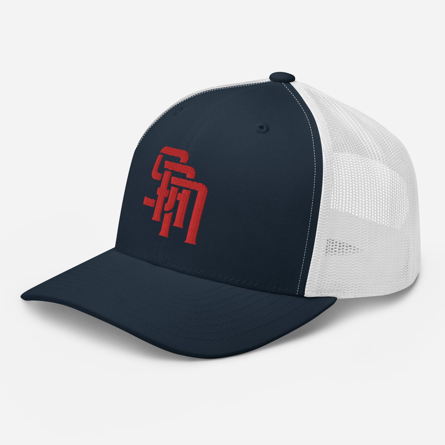 "SAN" Retro Trucker Hat | Yupoong 6606 | E Luna Brand CLASSIC Solocrest 1 Red Thread Front Logo [3D Puff Edition]
