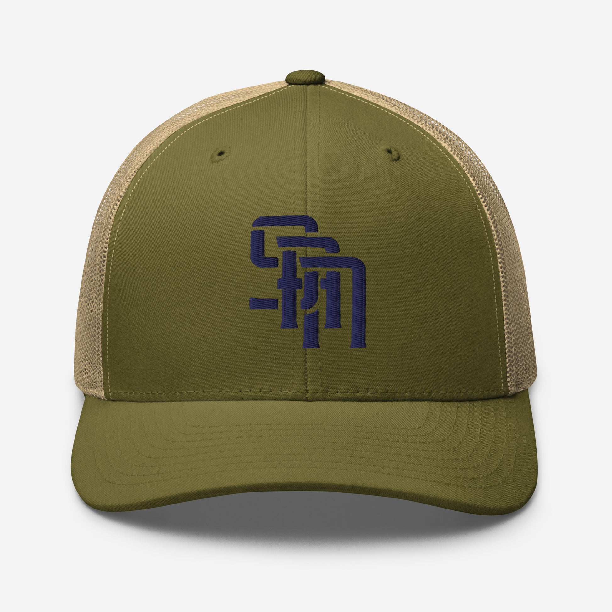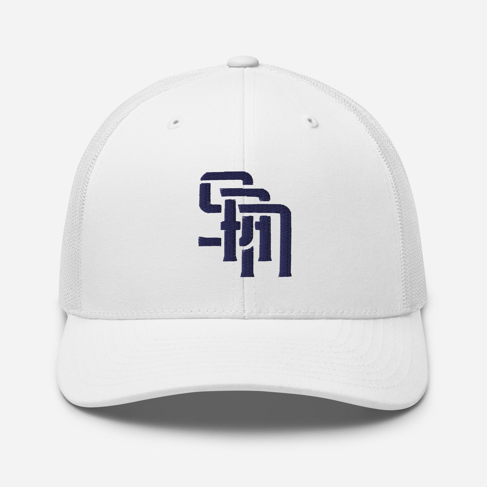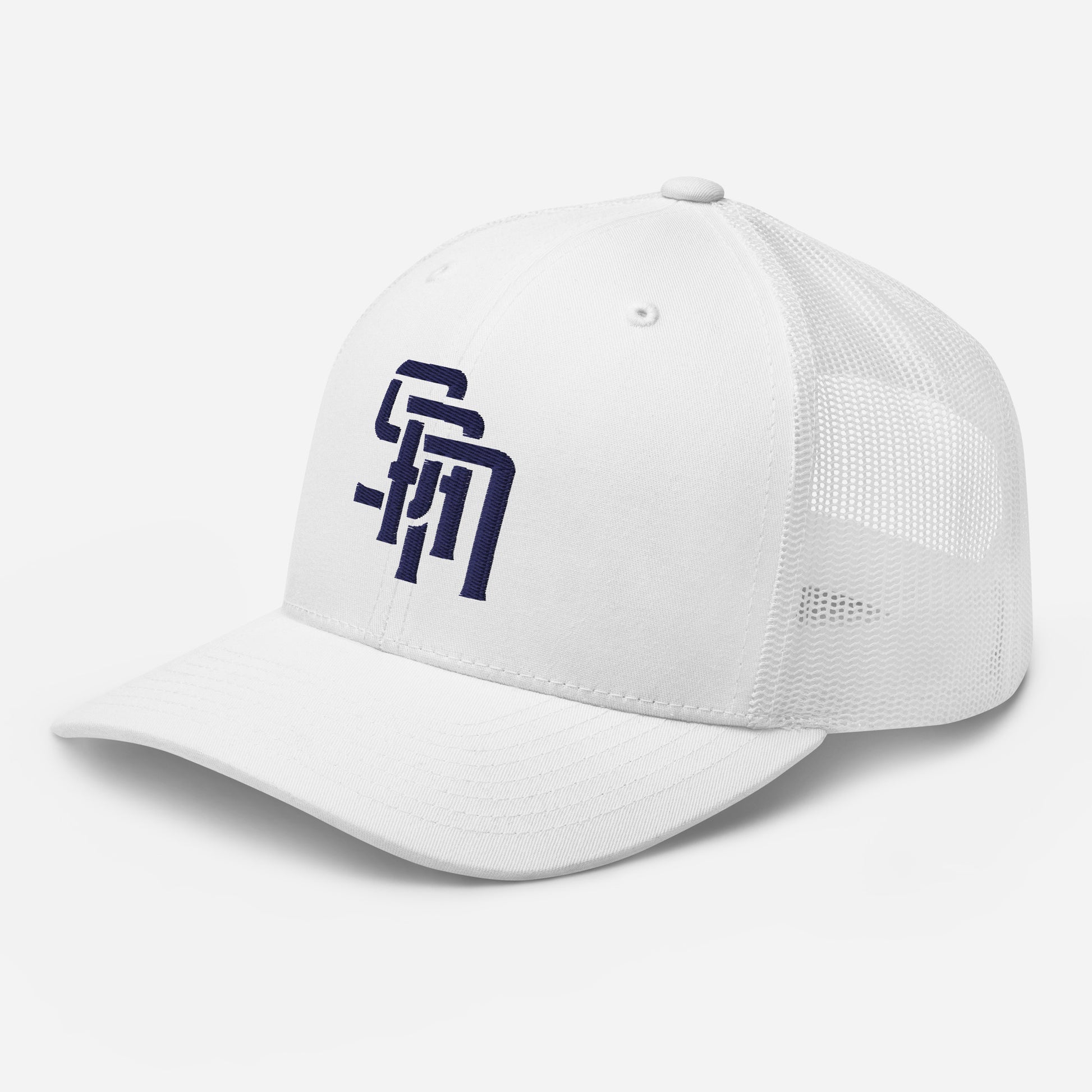 "SAN" Retro Trucker Hat | Yupoong 6606 | E Luna Brand CLASSIC Solocrest 1 Navy Thread Front Logo