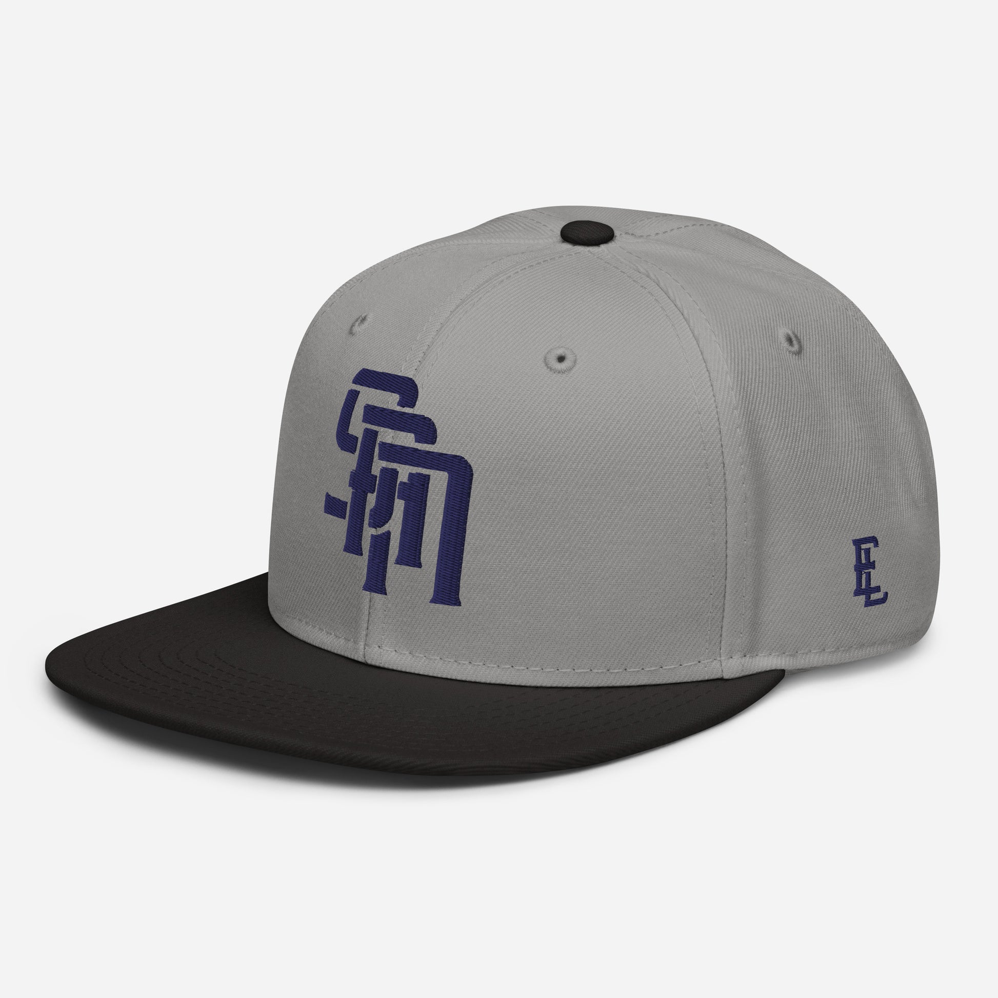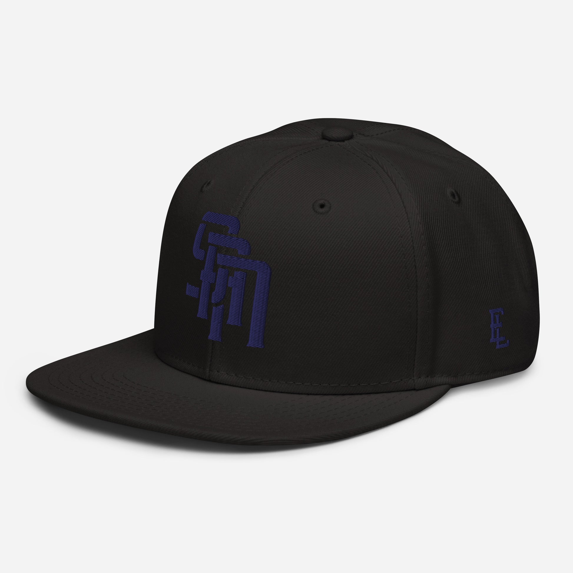 "SAN" Snapback | Otto Cap 125-978 | E Luna Brand SELECT Tricrest 3 Navy Thread Logos: Front, Left & Back [3D Puff Edition]