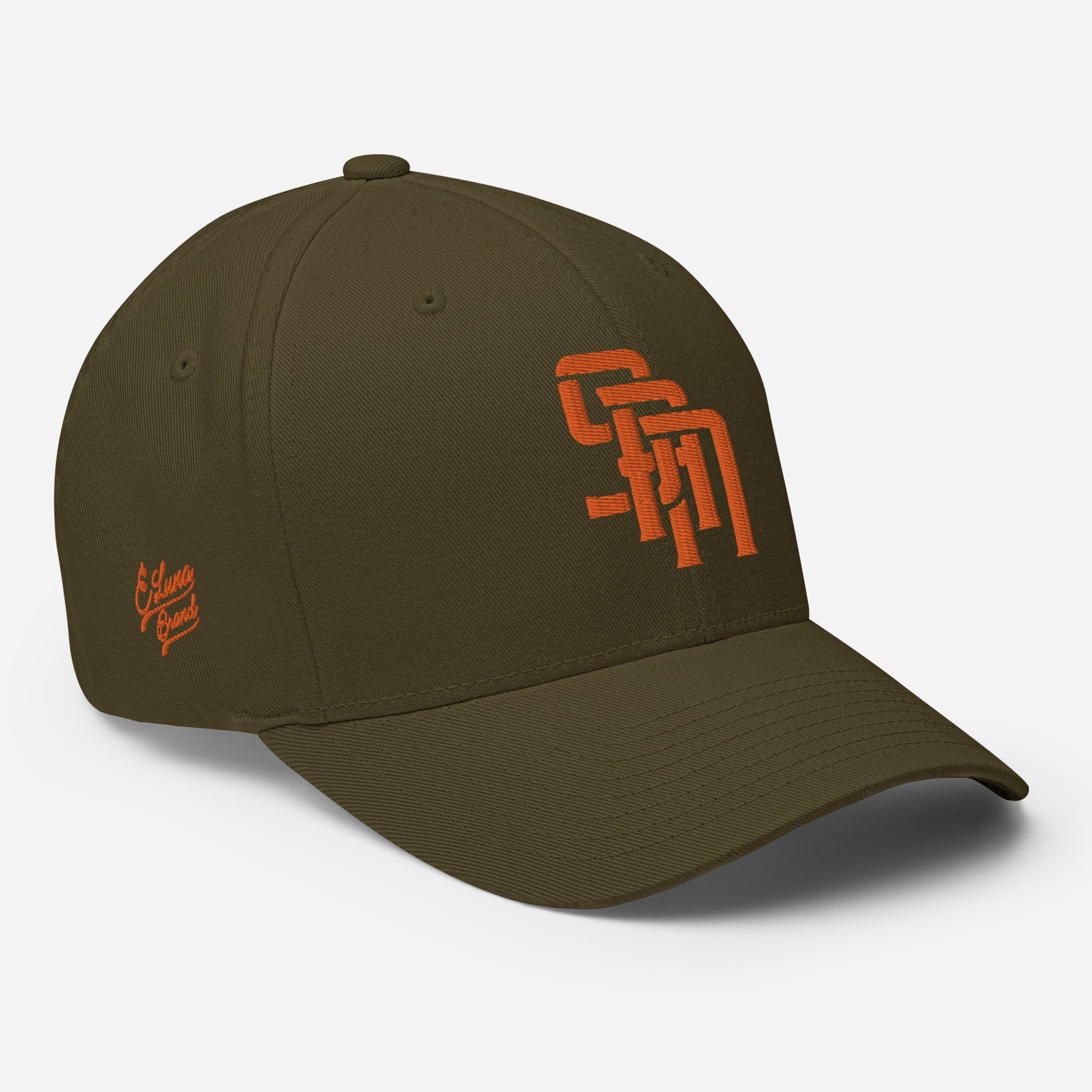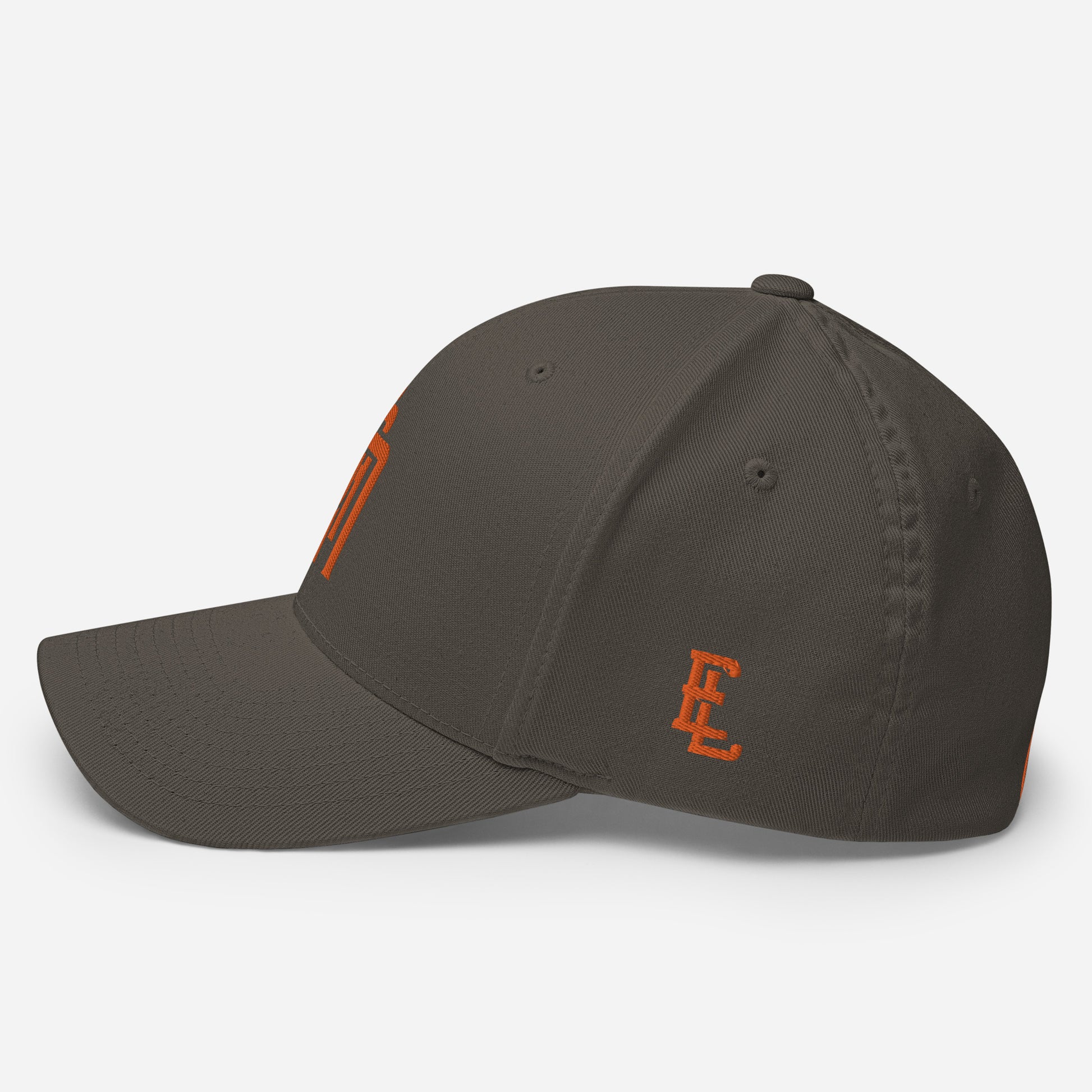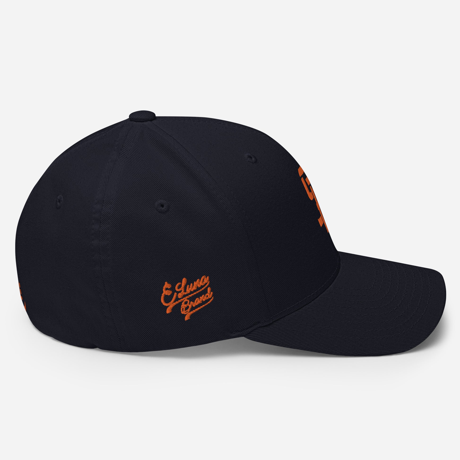 "SAN" Structured Twill Cap | Flexfit 6277 | E Luna Brand PREMIUM Quadcrest 4 Orange Thread Logos: Front, Left, Right Signature & Back [3D Puff Edition]