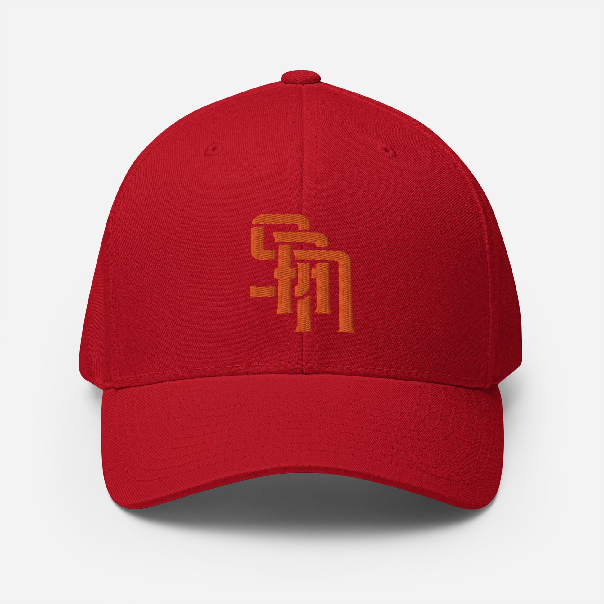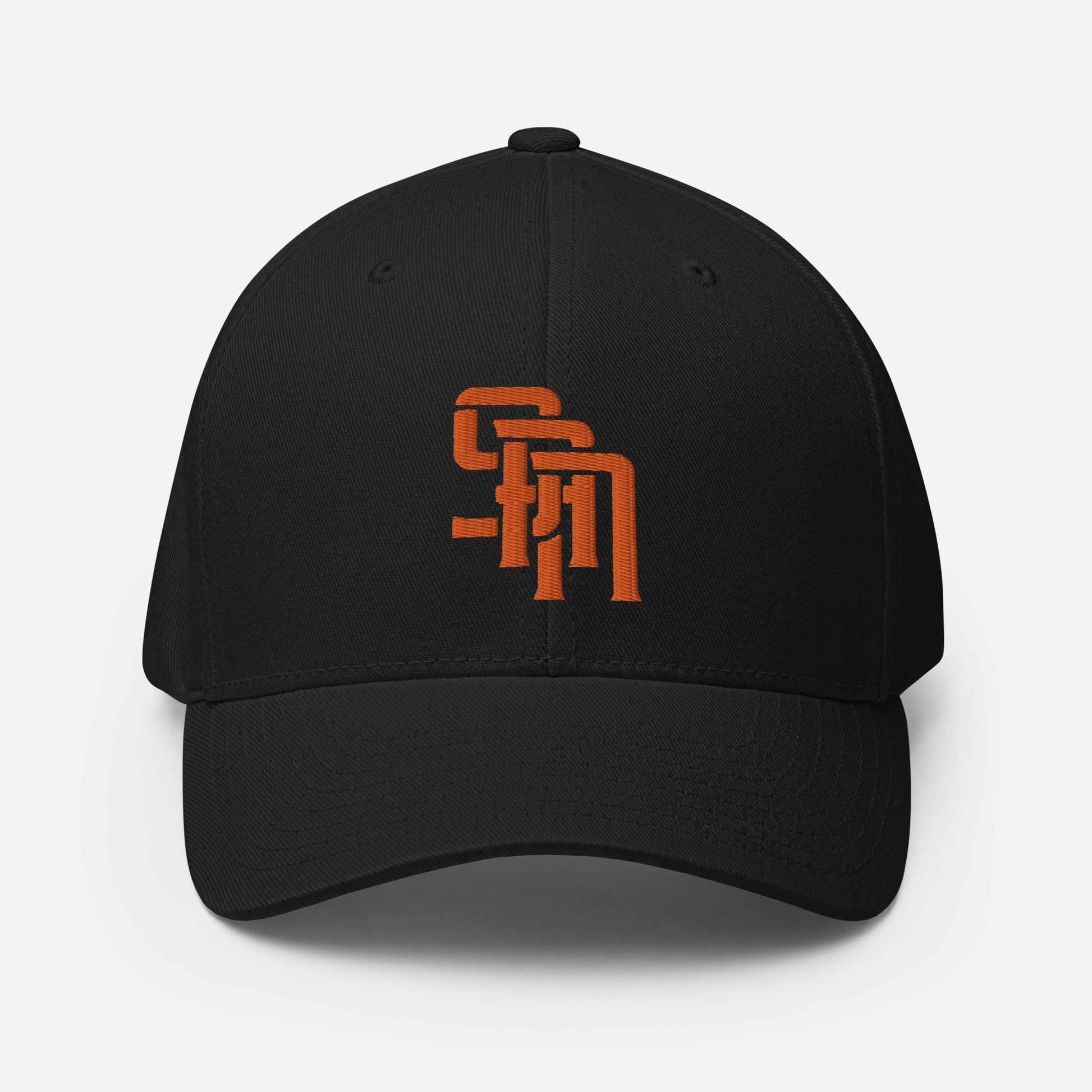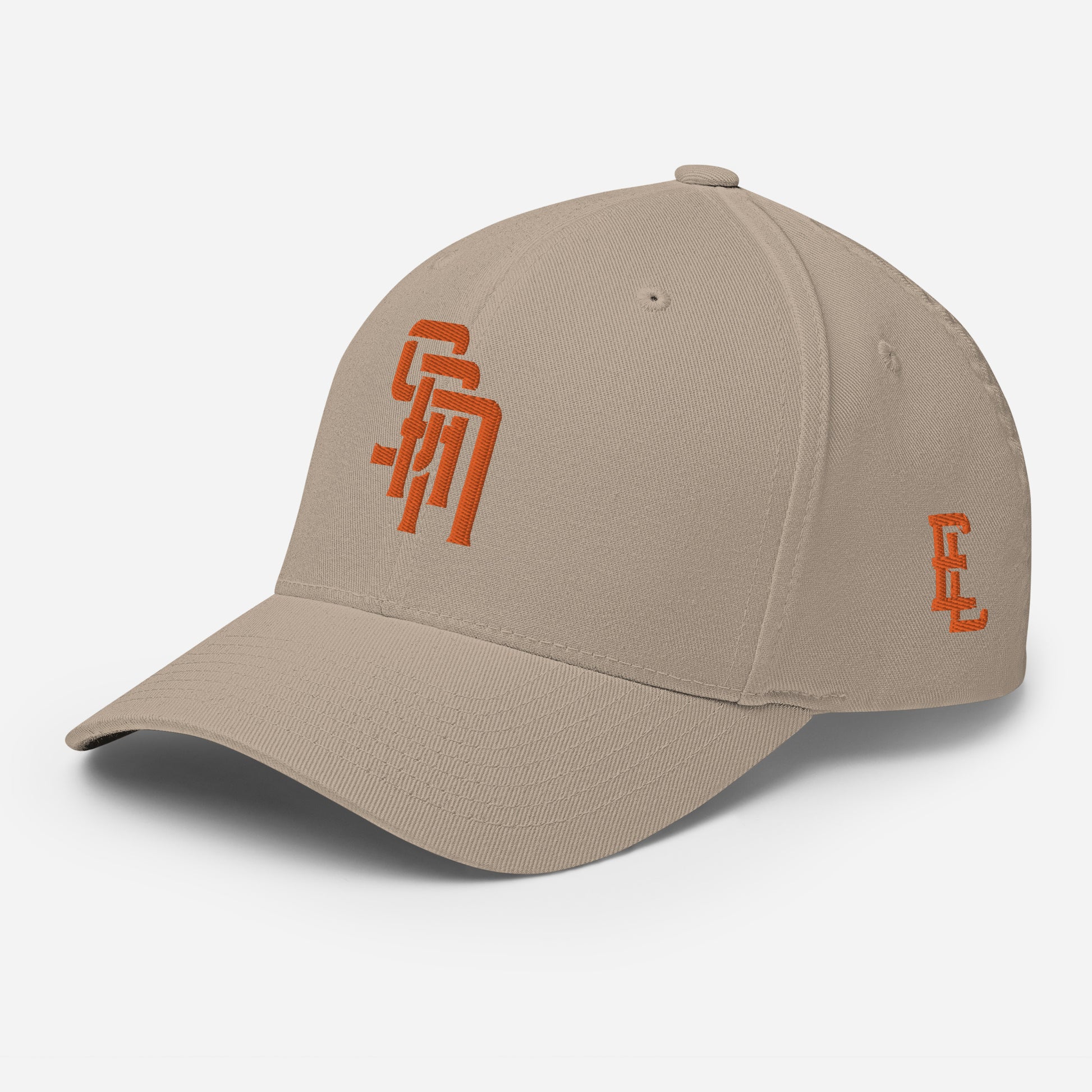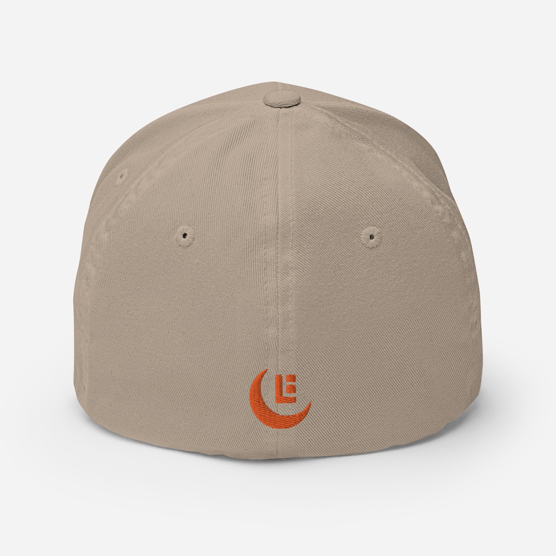 "SAN" Structured Twill Cap | Flexfit 6277 | E Luna Brand PREMIUM Quadcrest 4 Orange Thread Logos: Front, Left, Right Signature & Back [3D Puff Edition]
