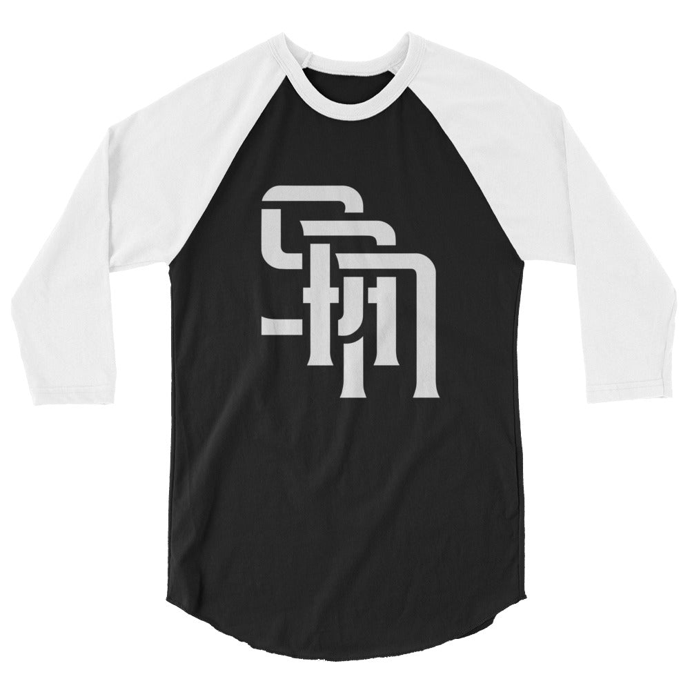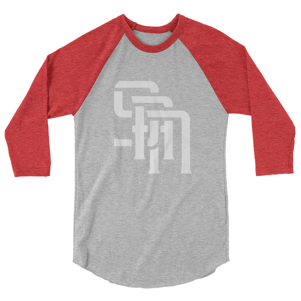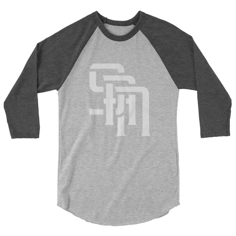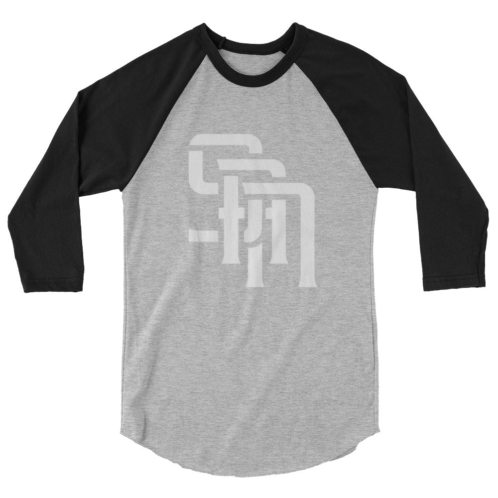 "SAN" Unisex 3/4 Sleeve Raglan Shirt | E Luna Brand CHOICE | 2 White Logos: Front (Large) & Outside Back Label