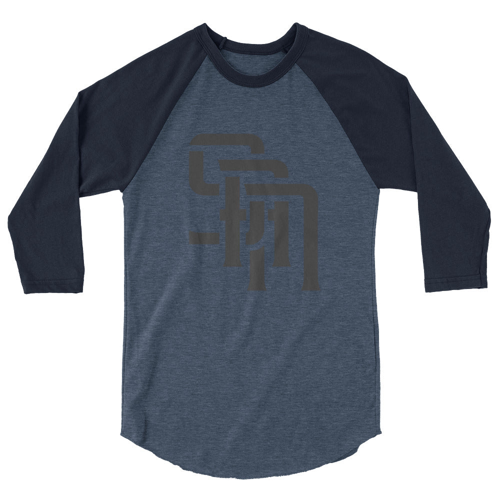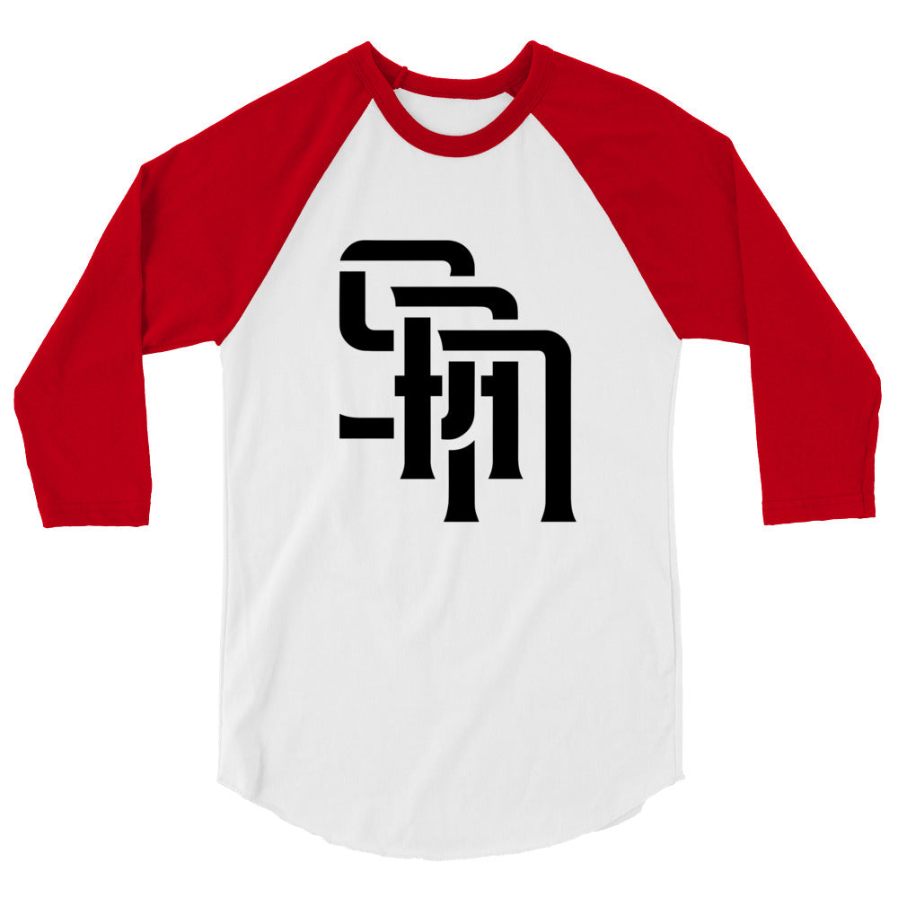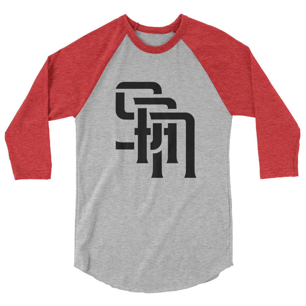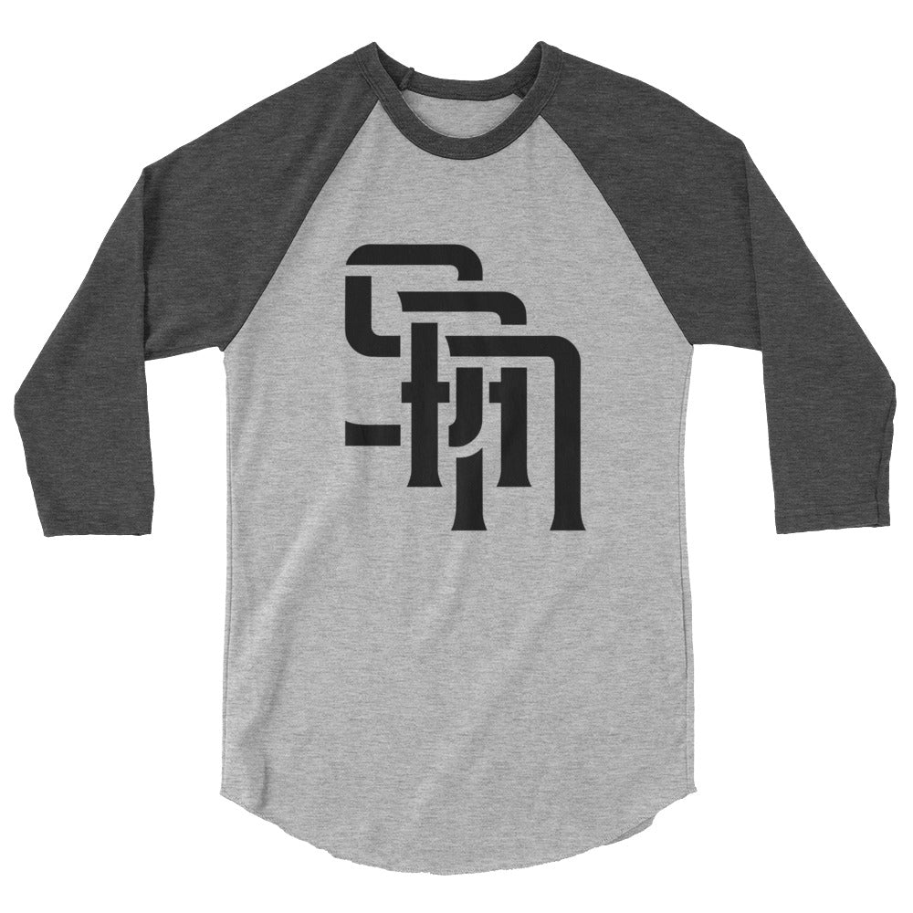 "SAN" Unisex 3/4 Sleeve Raglan Shirt | E Luna Brand CHOICE | 2 Black Logos: Front (Large) & Outside Back Label