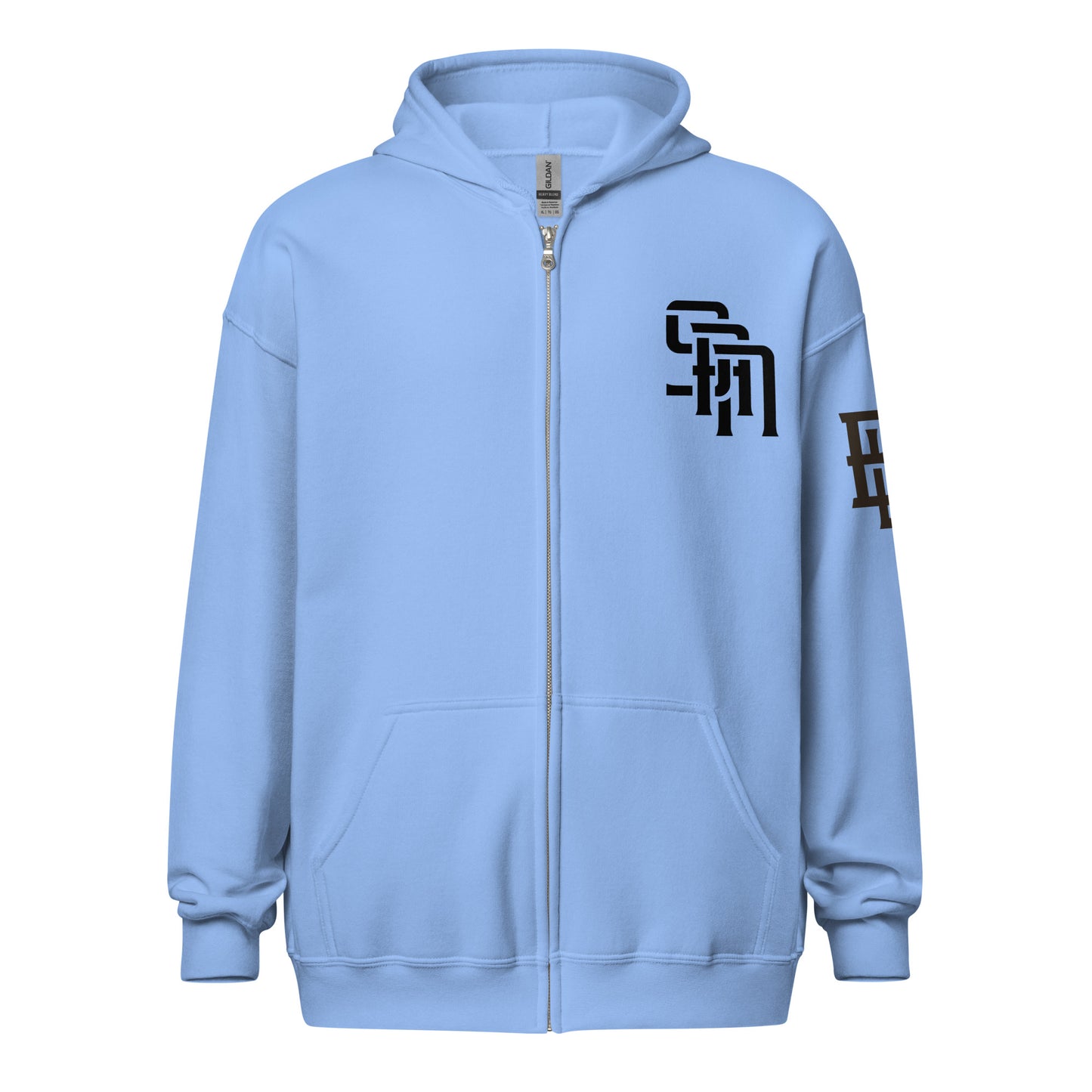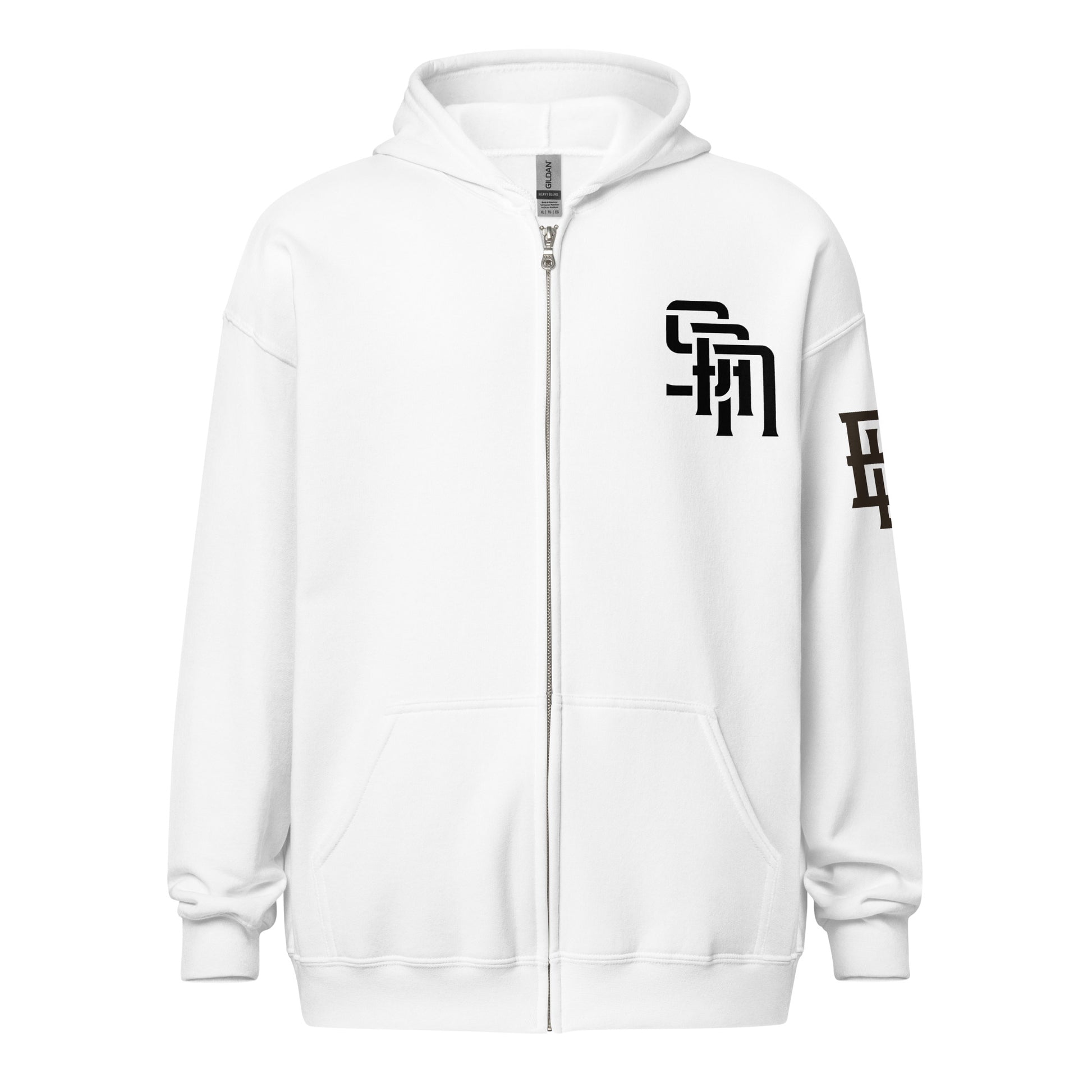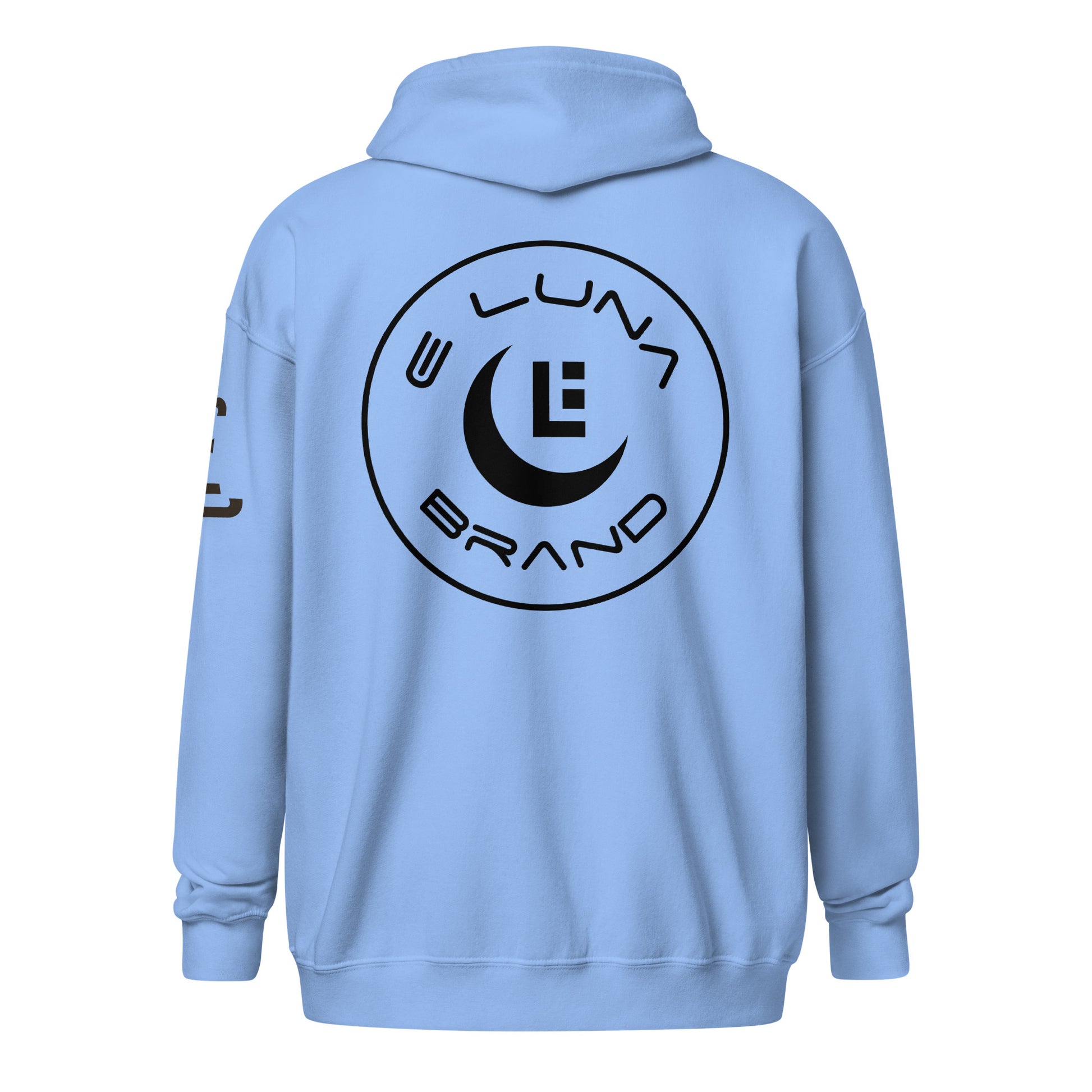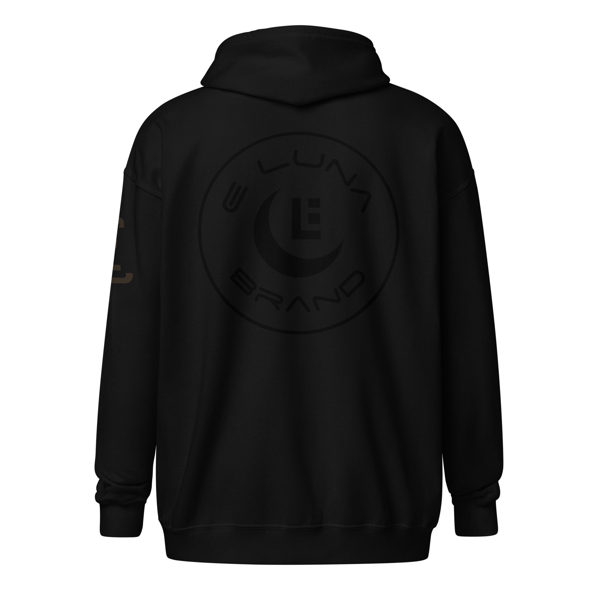 "SAN" Unisex Heavy Blend Zip Hoodie | E Luna Brand ELEMENT | 3 Black Logos: Front Left, Left Sleeve & Back