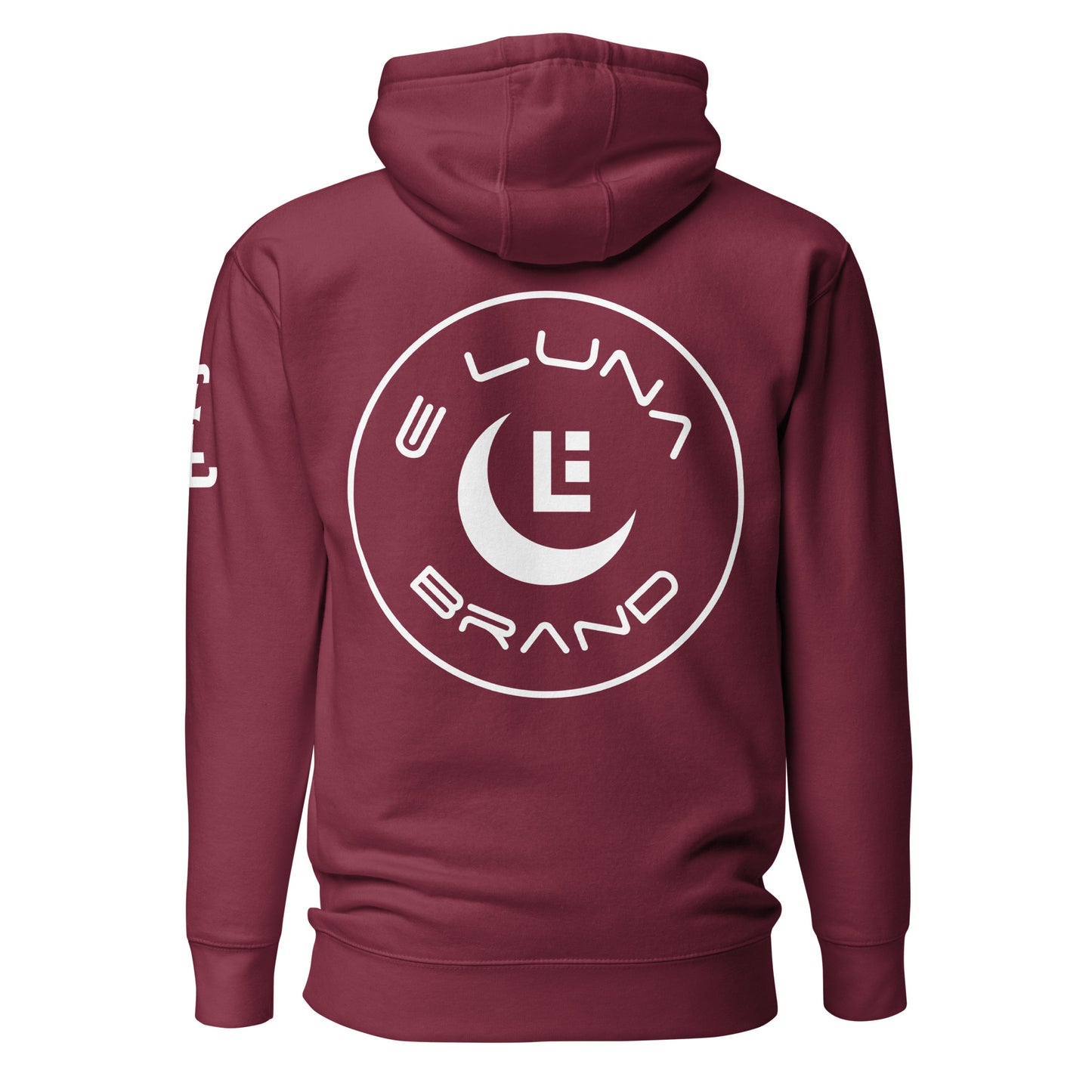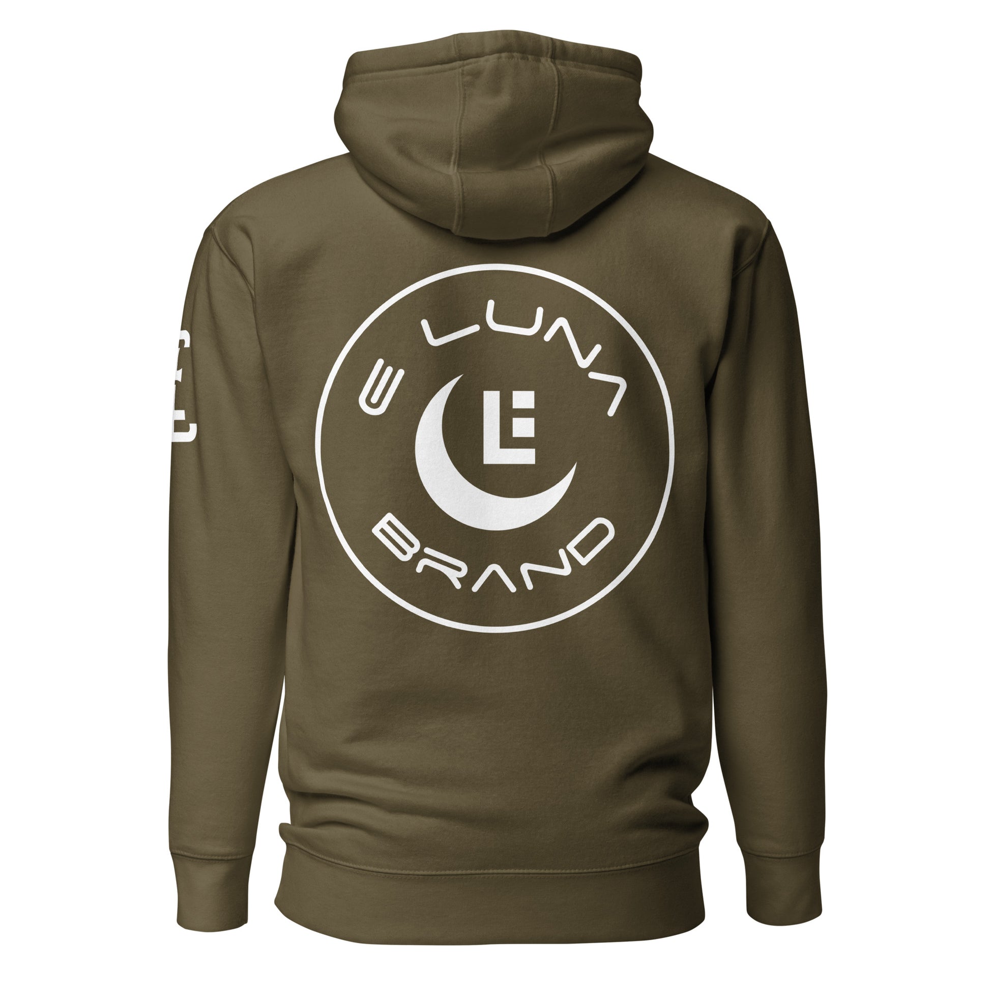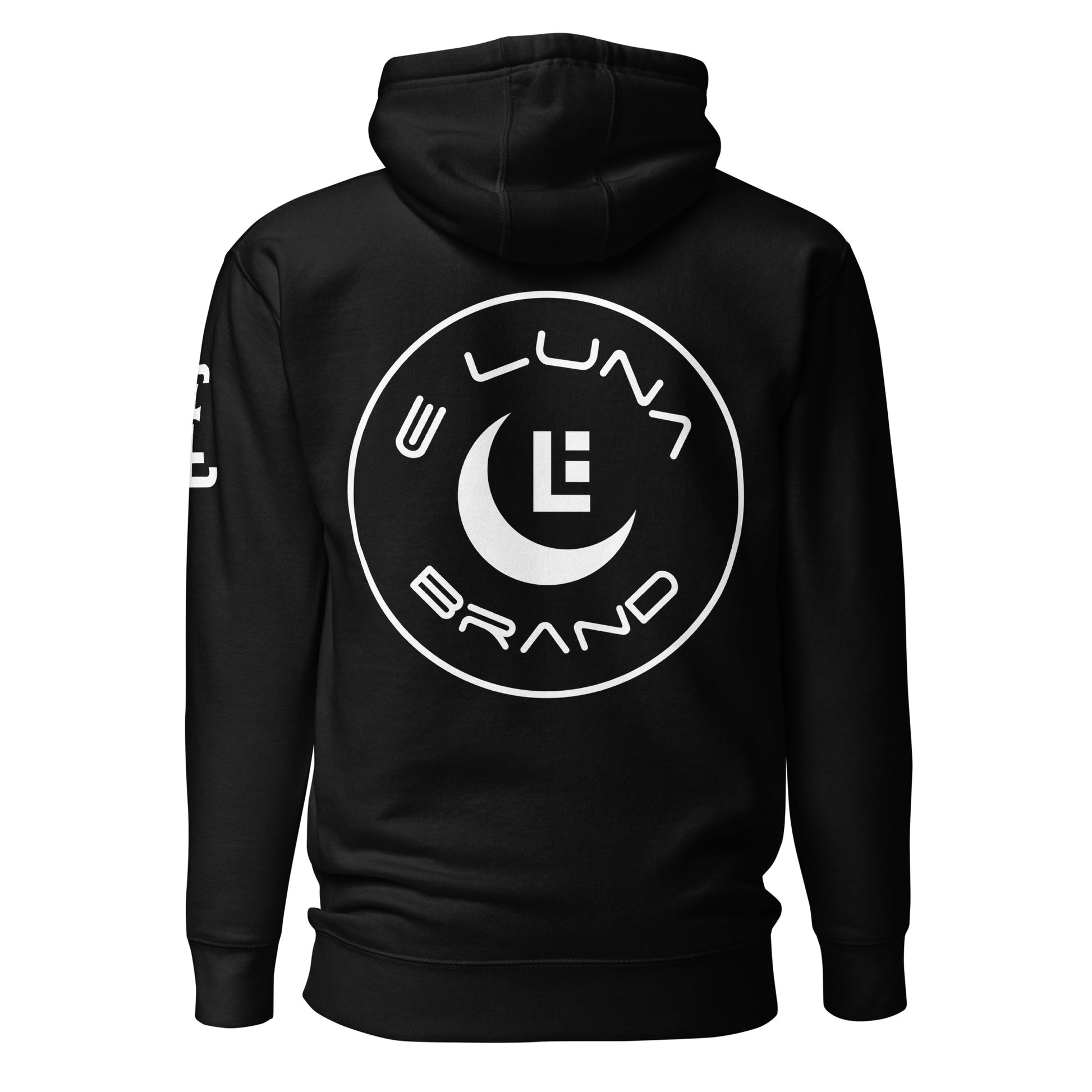 "DGO" Unisex Premium Hoodie | Cotton Heritage M2580 | E Luna Brand ELEMENT Tricrest 3 White Logos: Front Center (Large), Left Arm & Back (Large)