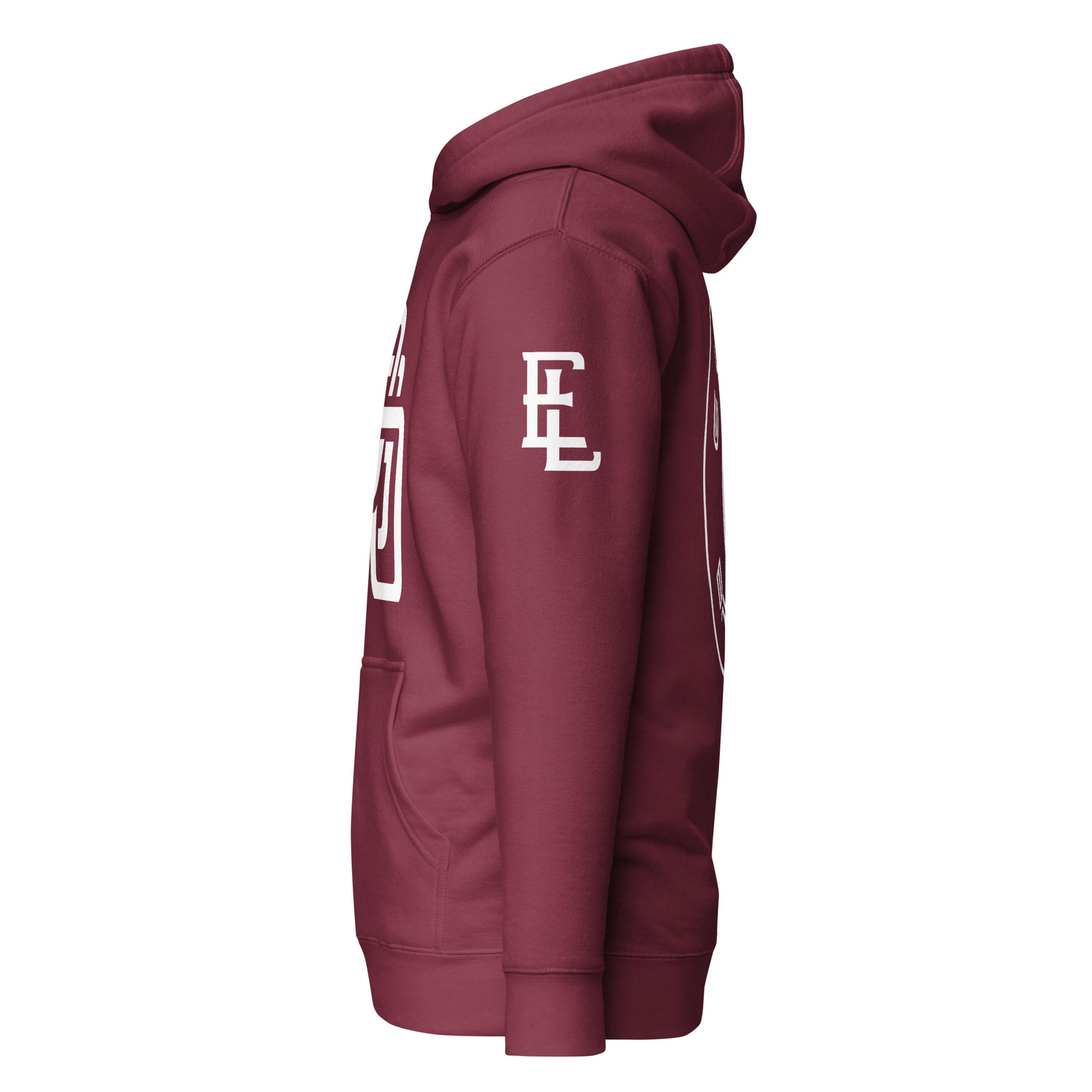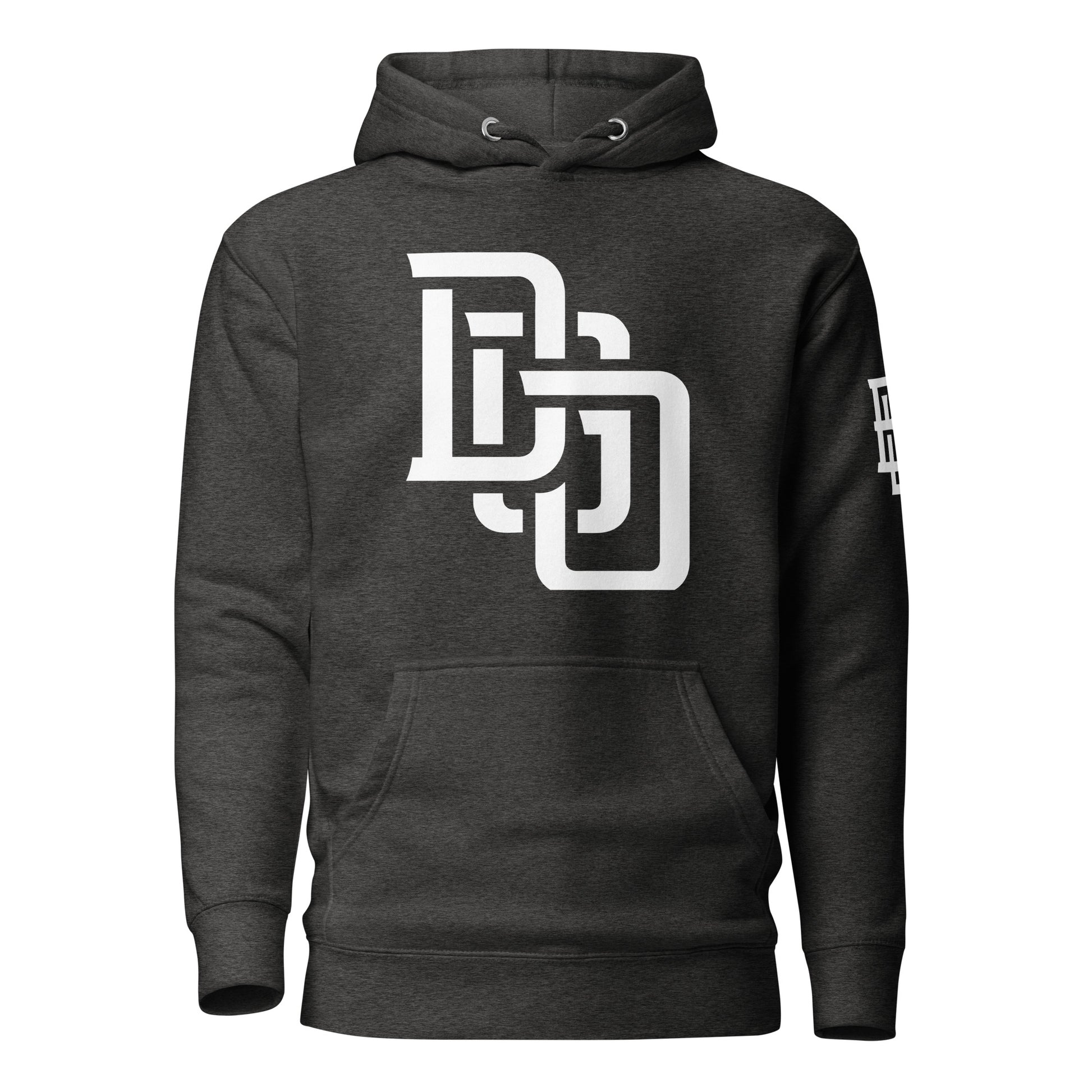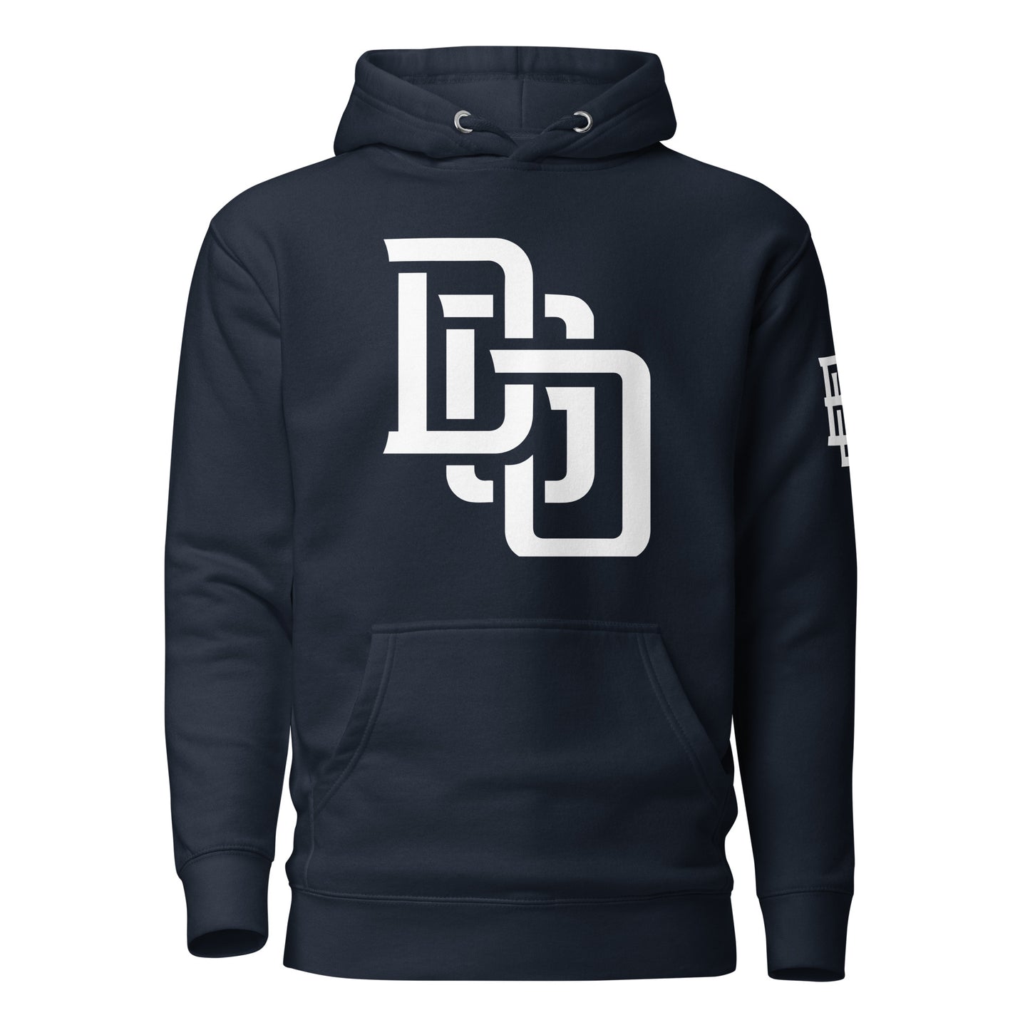 "DGO" Unisex Premium Hoodie | Cotton Heritage M2580 | E Luna Brand ELEMENT Tricrest 3 White Logos: Front Center (Large), Left Arm & Back (Large)