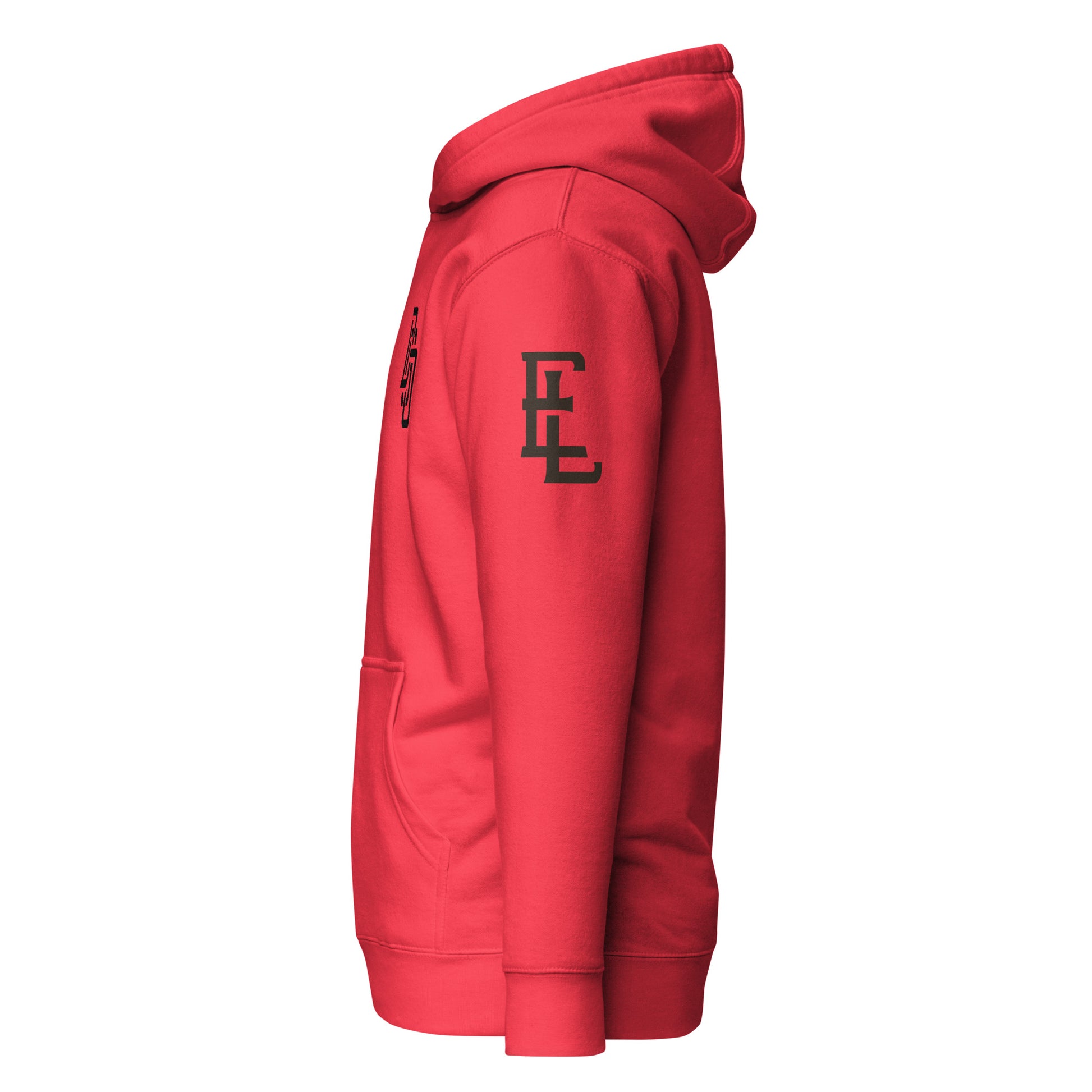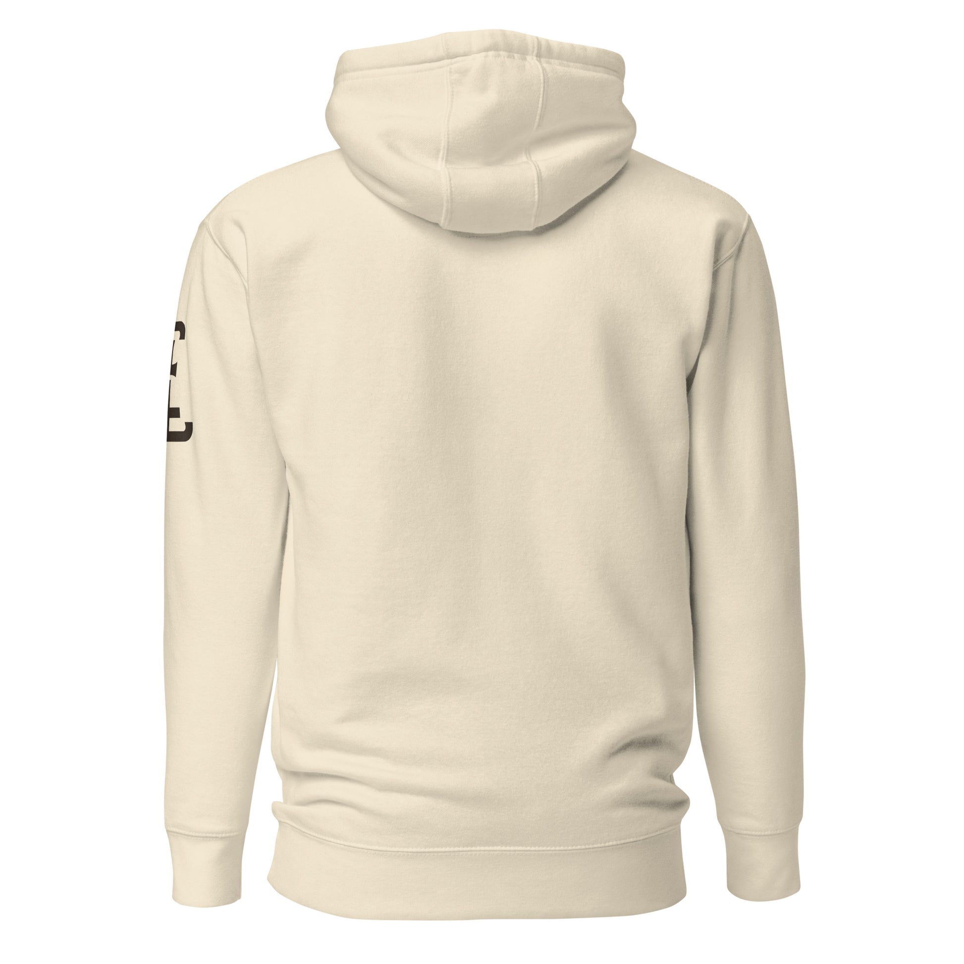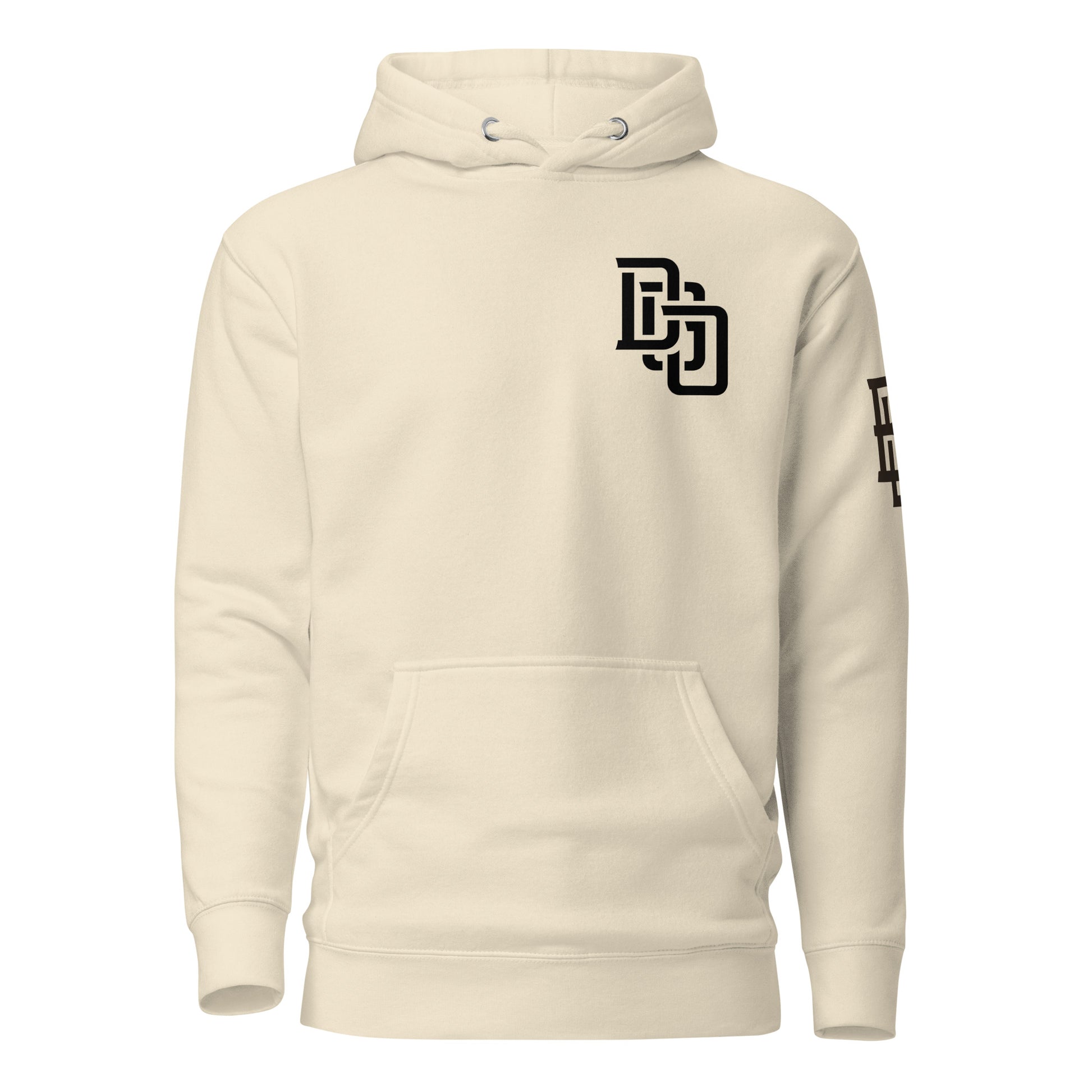"DGO" Unisex Premium Hoodie | Cotton Heritage M2580 | E Luna Brand ESSENCE Tricrest 3 Black Logos: Front Upper Left, Left Arm & Outside Back Label