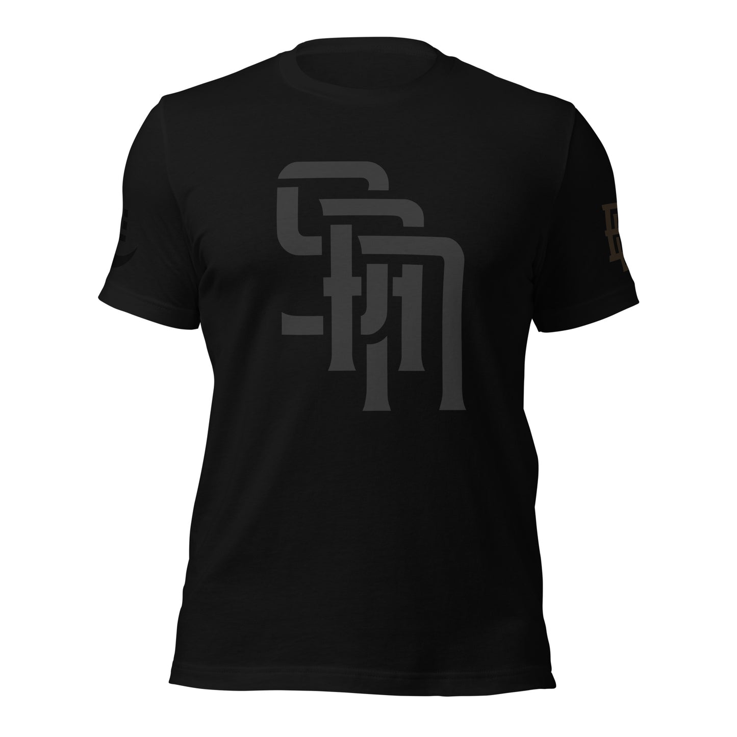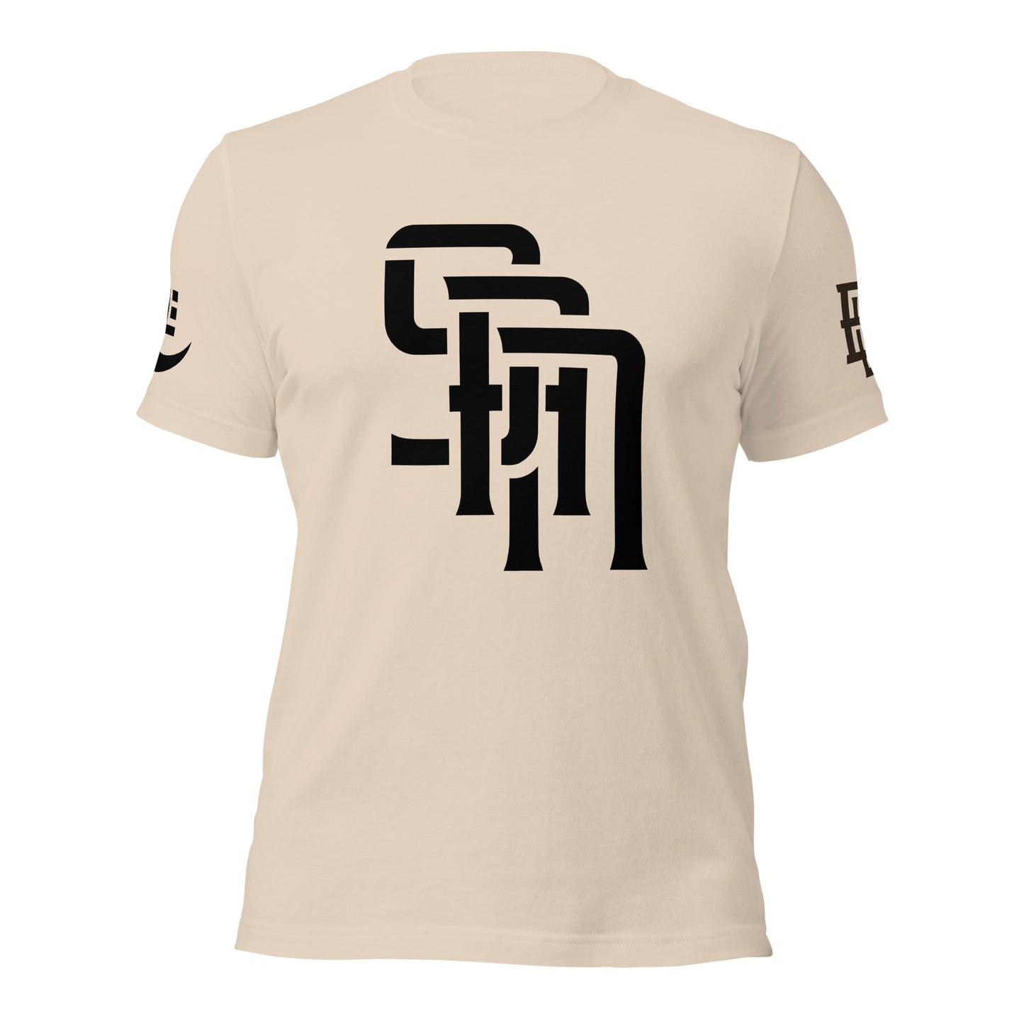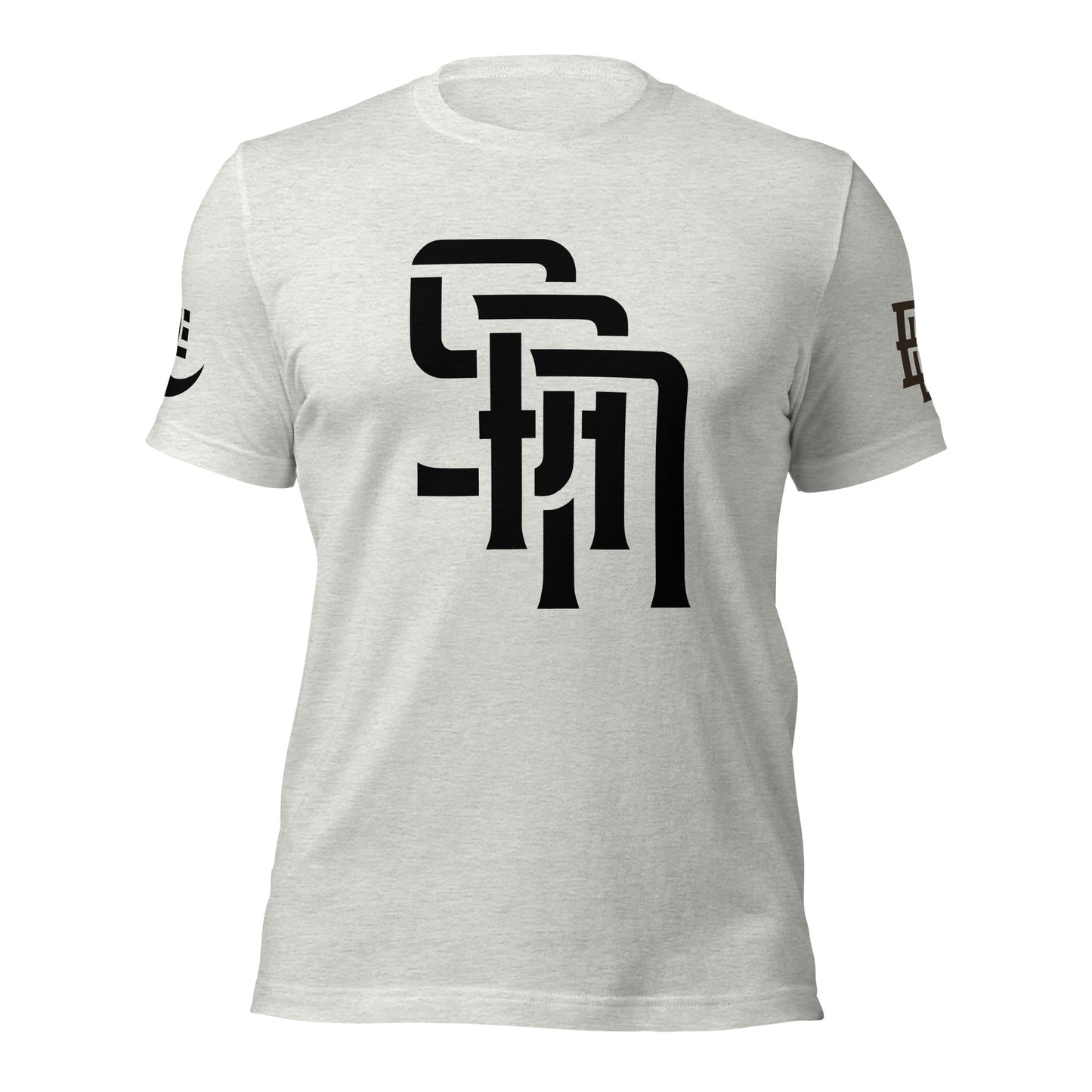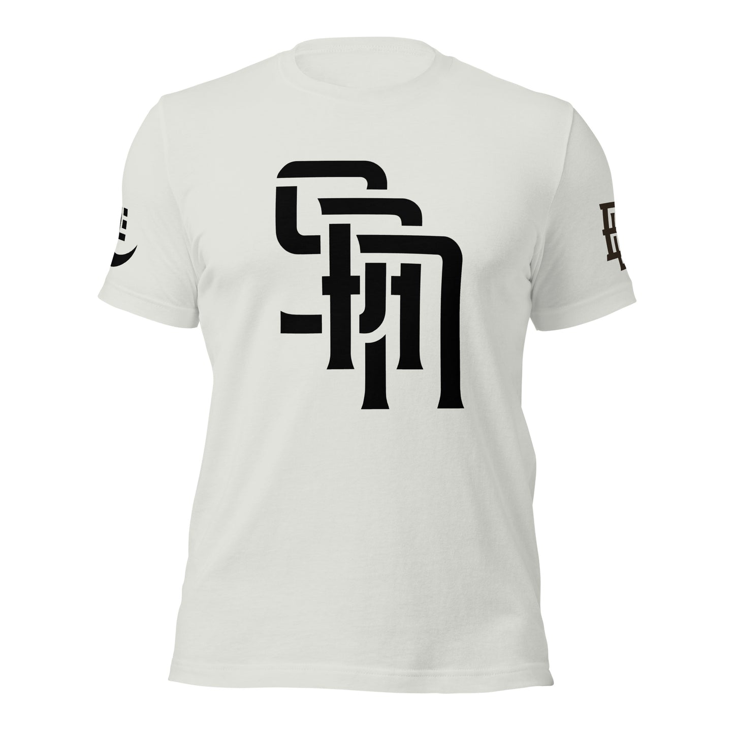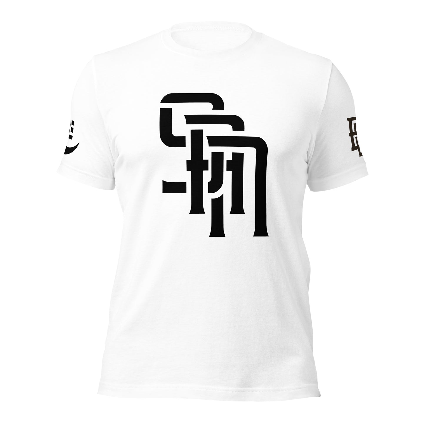 "SAN" Unisex Staple T-Shirt | E Luna Brand EXCLUSIVE | 4 White Logos: Front, Left/Right Sleeves & Back Signature