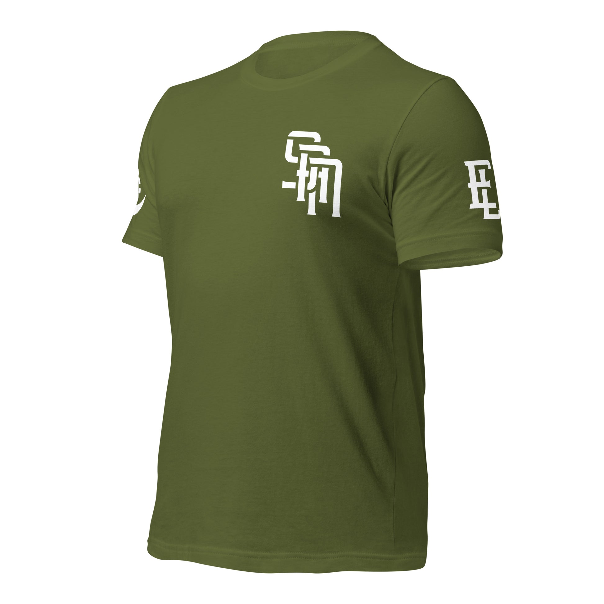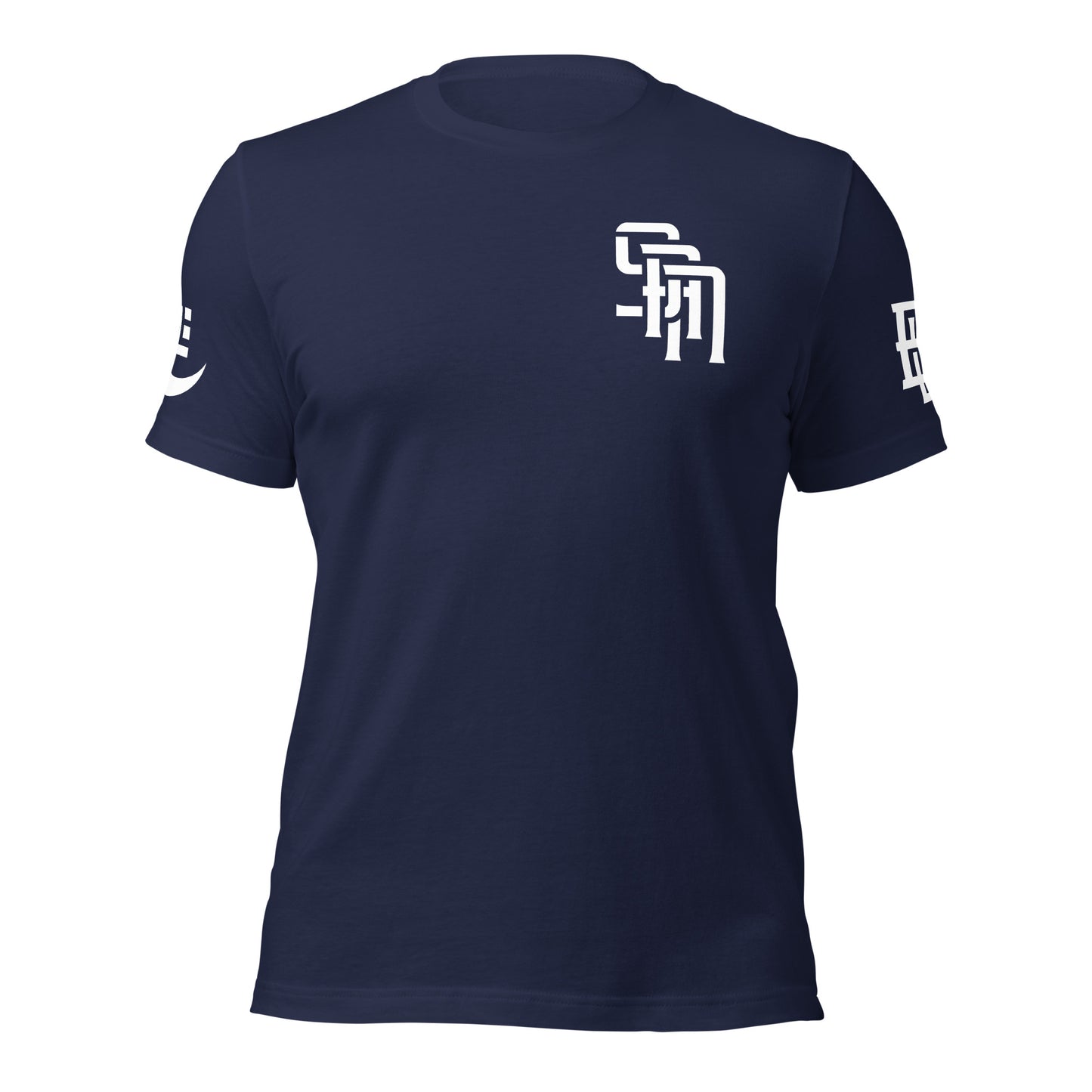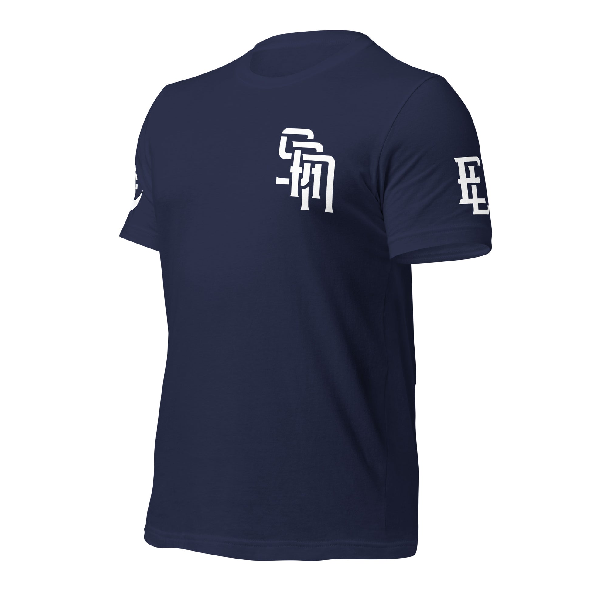 "SAN" Unisex Staple T-Shirt | E Luna Brand EXCLUSIVE | 4 White Logos: Front Left, Left/Right Sleeves & Back Signature