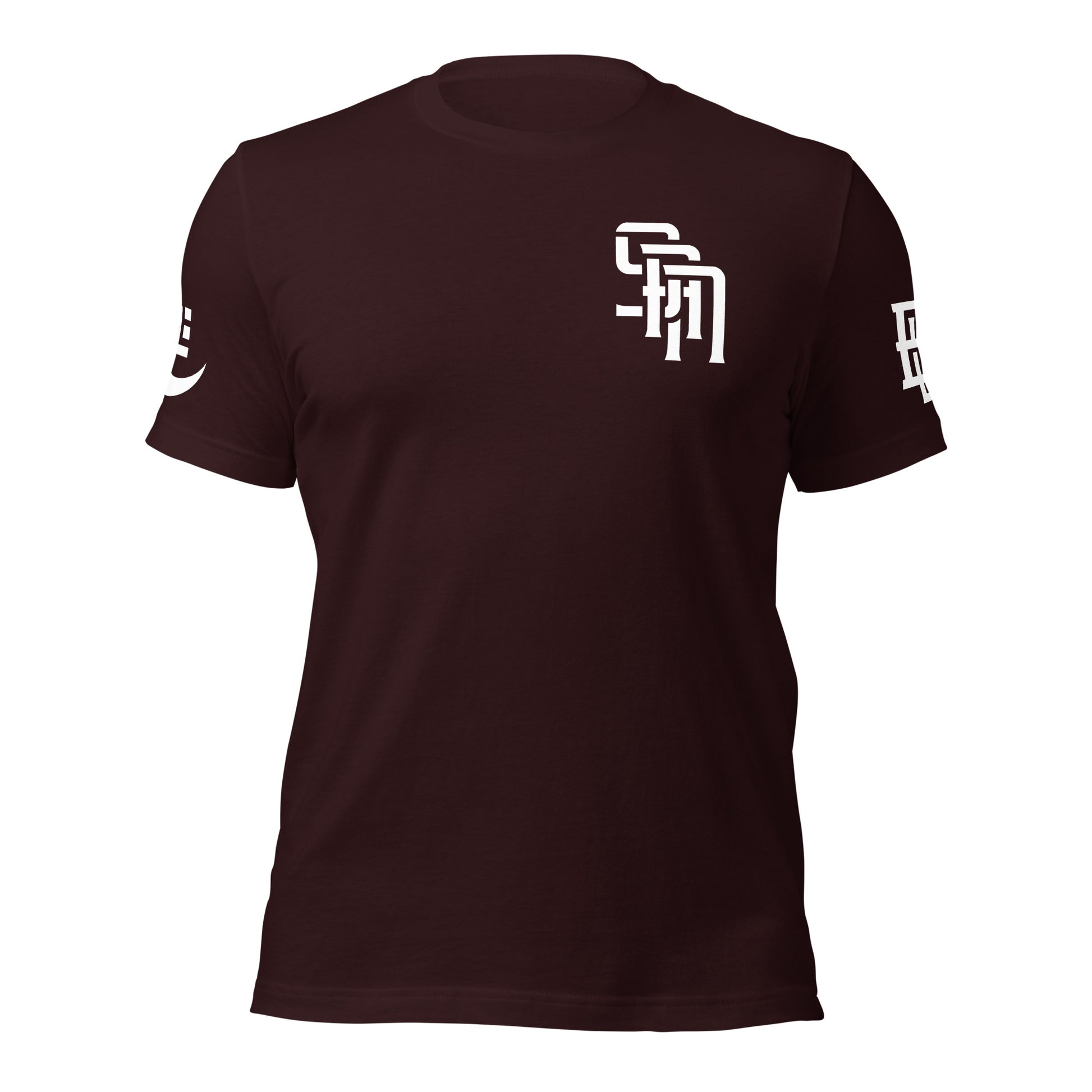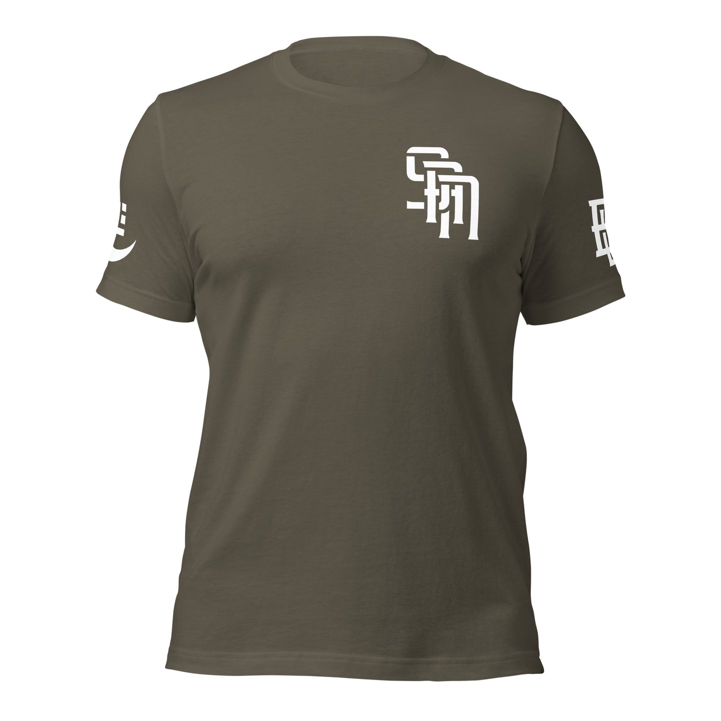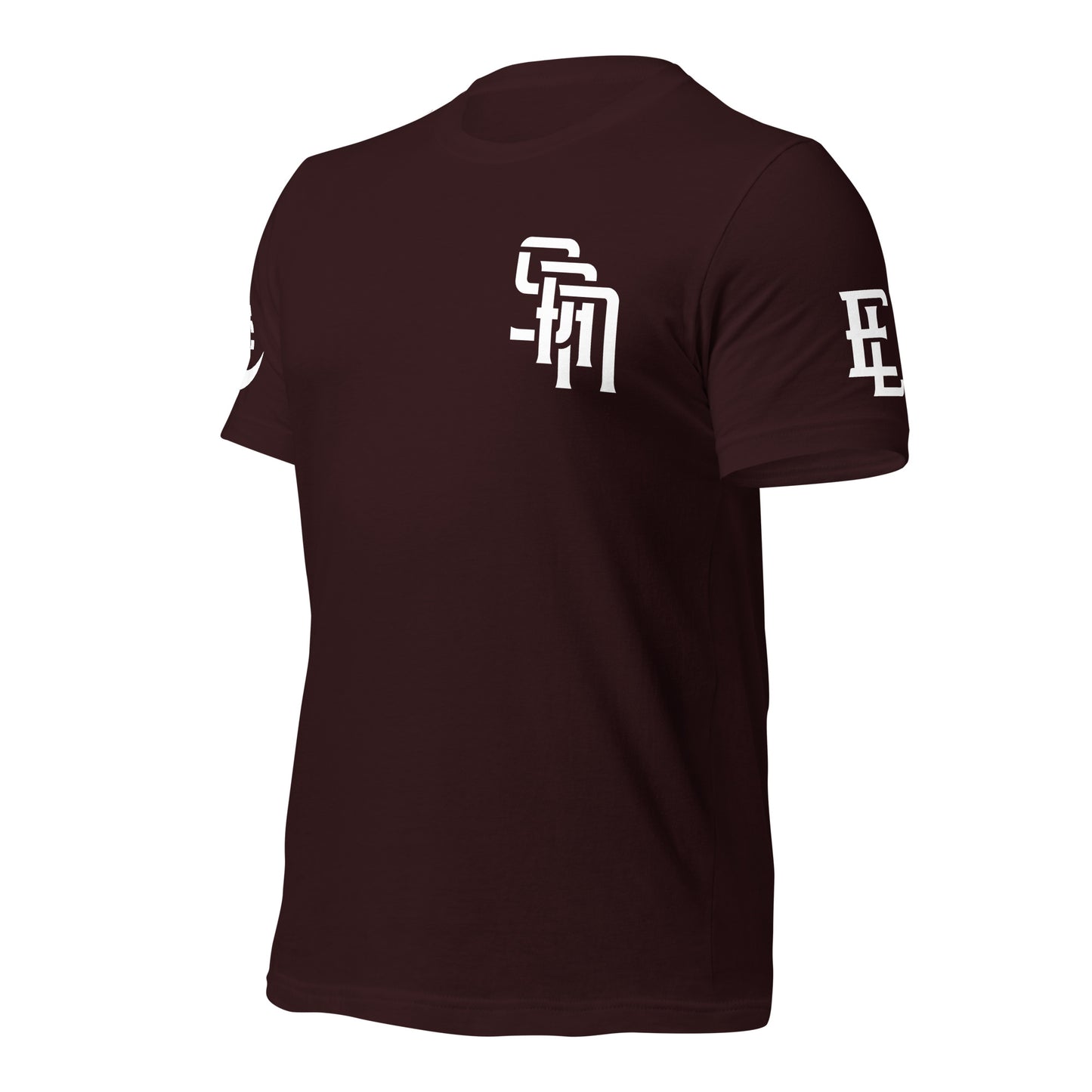 "SAN" Unisex Staple T-Shirt | E Luna Brand EXCLUSIVE | 4 White Logos: Front Left, Left/Right Sleeves & Back Signature