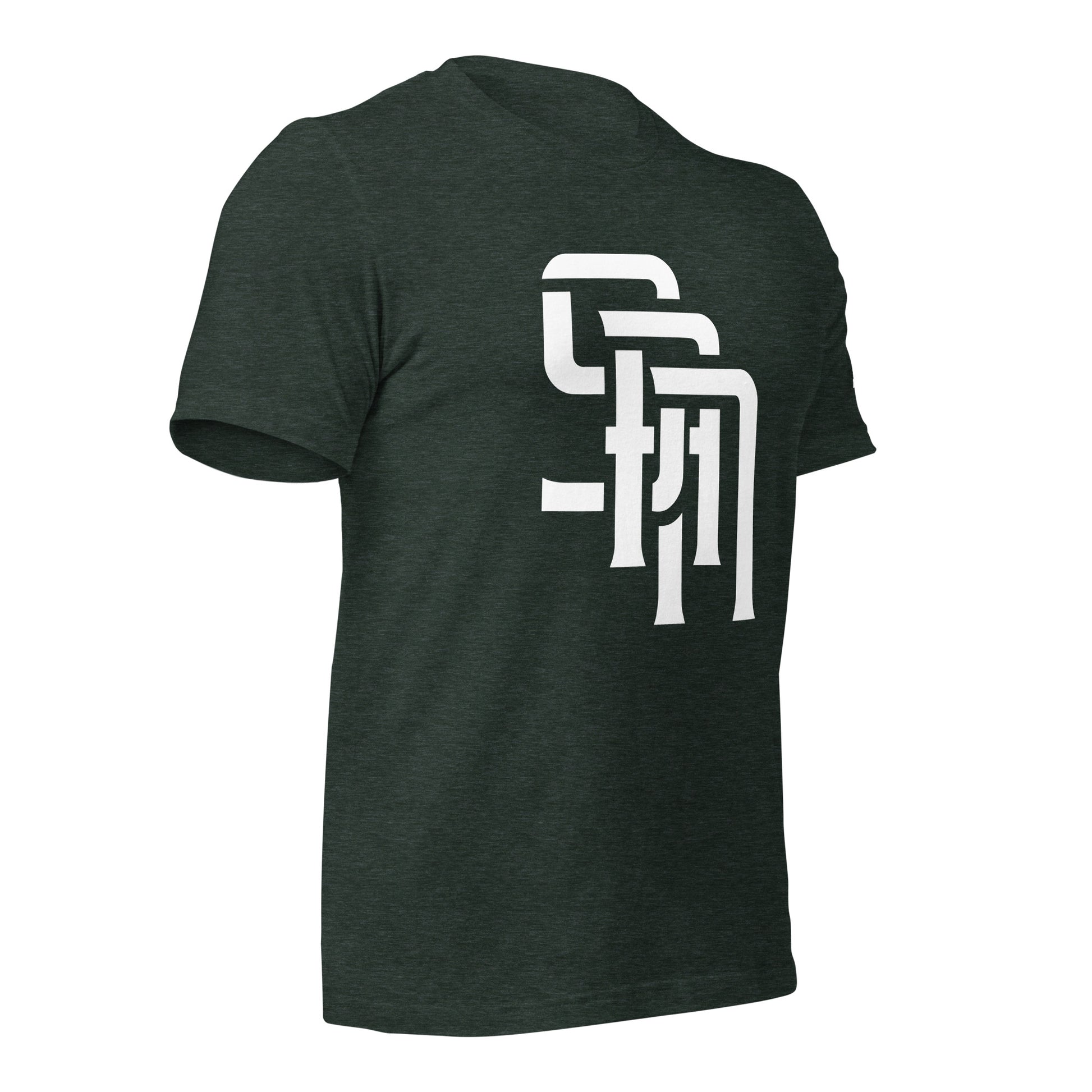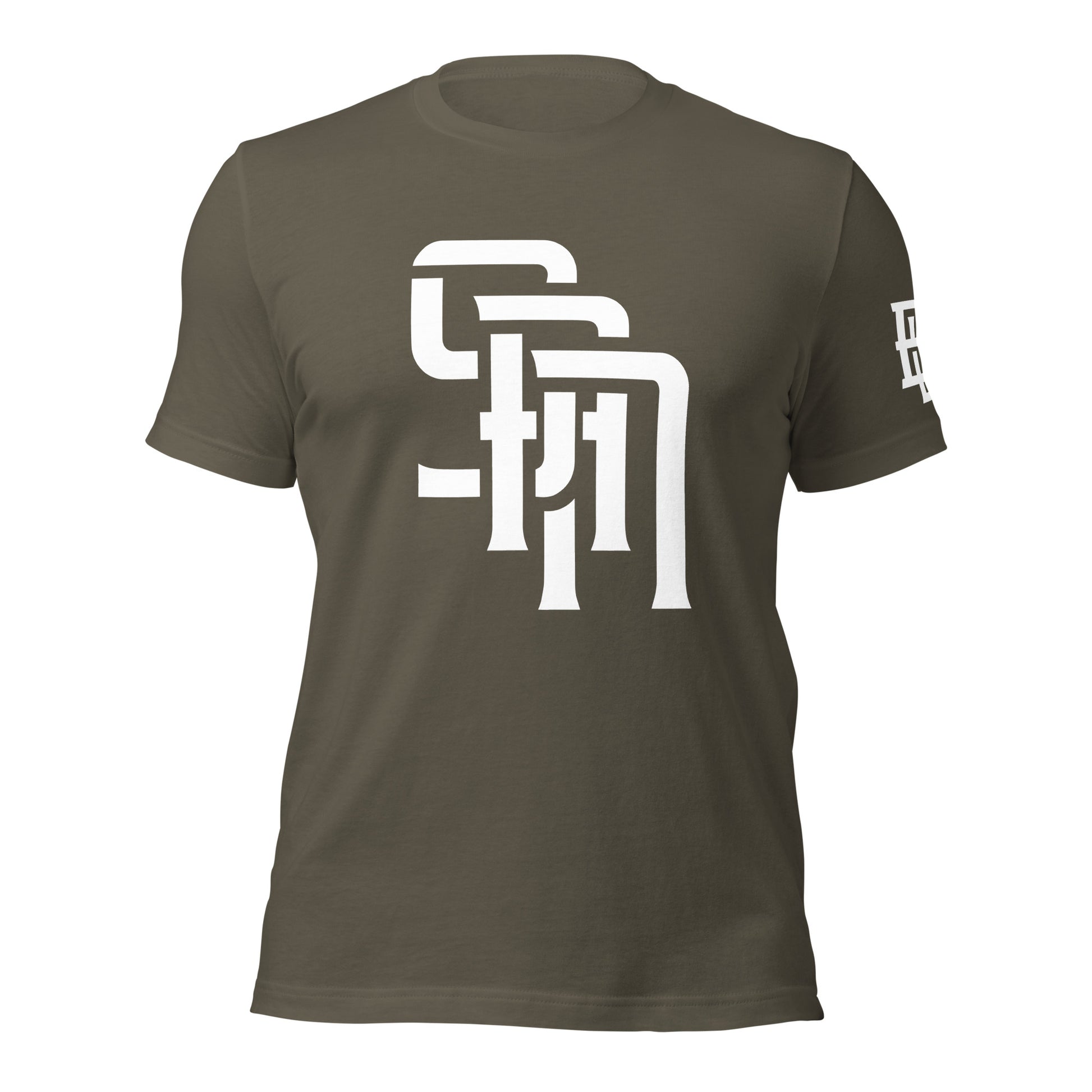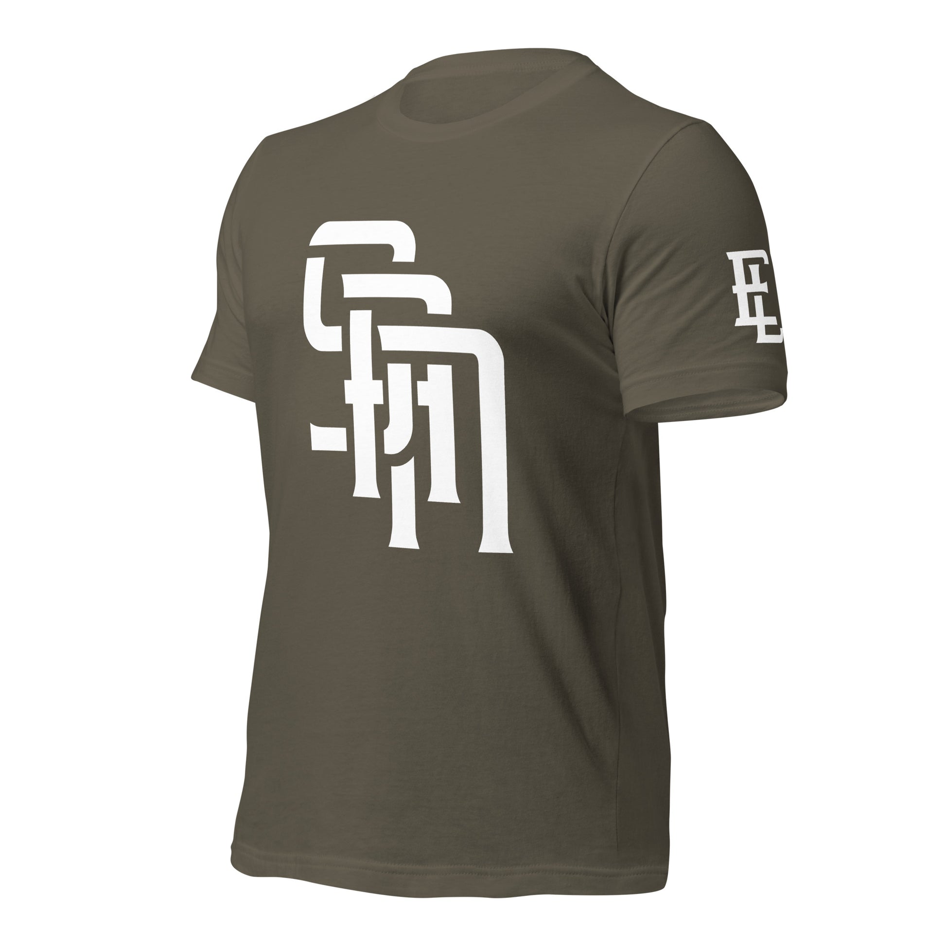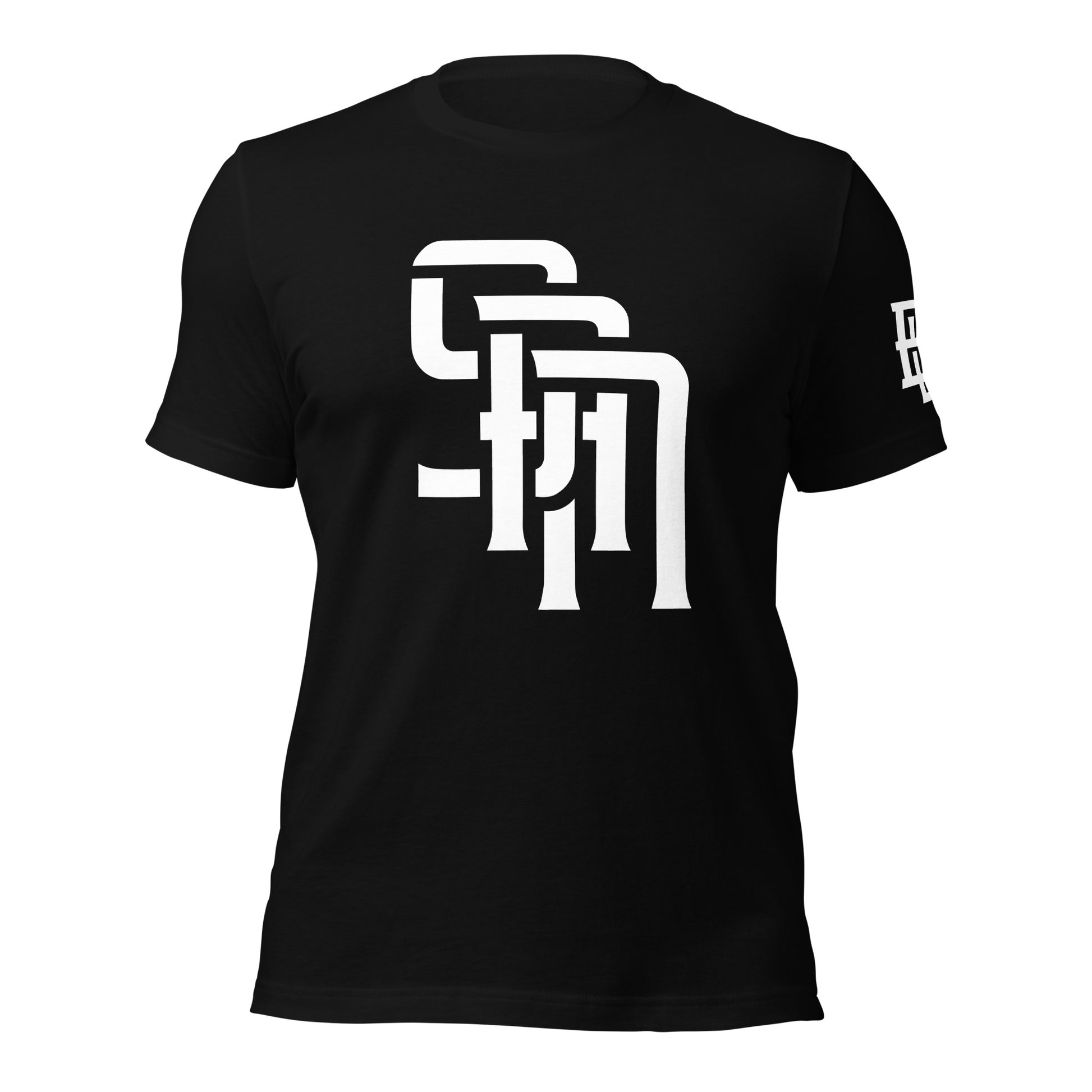 "SAN" Unisex Staple T-Shirt | E Luna Brand ELEMENT | 3 White Logos: Front, Left Sleeve & Back