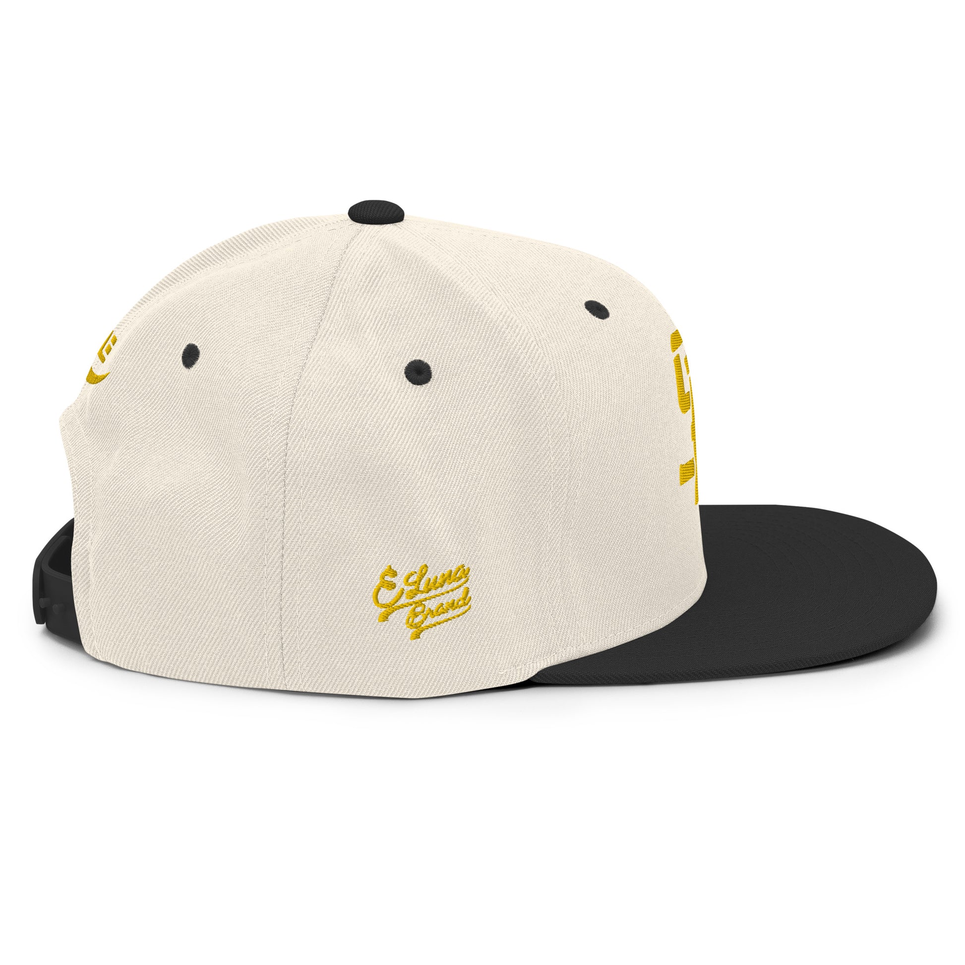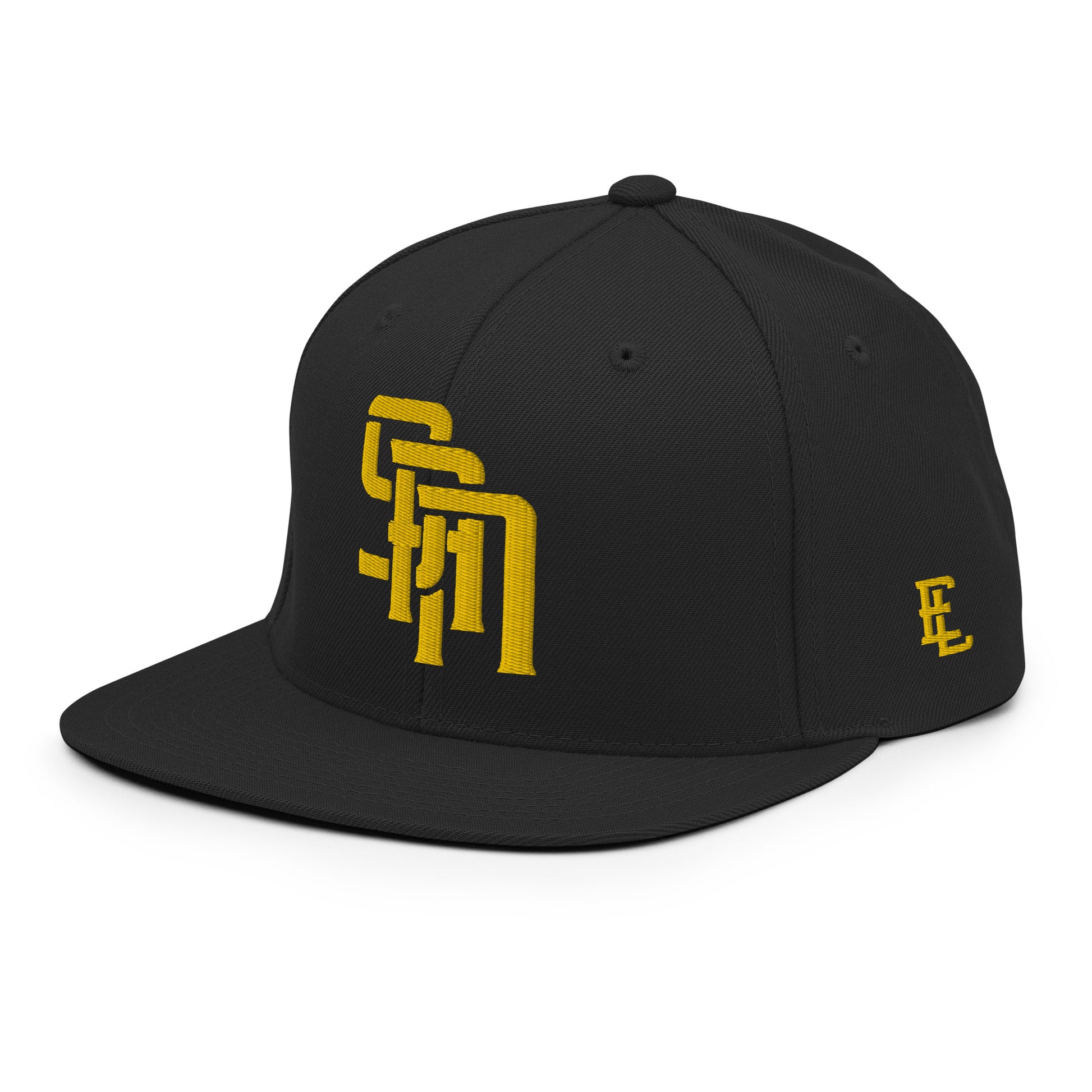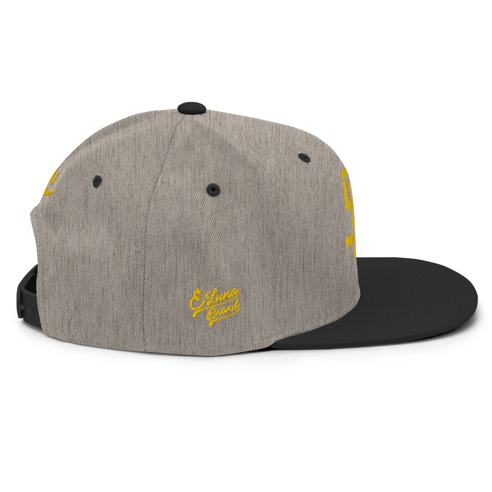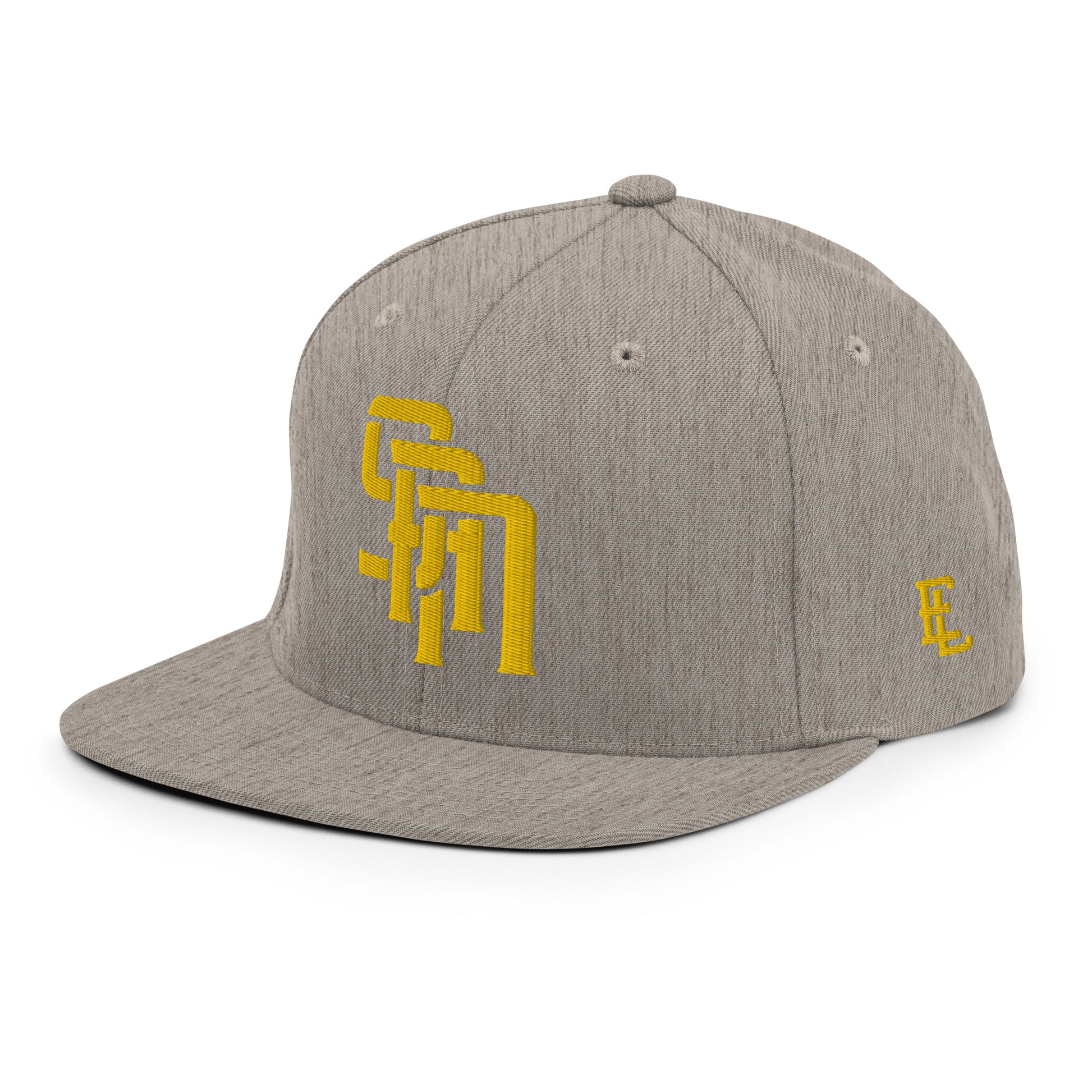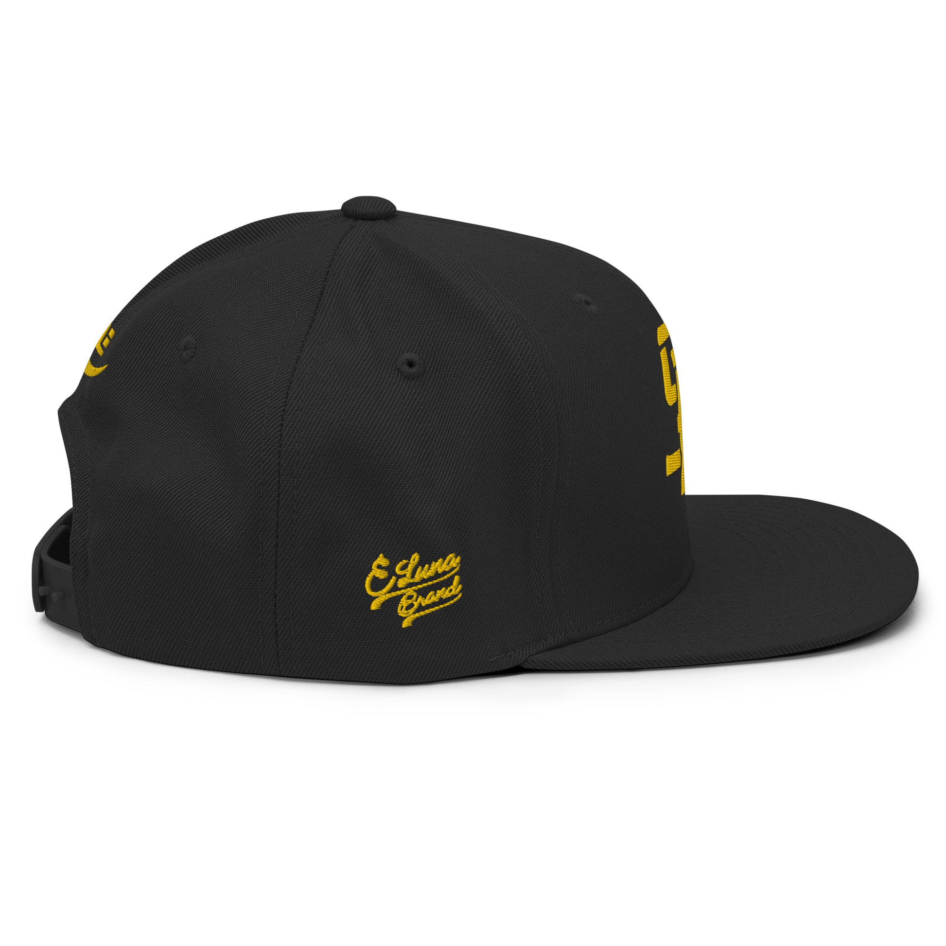 "SAN" Wool Blend Snapback Hat | Yupoong 6089M | E Luna Brand PREMIUM Quadcrest 4 Gold Thread Logos: Front, Left, Right Signature & Back [3D Puff Edition]