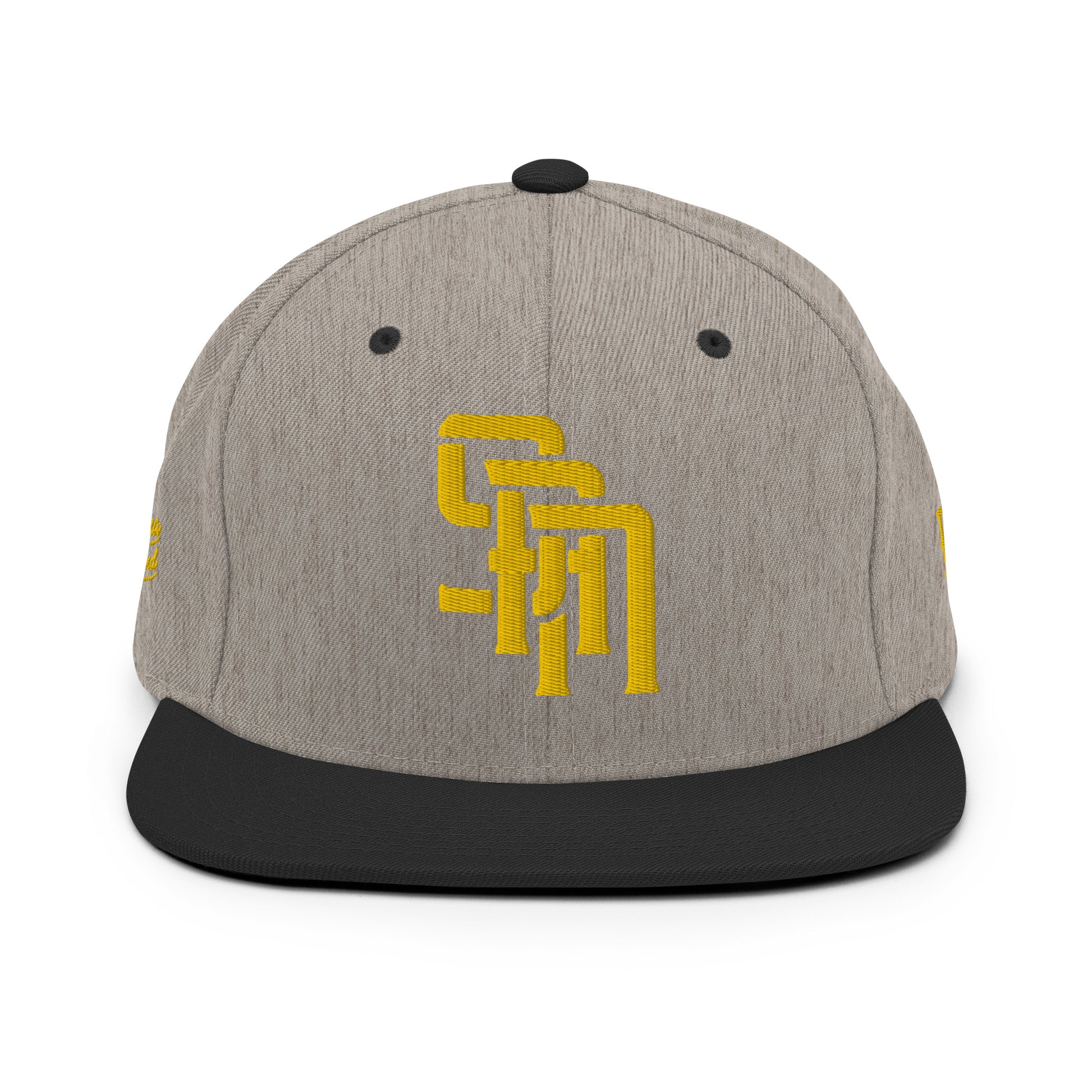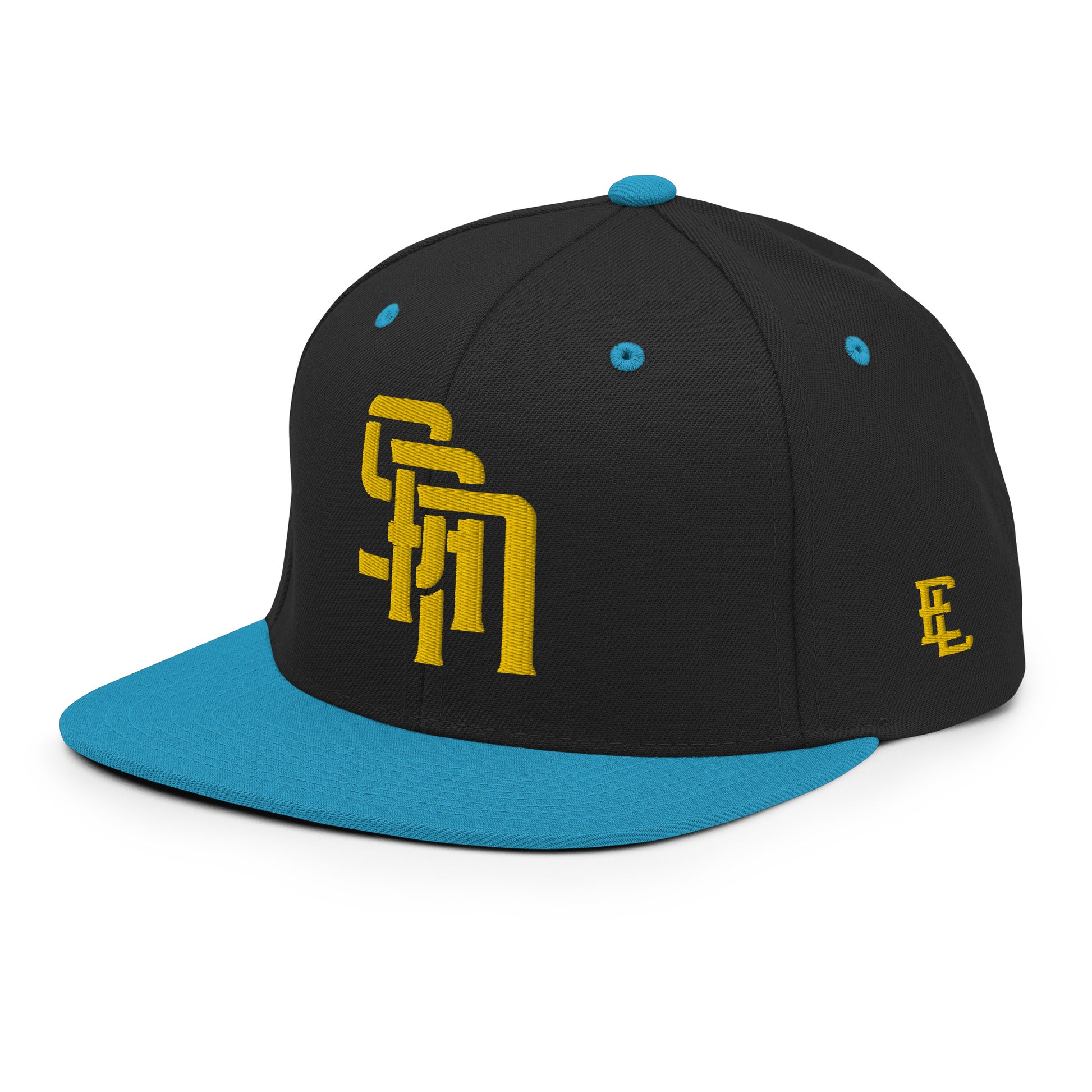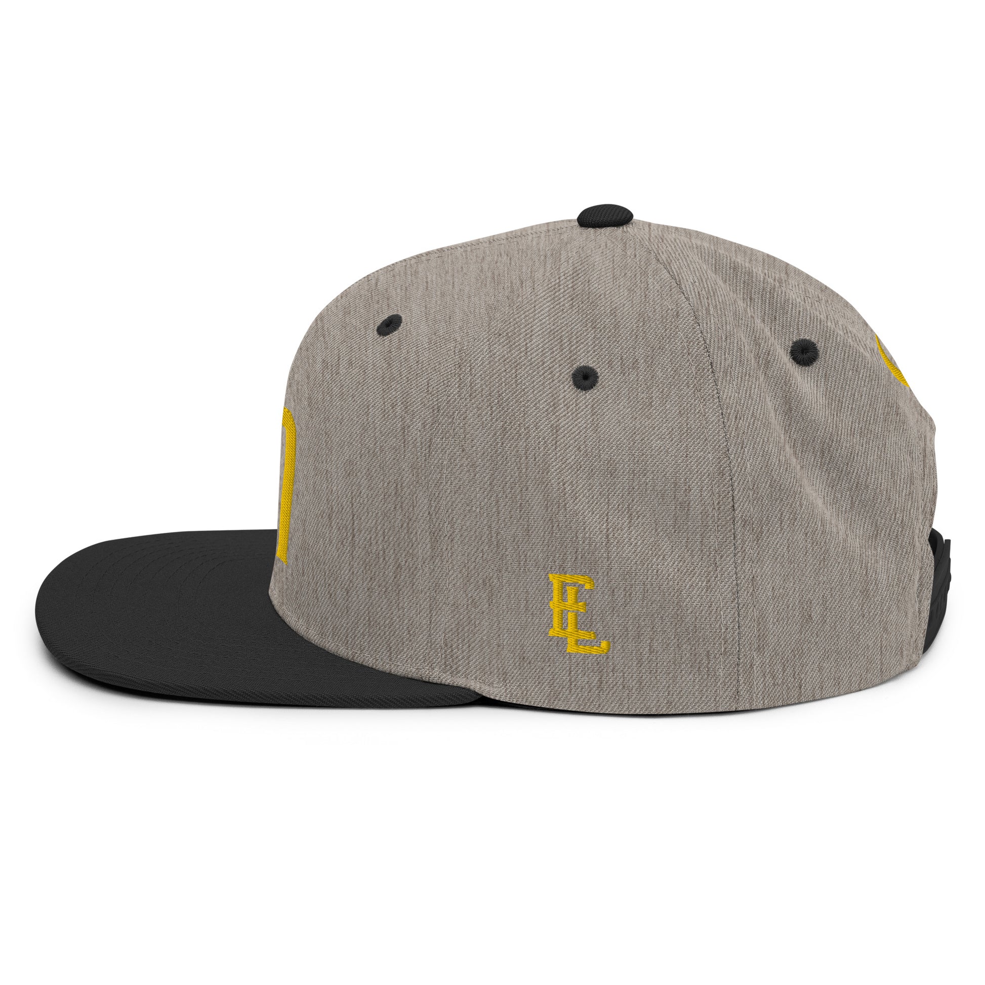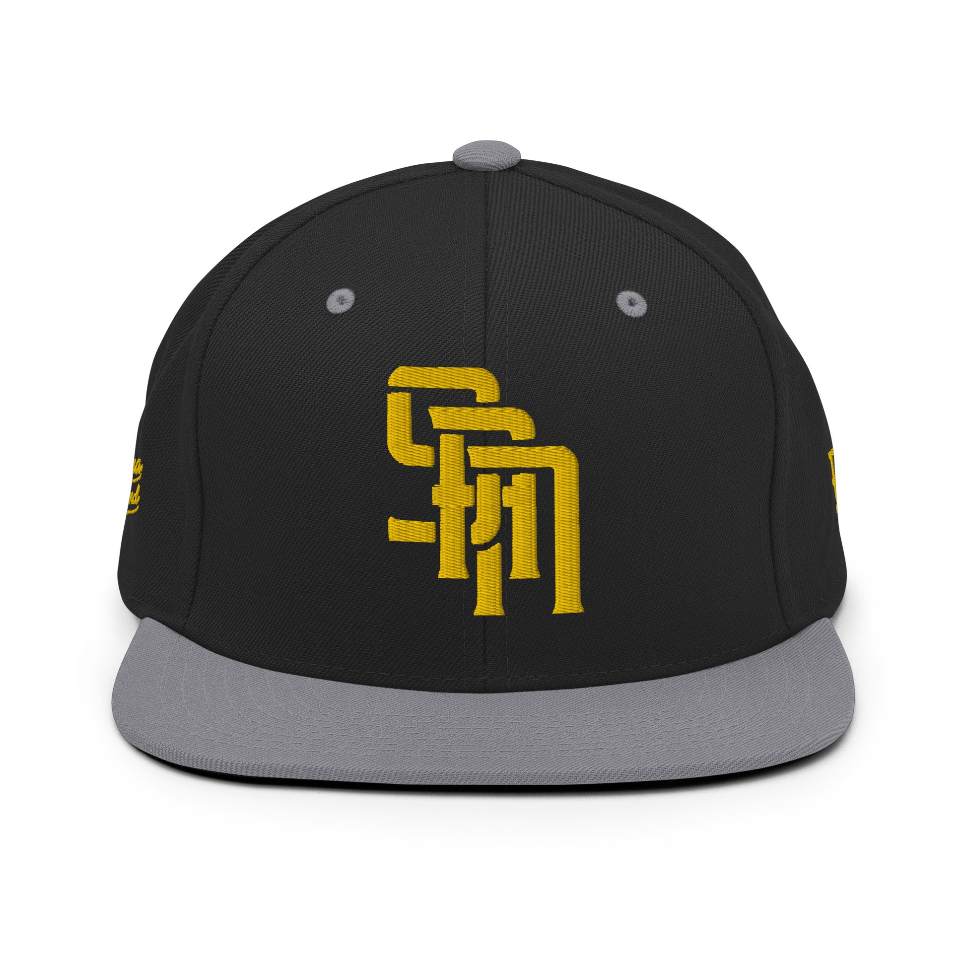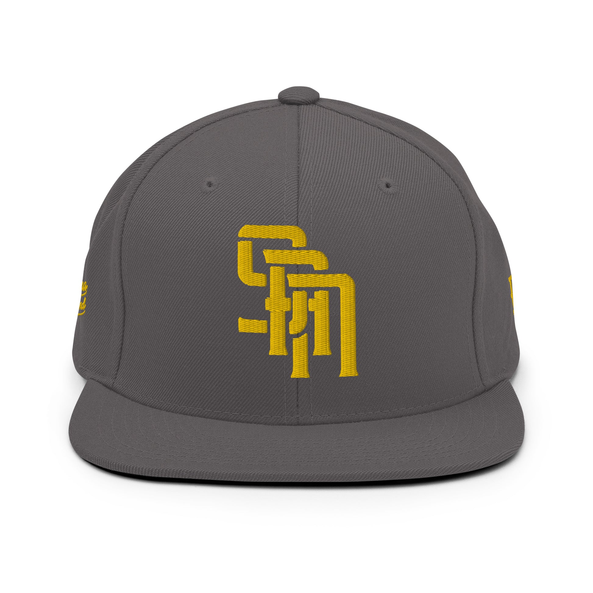 "SAN" Wool Blend Snapback Hat | Yupoong 6089M | E Luna Brand PREMIUM Quadcrest 4 Gold Thread Logos: Front, Left, Right Signature & Back [3D Puff Edition]
