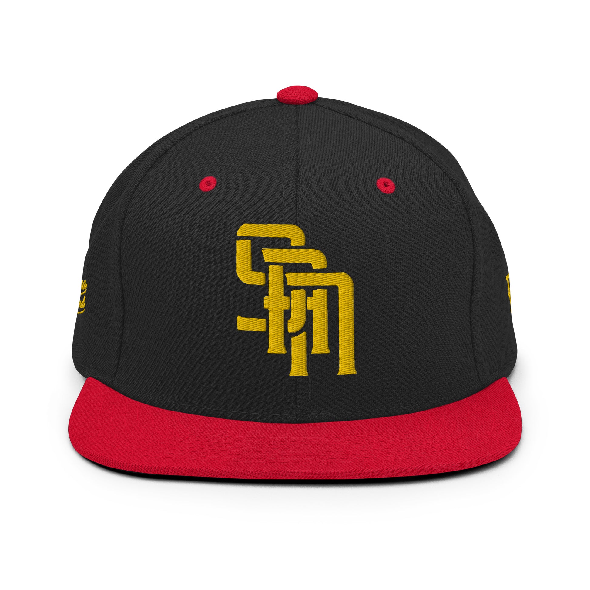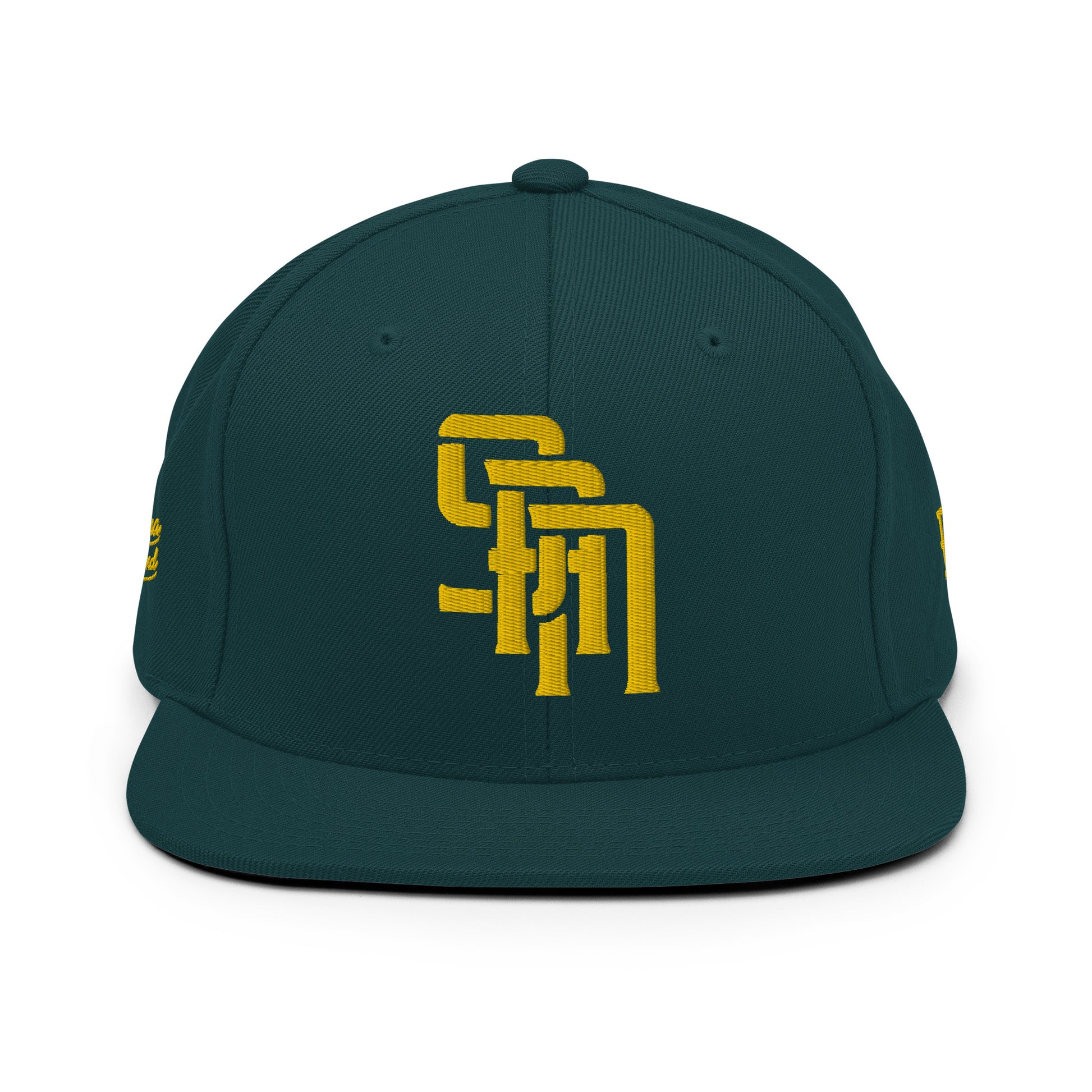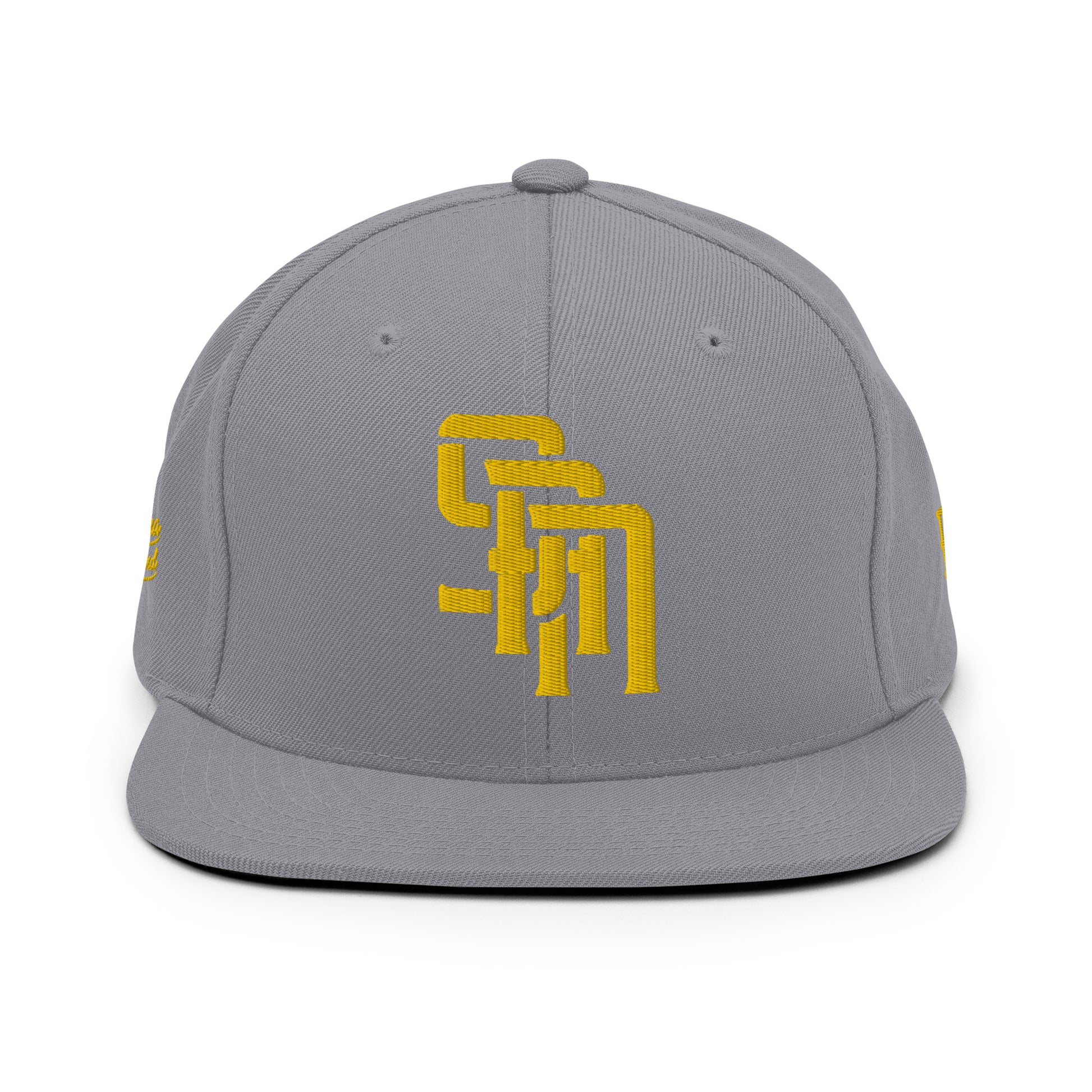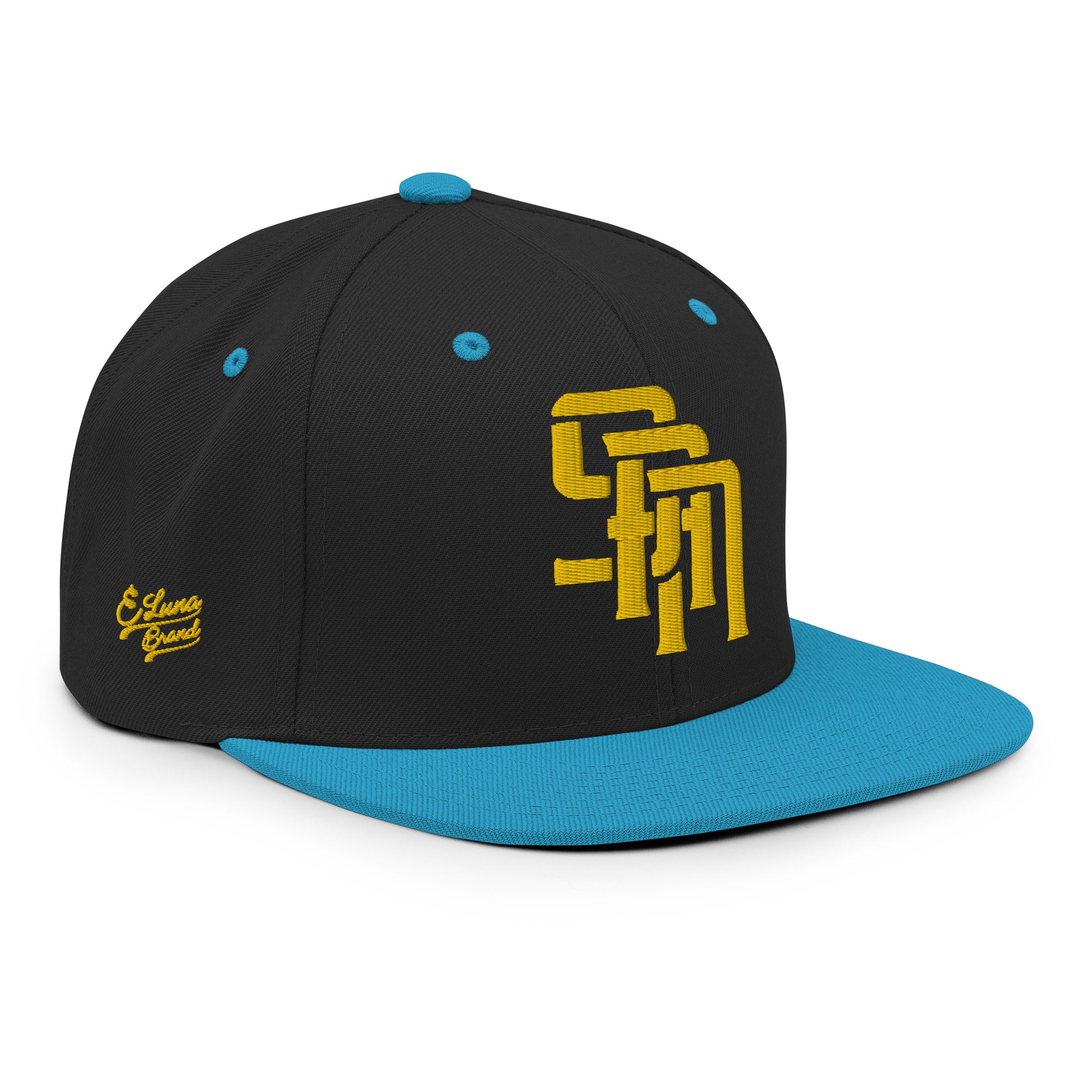 "SAN" Wool Blend Snapback Hat | Yupoong 6089M | E Luna Brand PREMIUM Quadcrest 4 Gold Thread Logos: Front, Left, Right Signature & Back [3D Puff Edition]