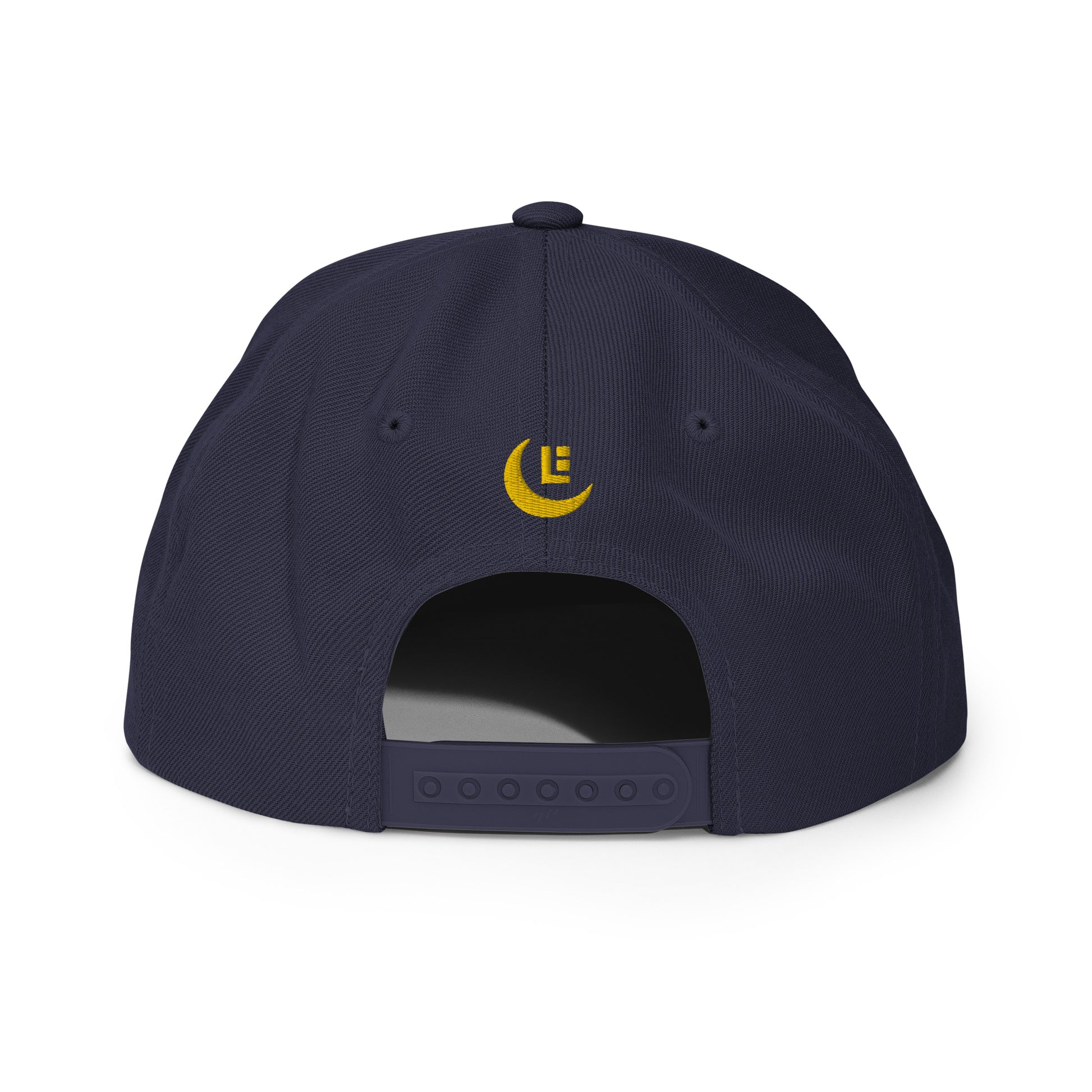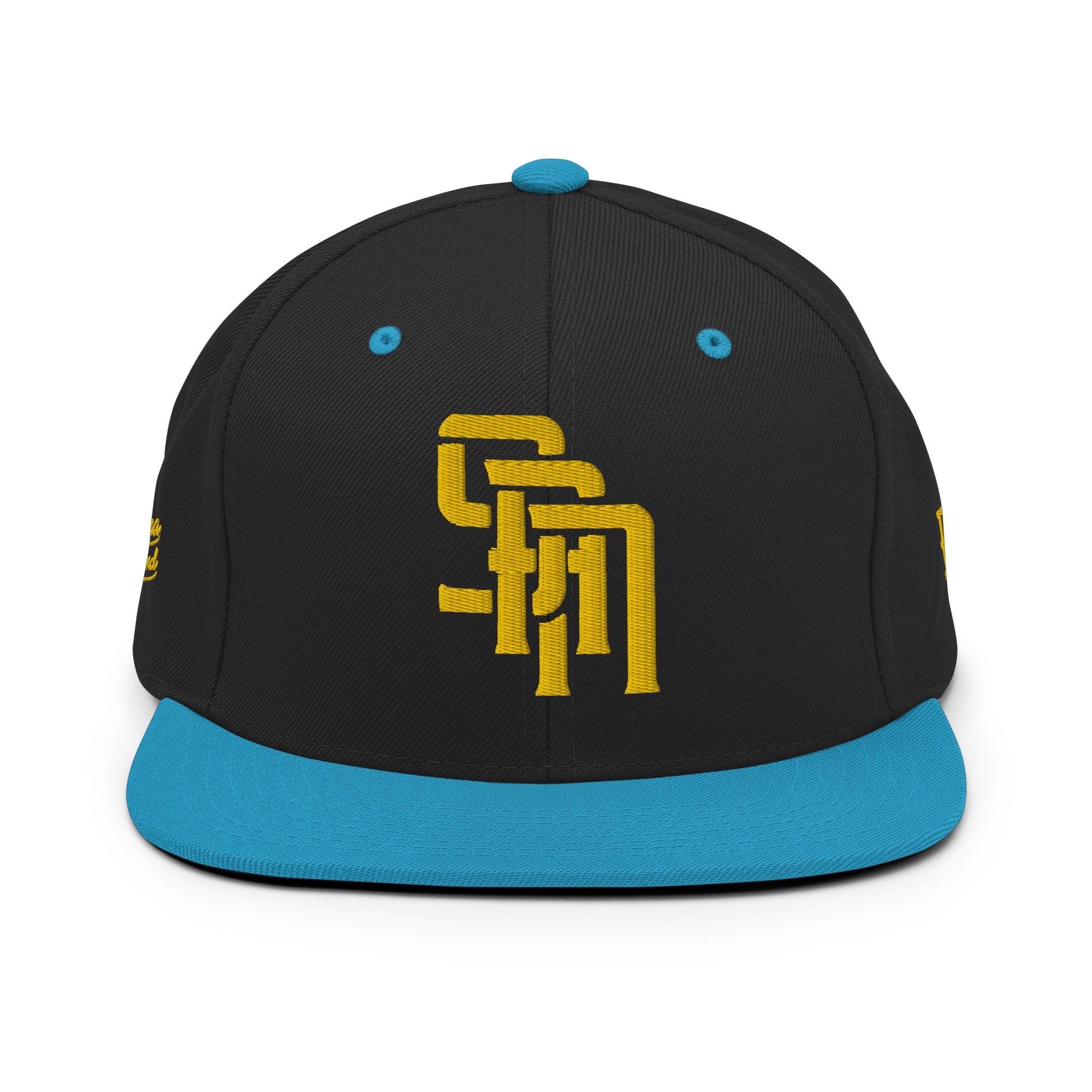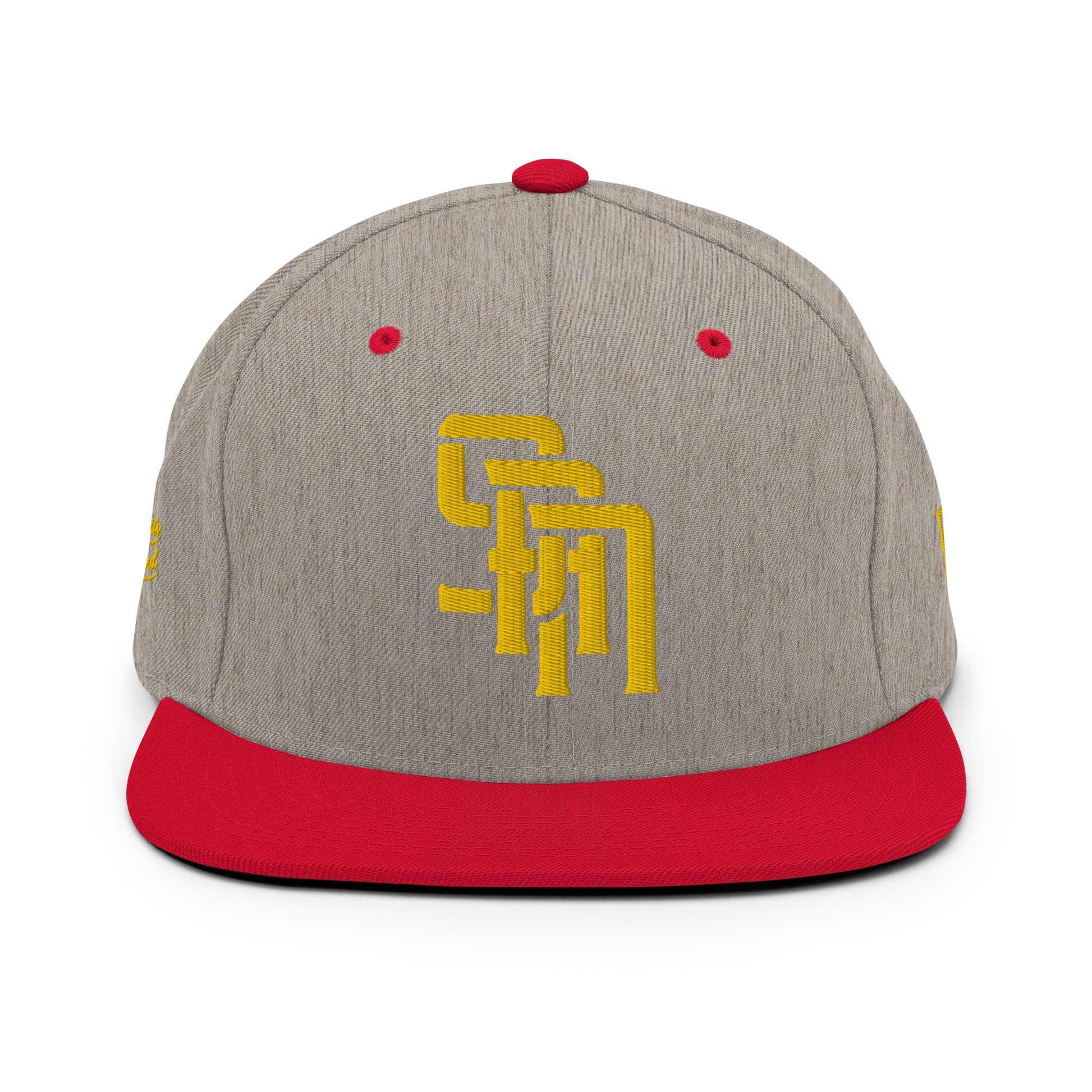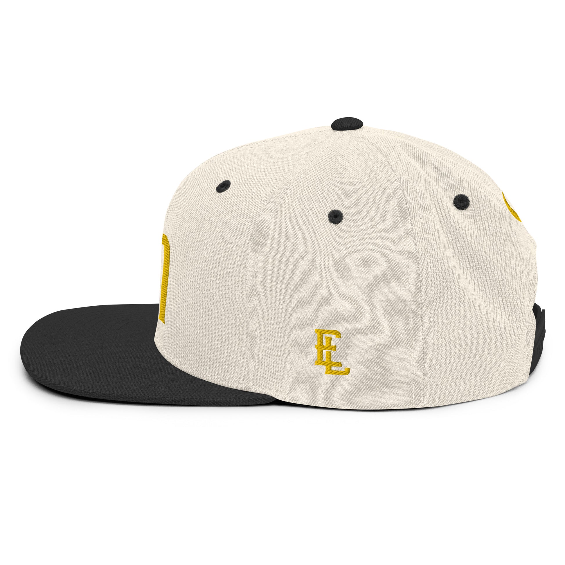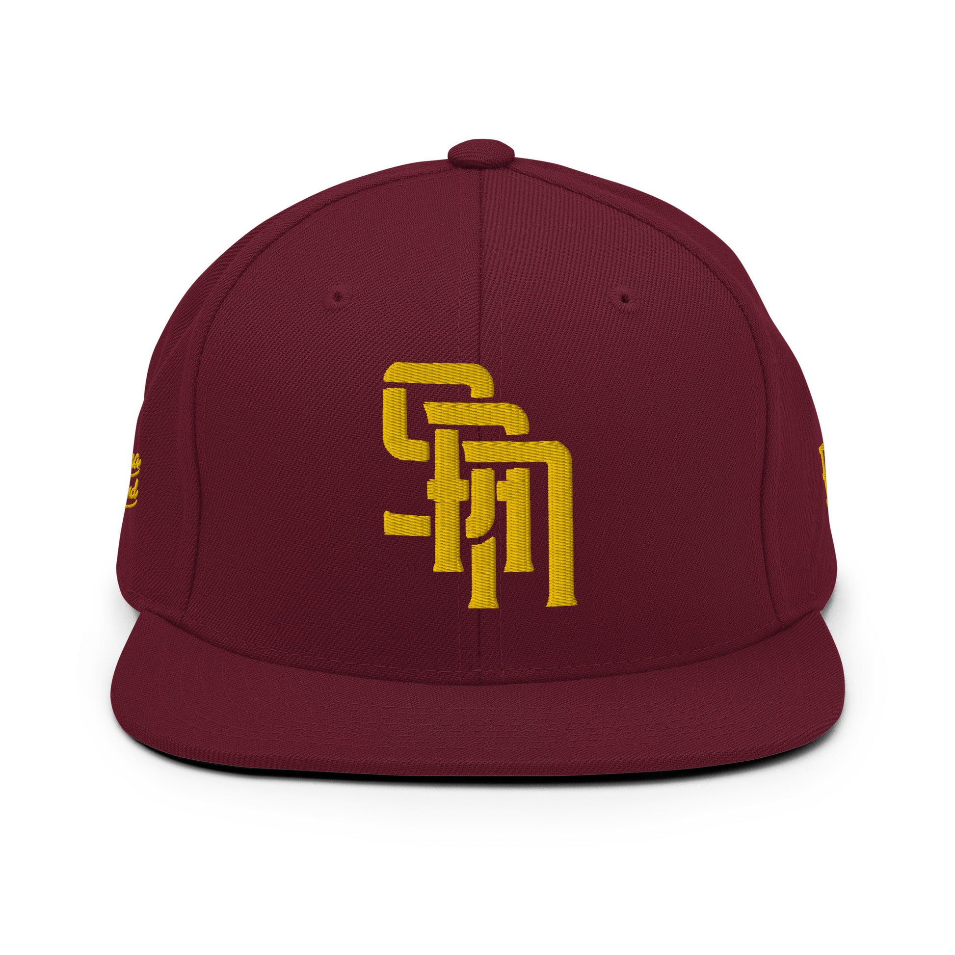 "SAN" Wool Blend Snapback Hat | Yupoong 6089M | E Luna Brand PREMIUM Quadcrest 4 Gold Thread Logos: Front, Left, Right Signature & Back [3D Puff Edition]