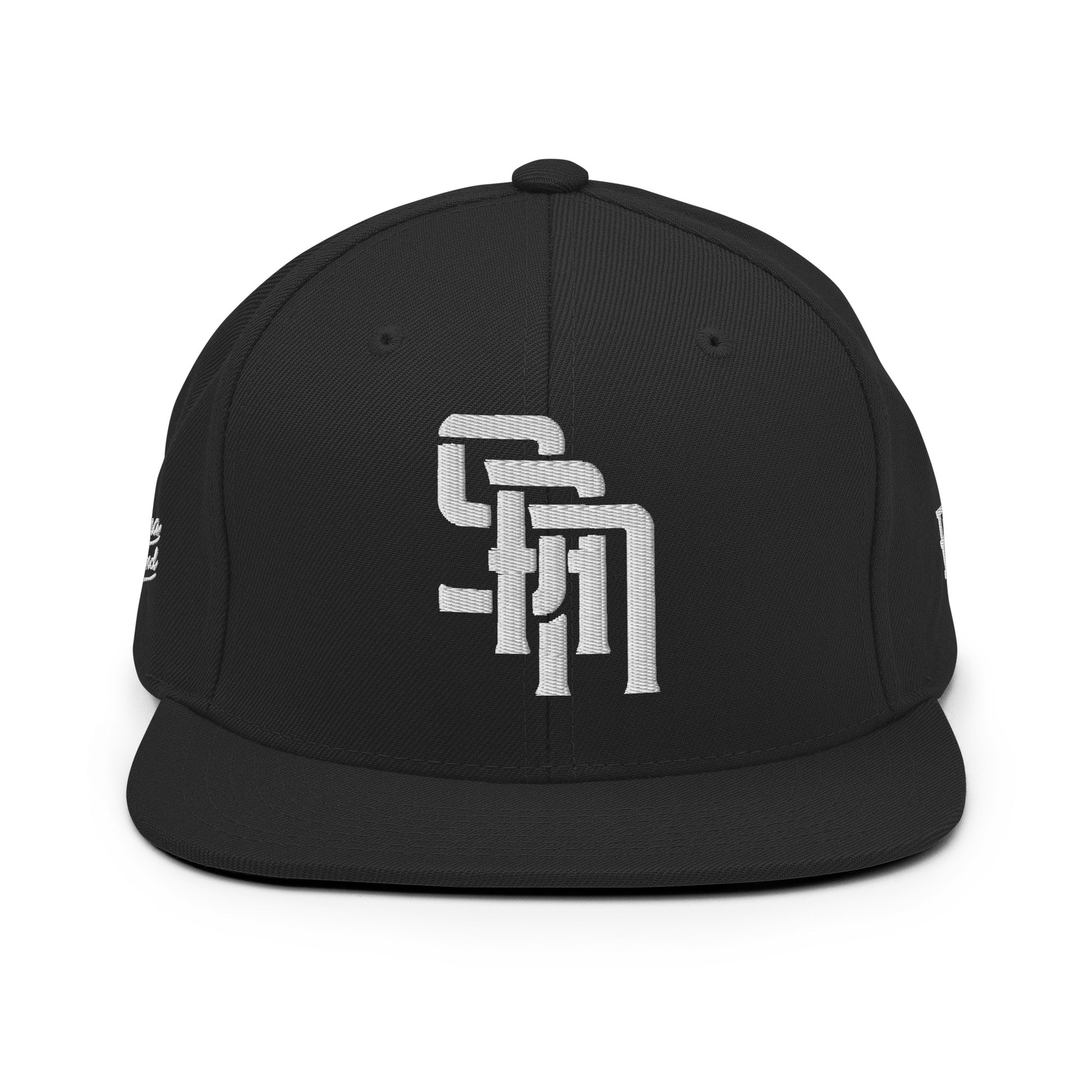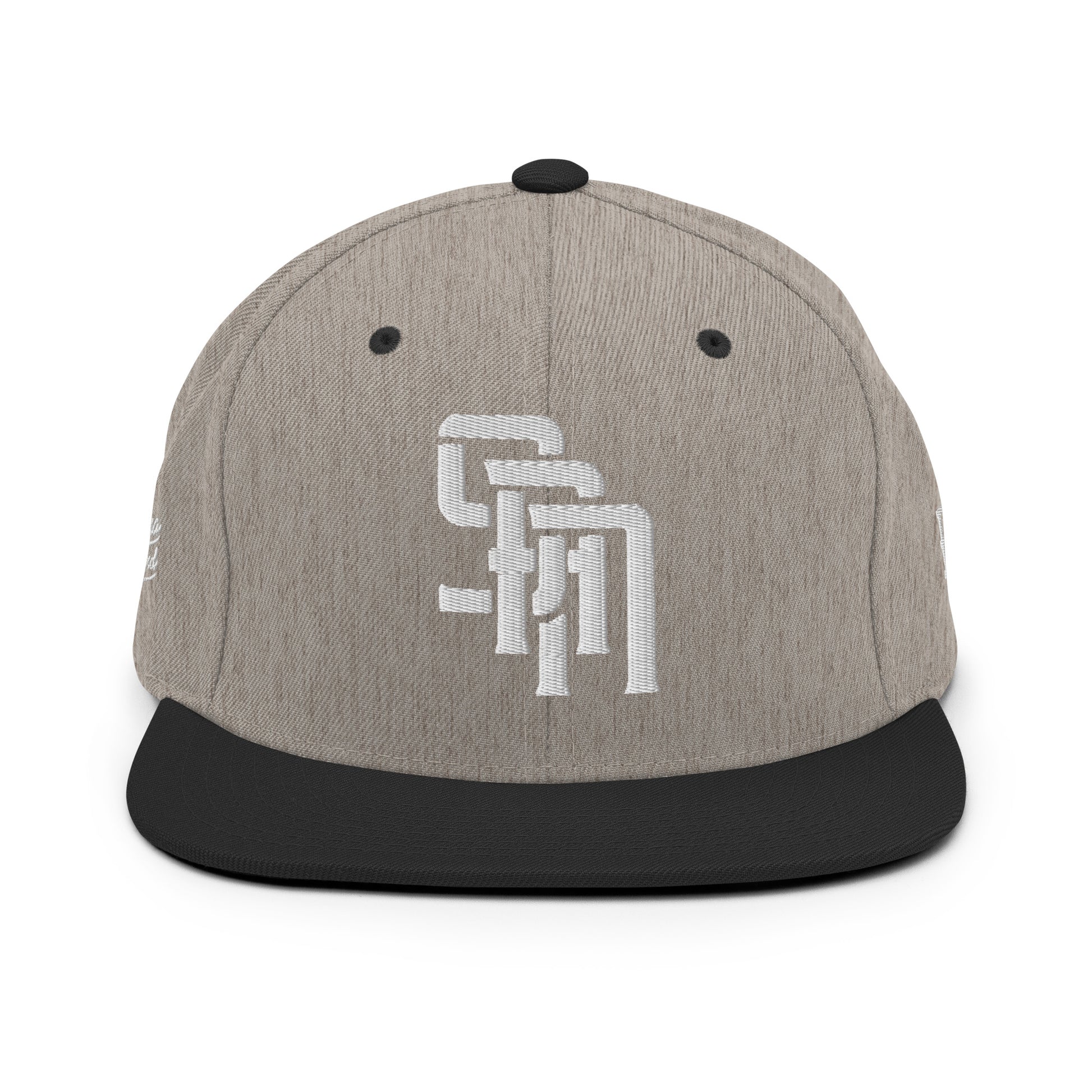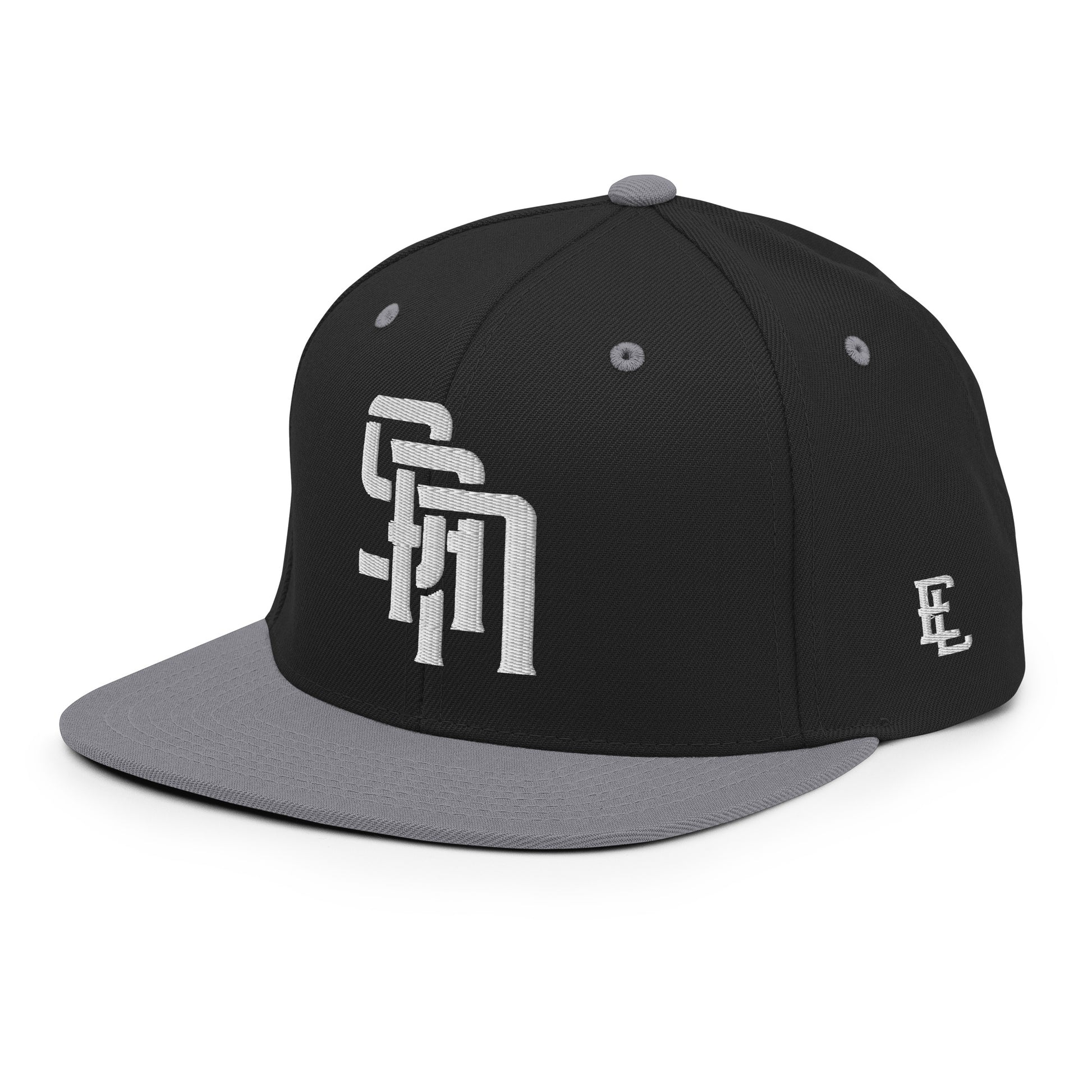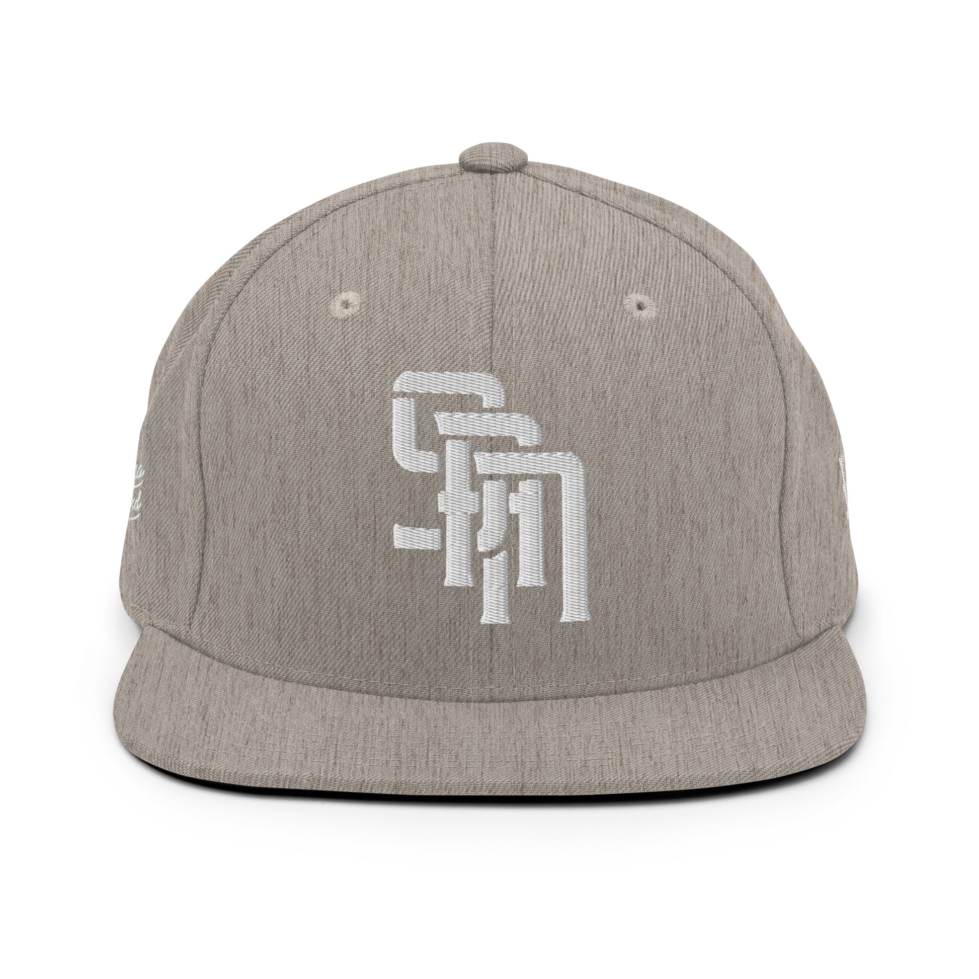 "SAN" Wool Blend Snapback Hat | Yupoong 6089M | E Luna Brand PREMIUM Quadcrest 4 White Thread Logos: Front, Left, Right Signature & Back [3D Puff Edition]