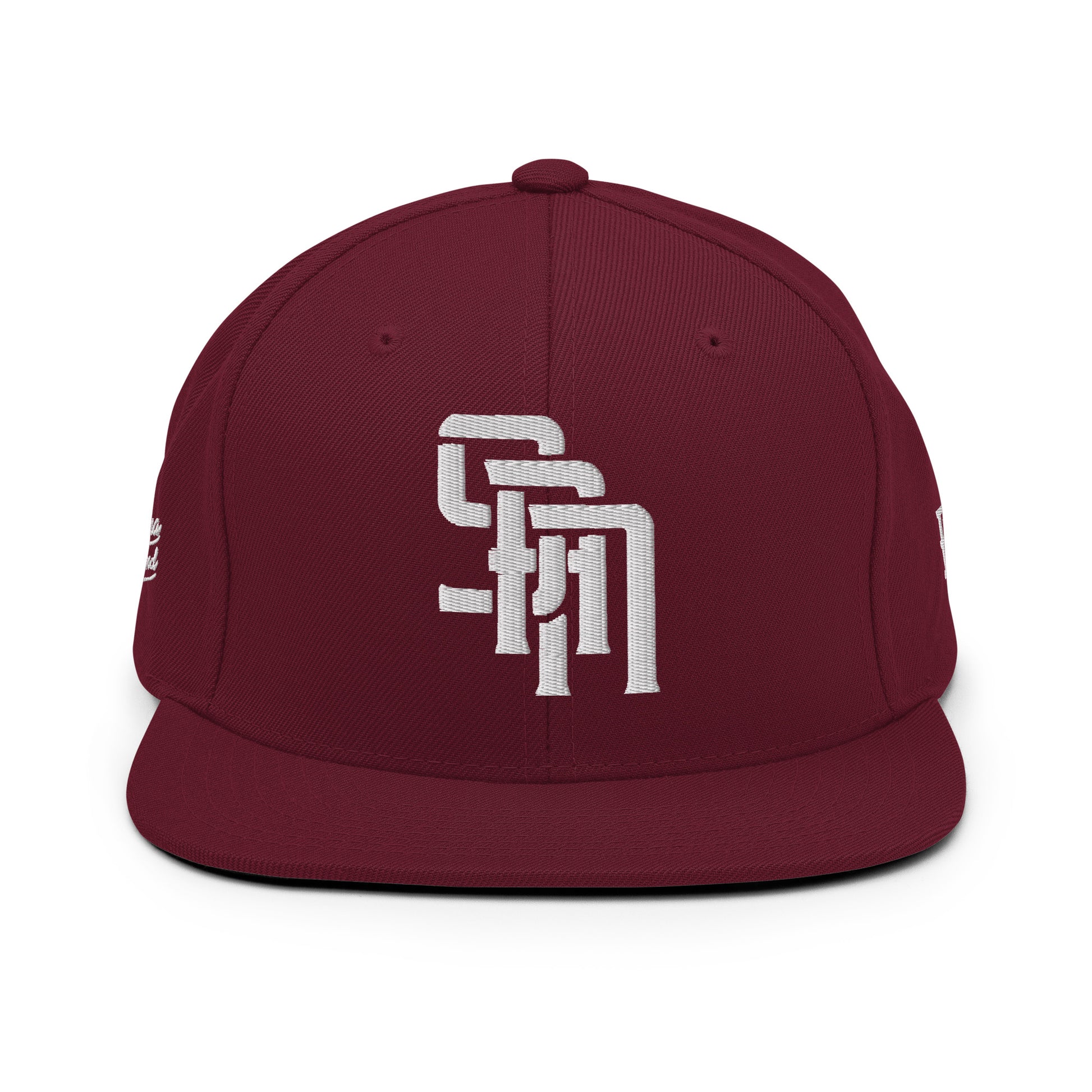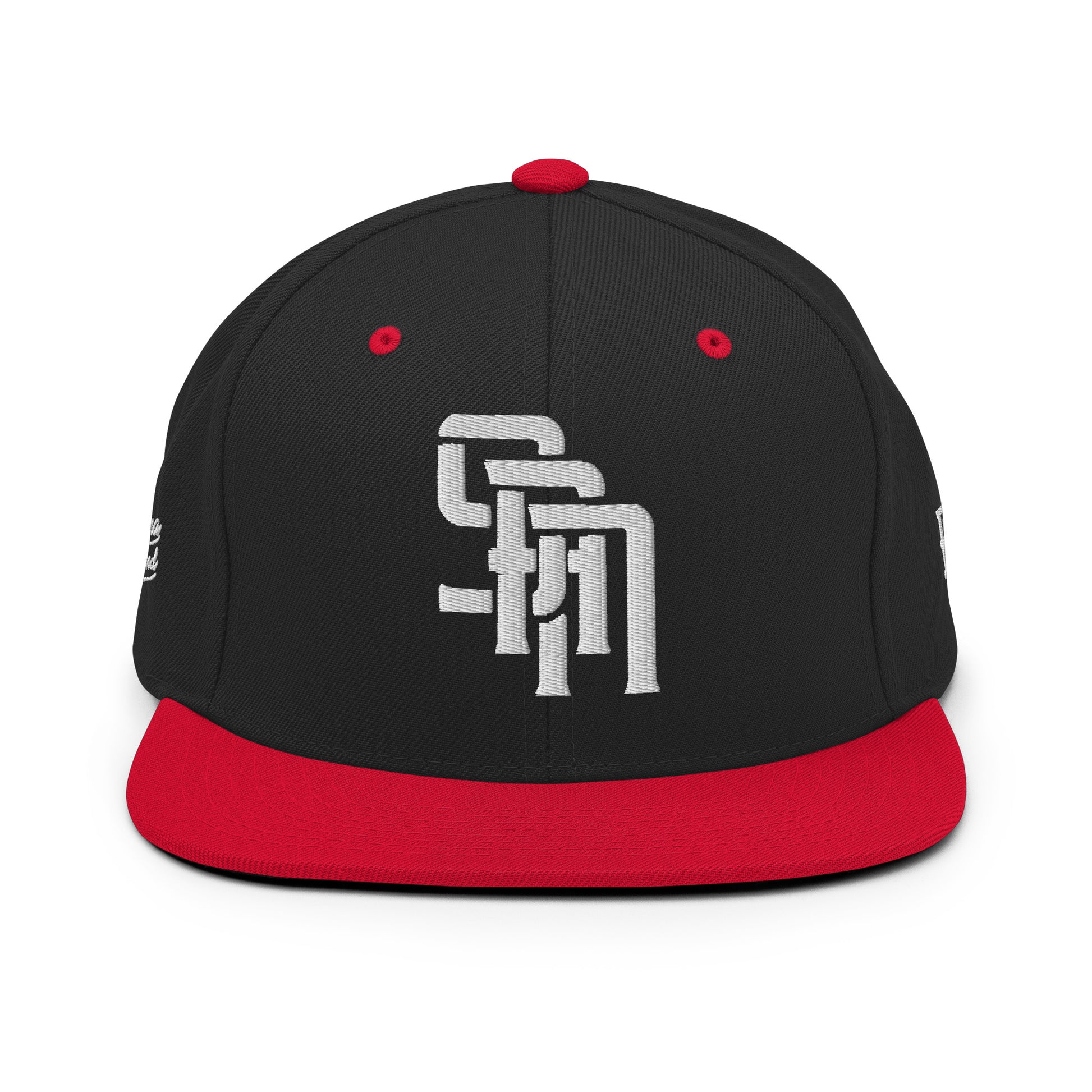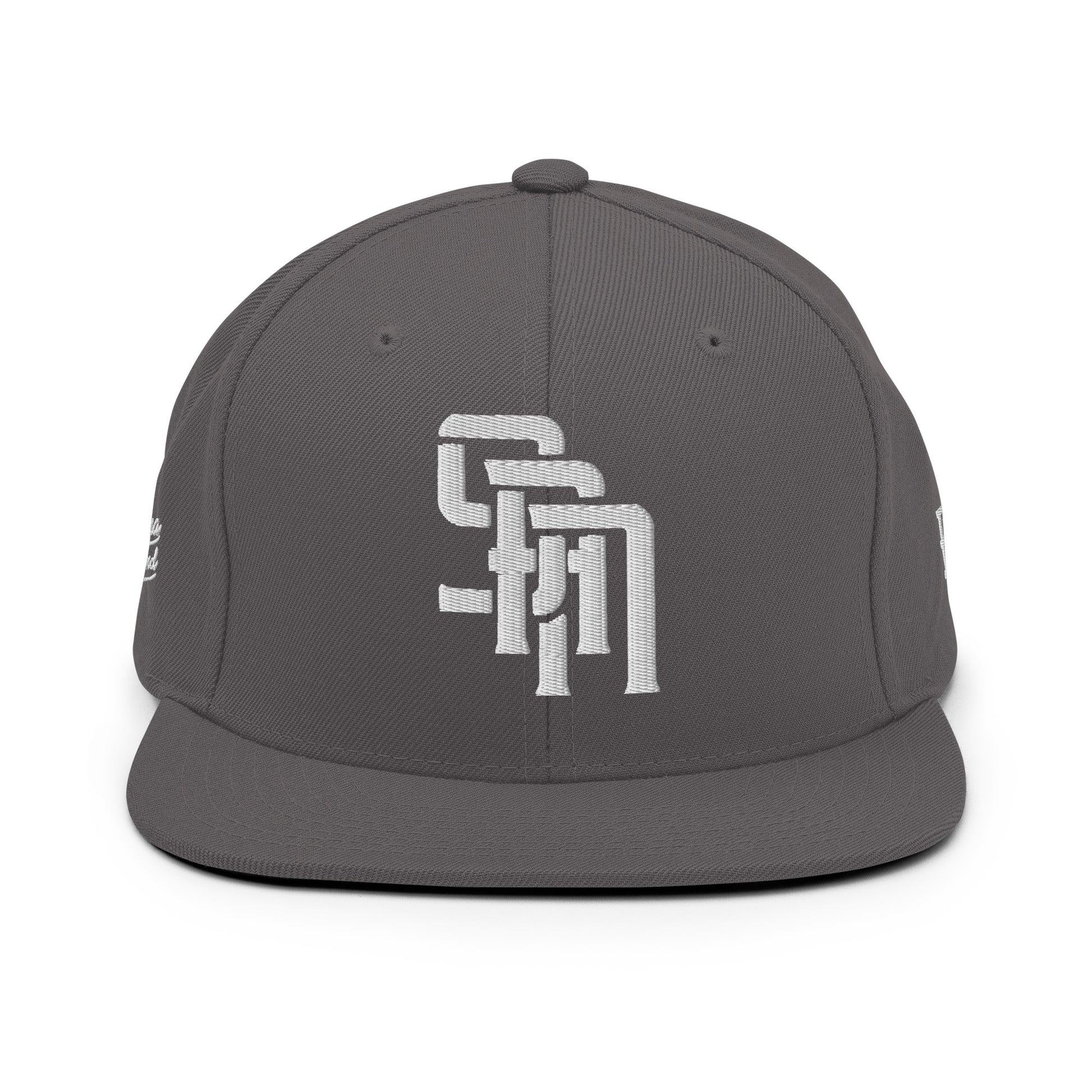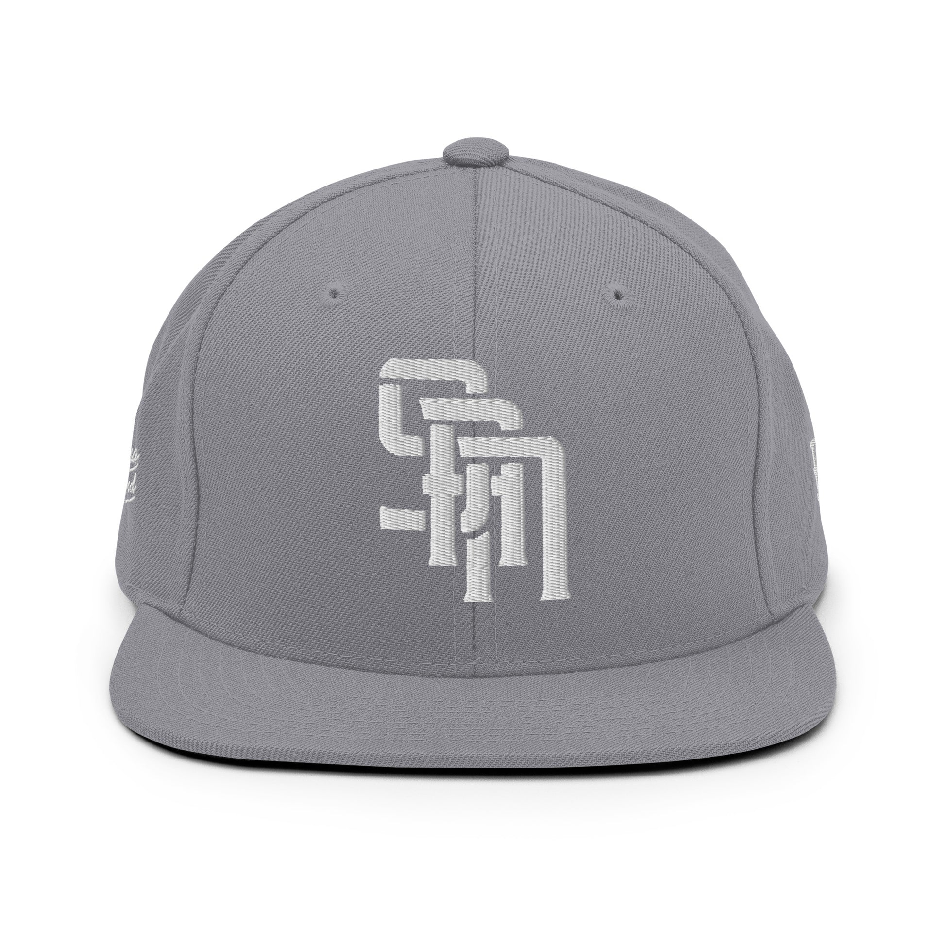 "SAN" Wool Blend Snapback Hat | Yupoong 6089M | E Luna Brand PREMIUM Quadcrest 4 White Thread Logos: Front, Left, Right Signature & Back [3D Puff Edition]