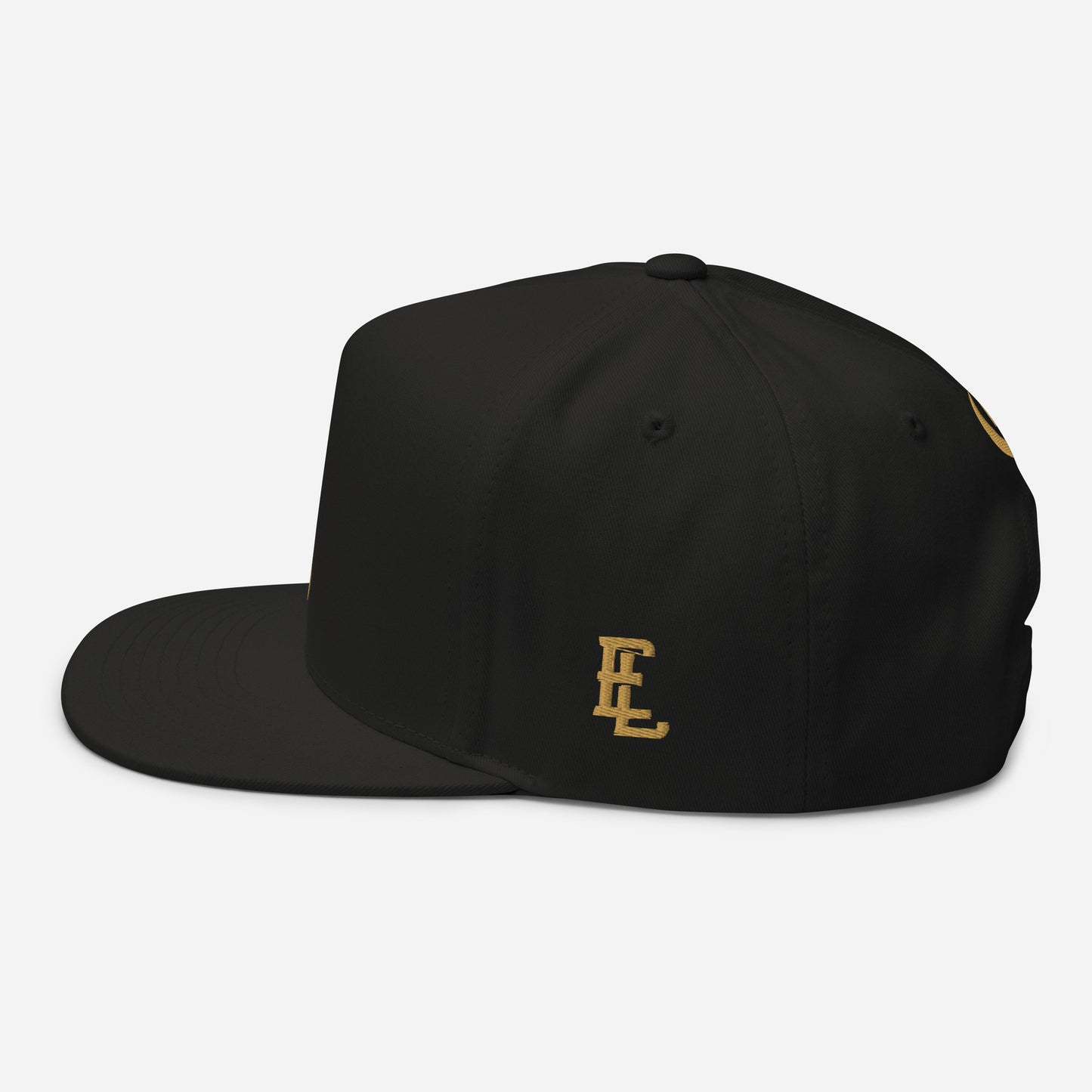 "TJ" 2.0 Flat Bill Cap | E Luna Brand PREMIUM | 4 Old Gold Thread Logos | 3D Puff Edition