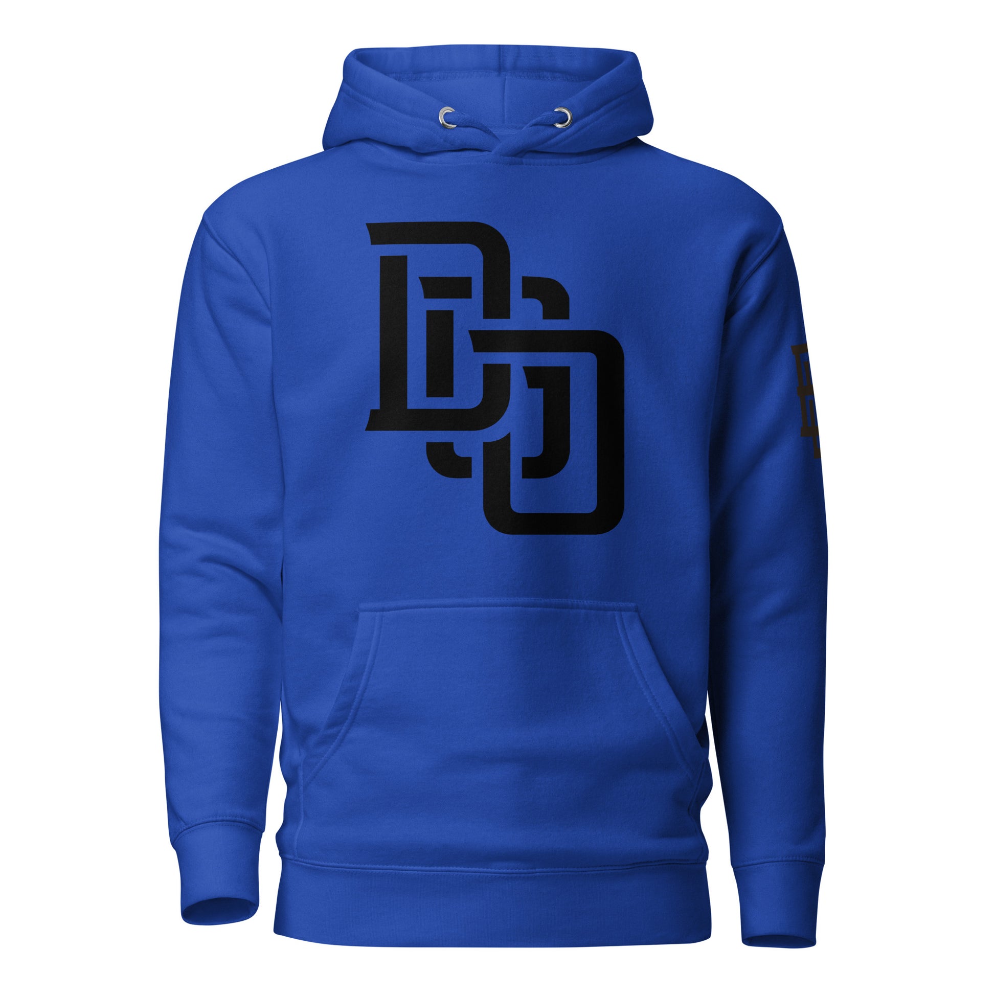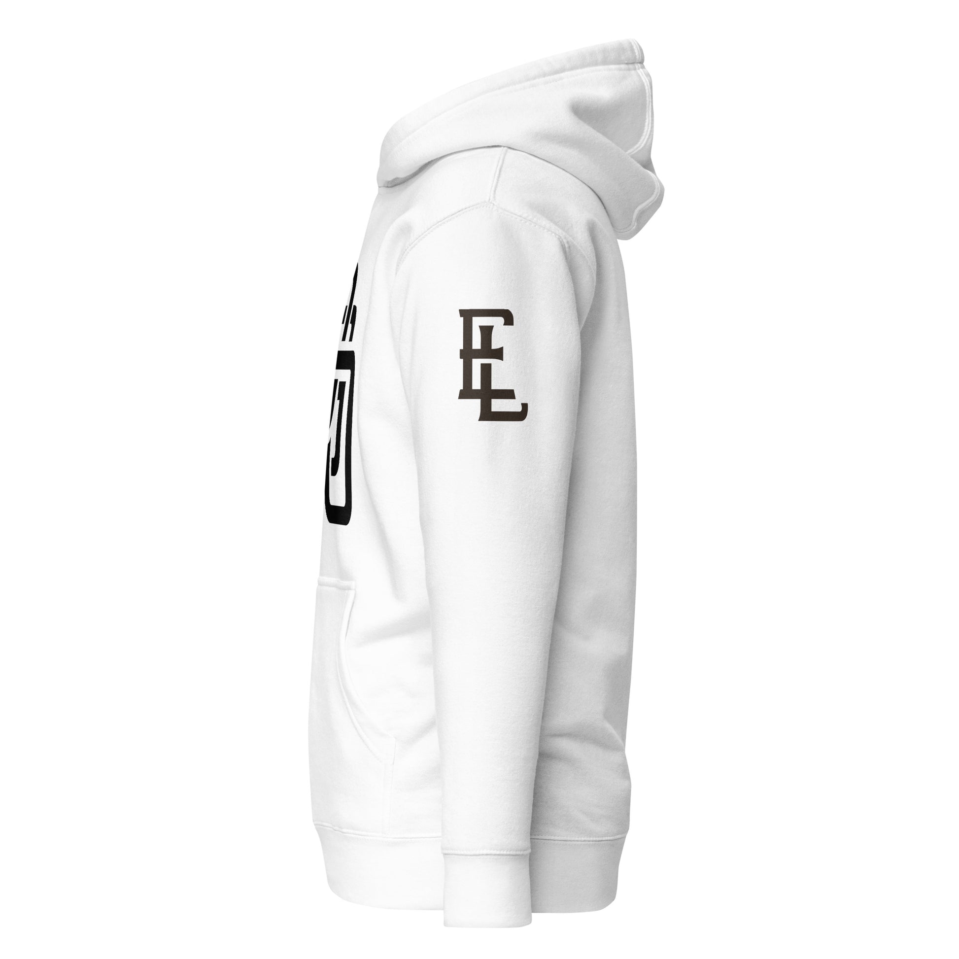 "DGO" Unisex Premium Hoodie | Cotton Heritage M2580 | E Luna Brand ESSENCE Tricrest 3 Black Logos: Front Center (Large), Left Arm & Outside Back Label
