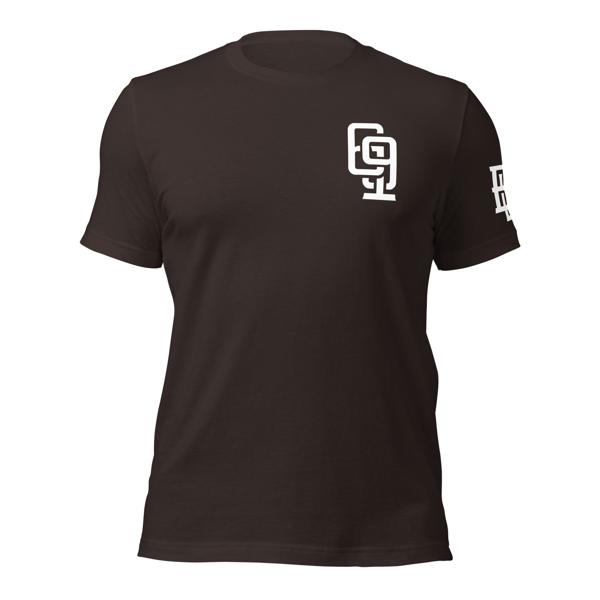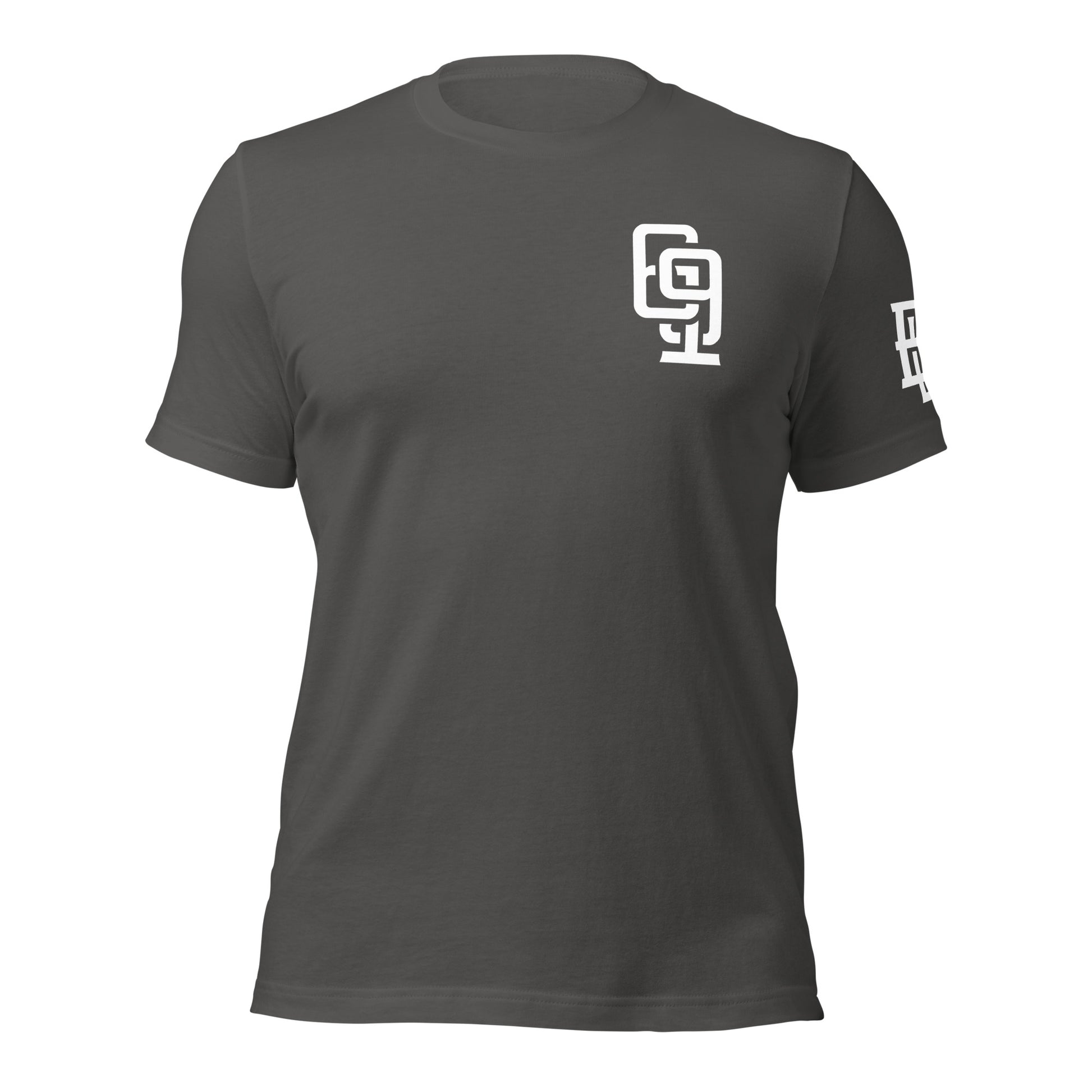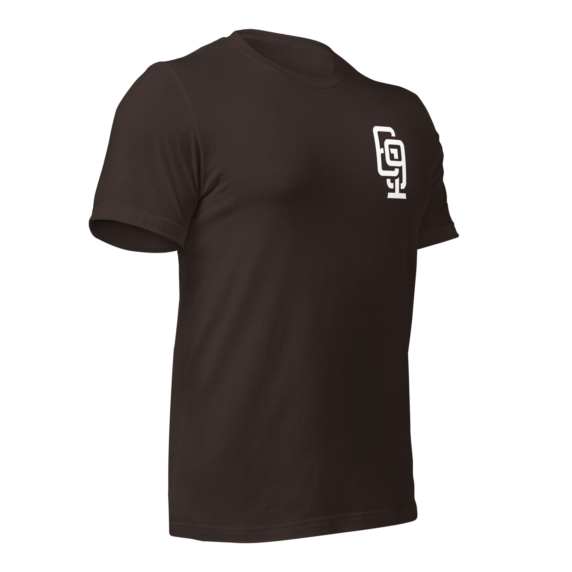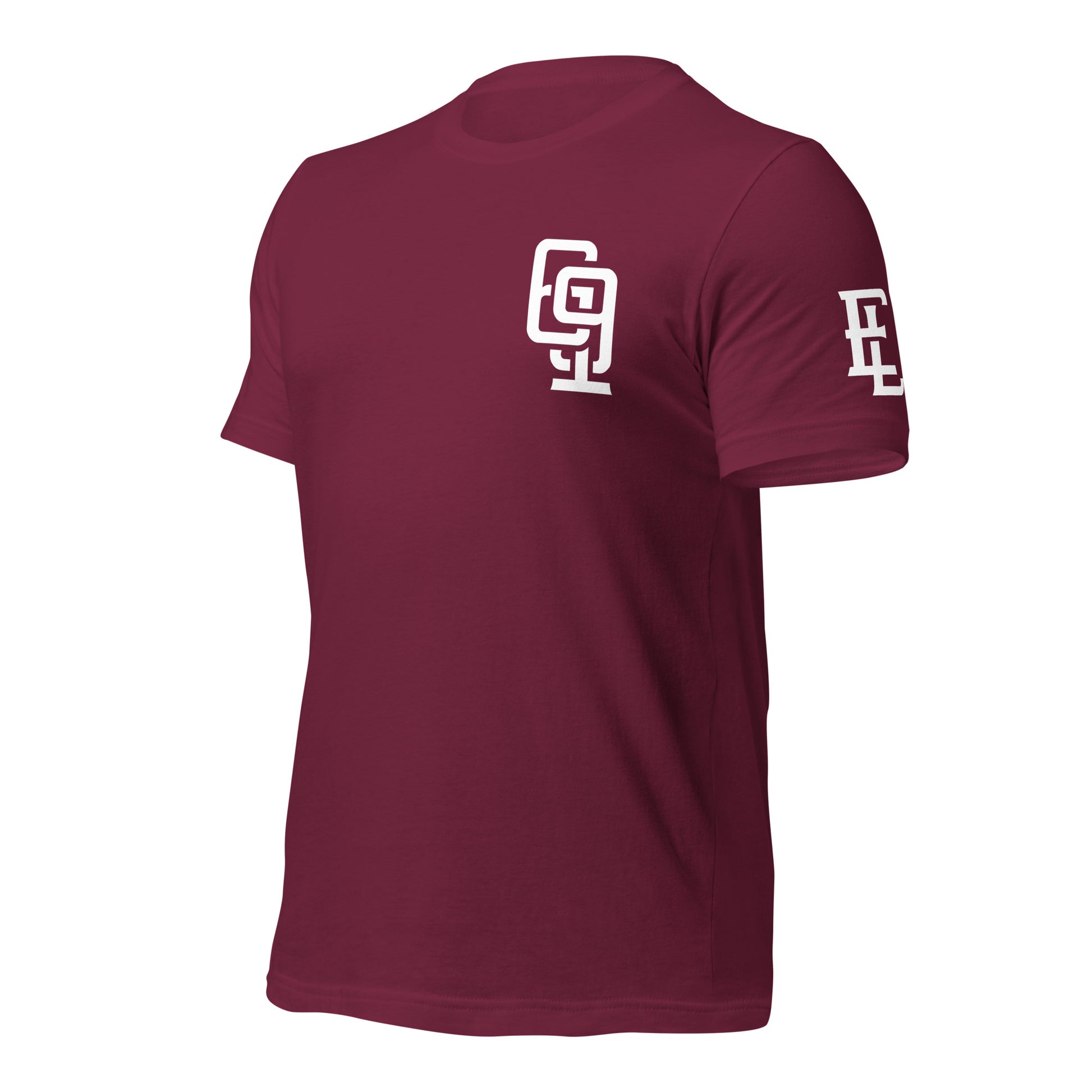 "619" Unisex Staple T-Shirt | Bella + Canvas 3001 | E Luna Brand ELEMENT Tricrest 3 White Logos: Front Upper Left, Left Arm & Back (Large)