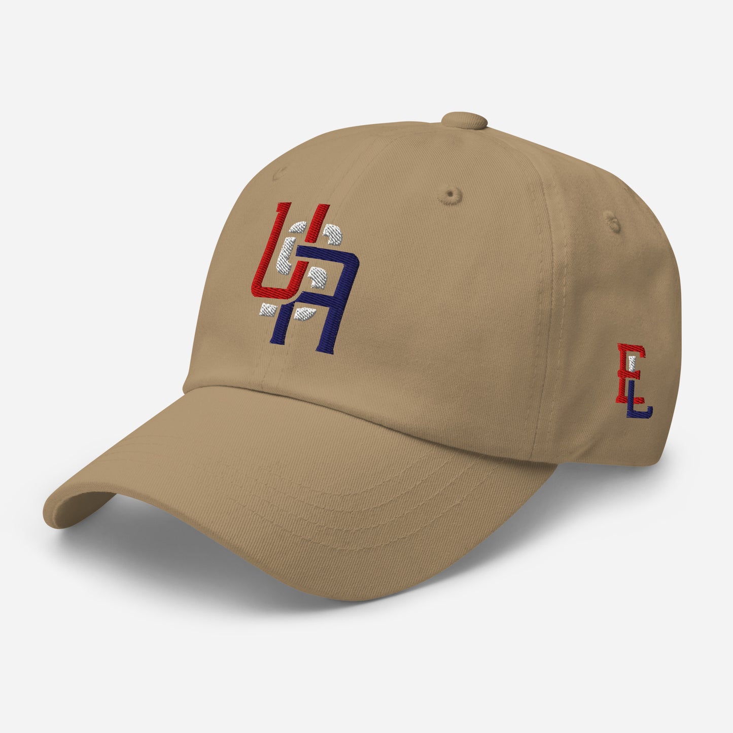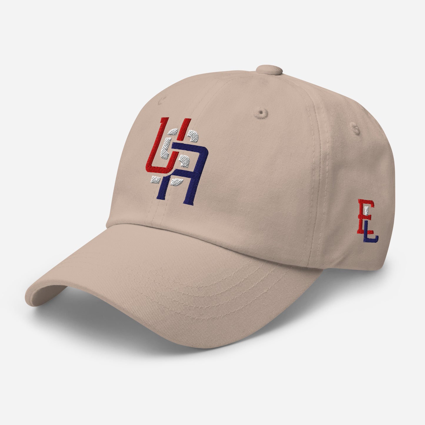 "USA" Classic Dad Hat | E Luna Brand ESSENTIAL | 2 Red, White, Blue Thread Logos